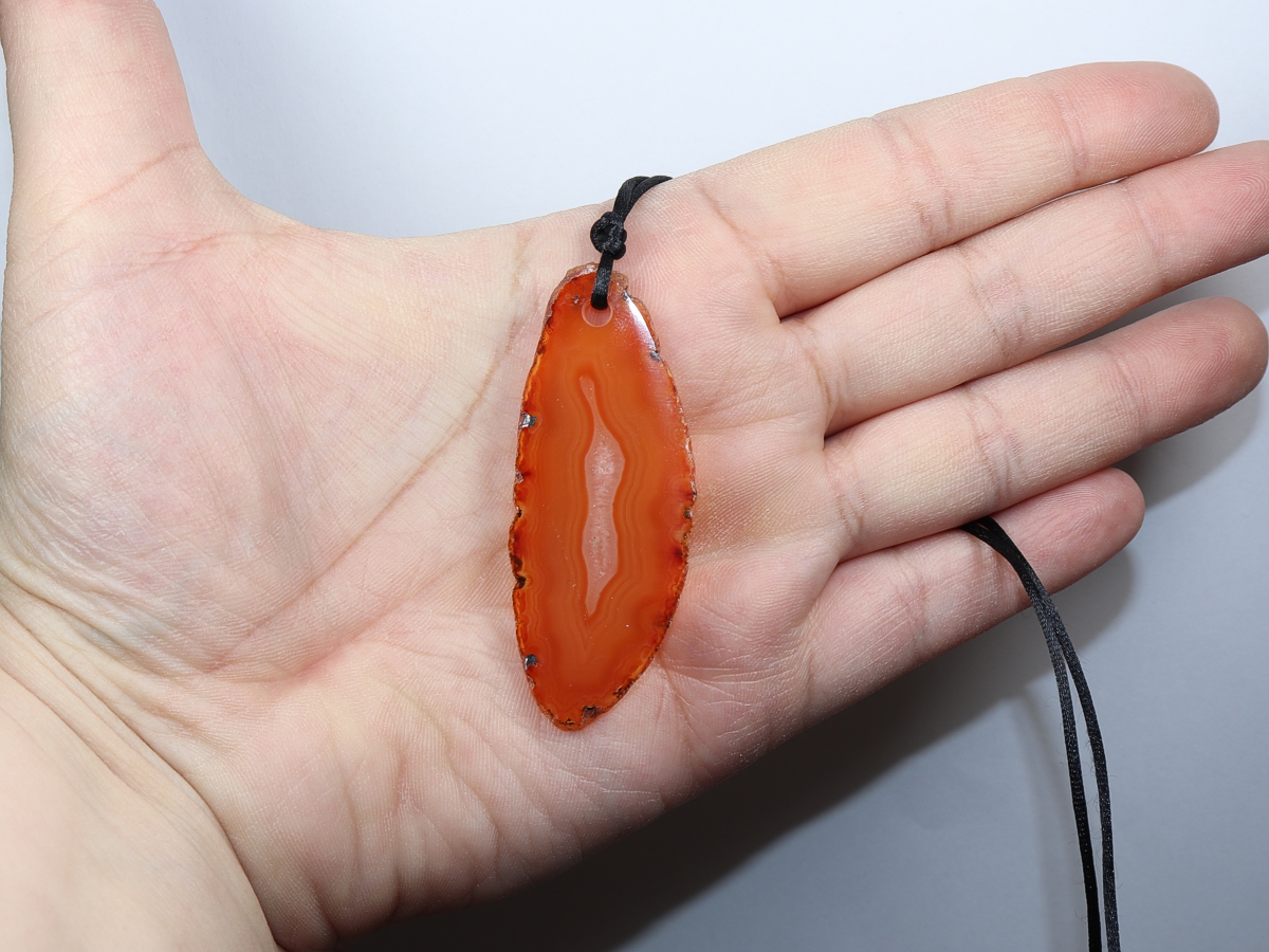 Die Halskette mit Achat wird nach Ihren Angaben individualisiert. Das Band ist aus Nylon und hat einen Verschluss aus Edelstahl.