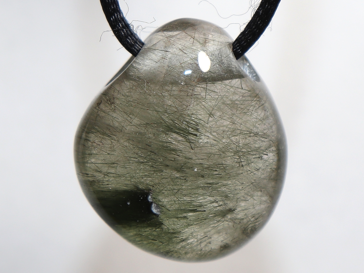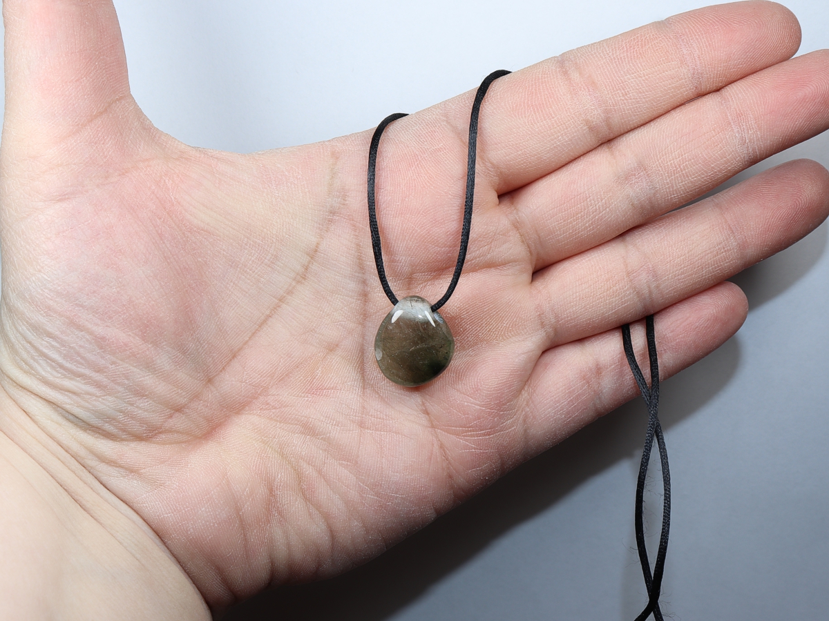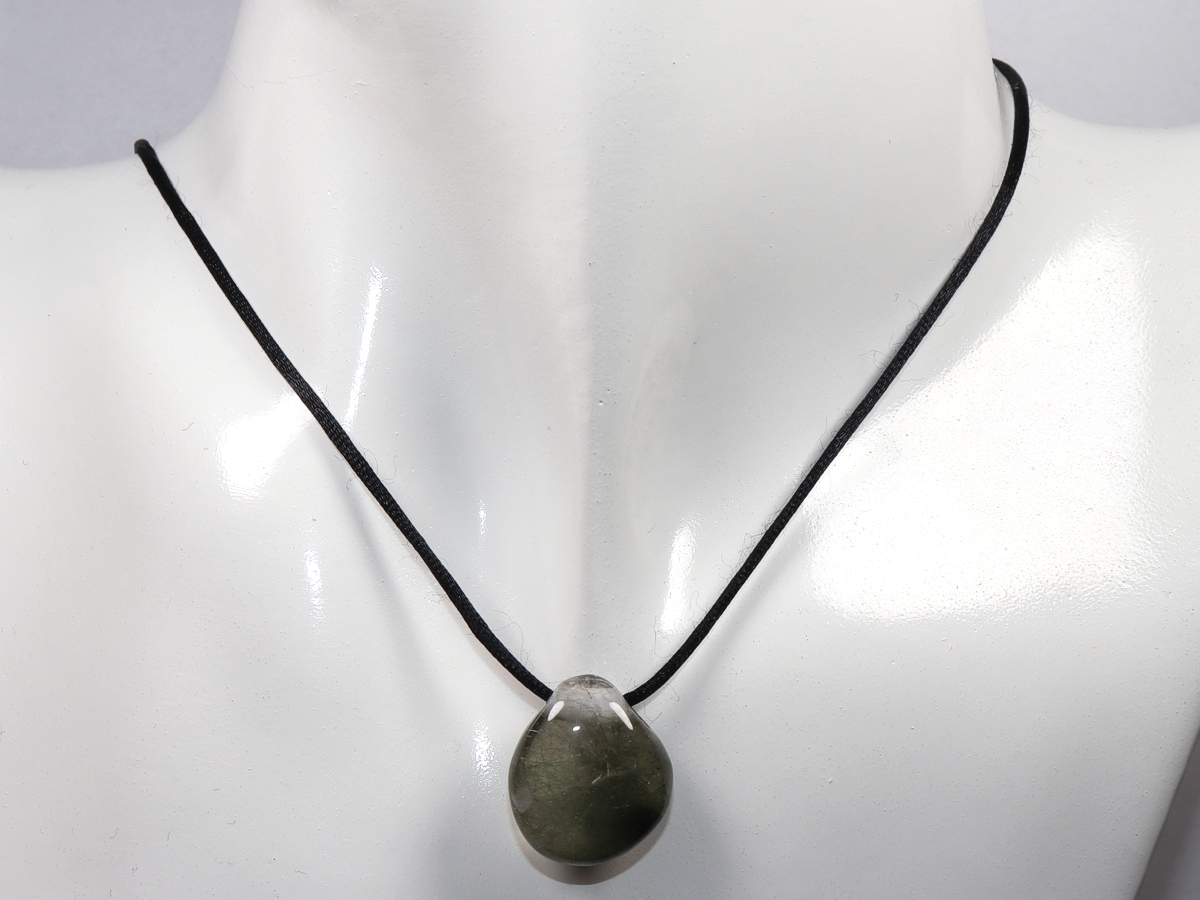 Die Halskette mit Aktinolithquarz wird nach Ihren Angaben individualisiert. Sie haben die Wahl zwischen einem schwarzen Band mit einem Verschluss aus Edelstahl oder einer Kette aus Silber 925.