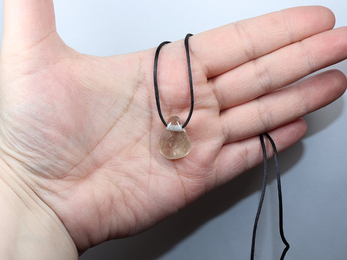 Die Halskette mit Aktinolithquarz wird nach Ihren Angaben individualisiert. Sie haben die Wahl zwischen einem schwarzen Band mit einem Verschluss aus Edelstahl oder einer Kette aus Silber 925.