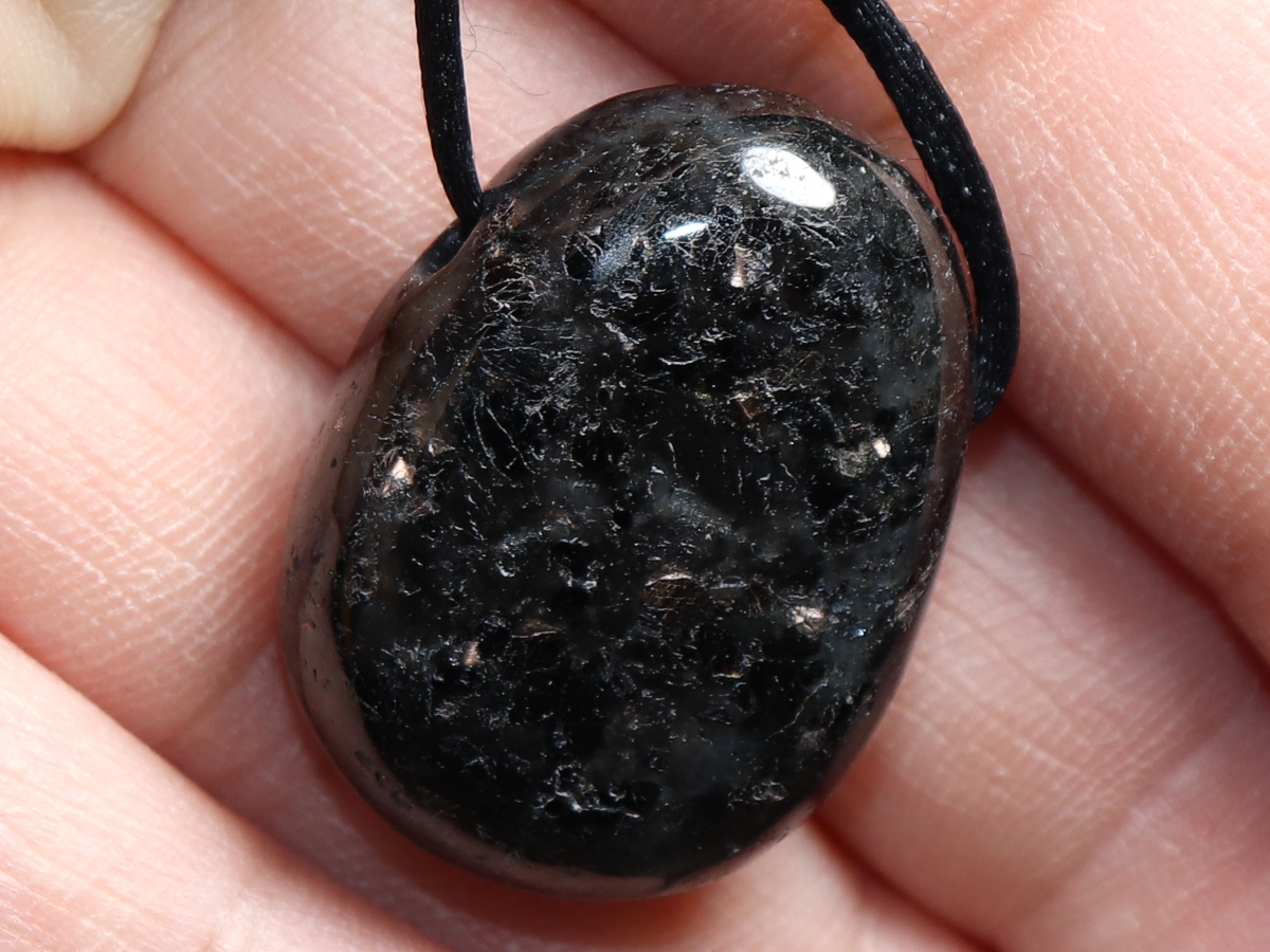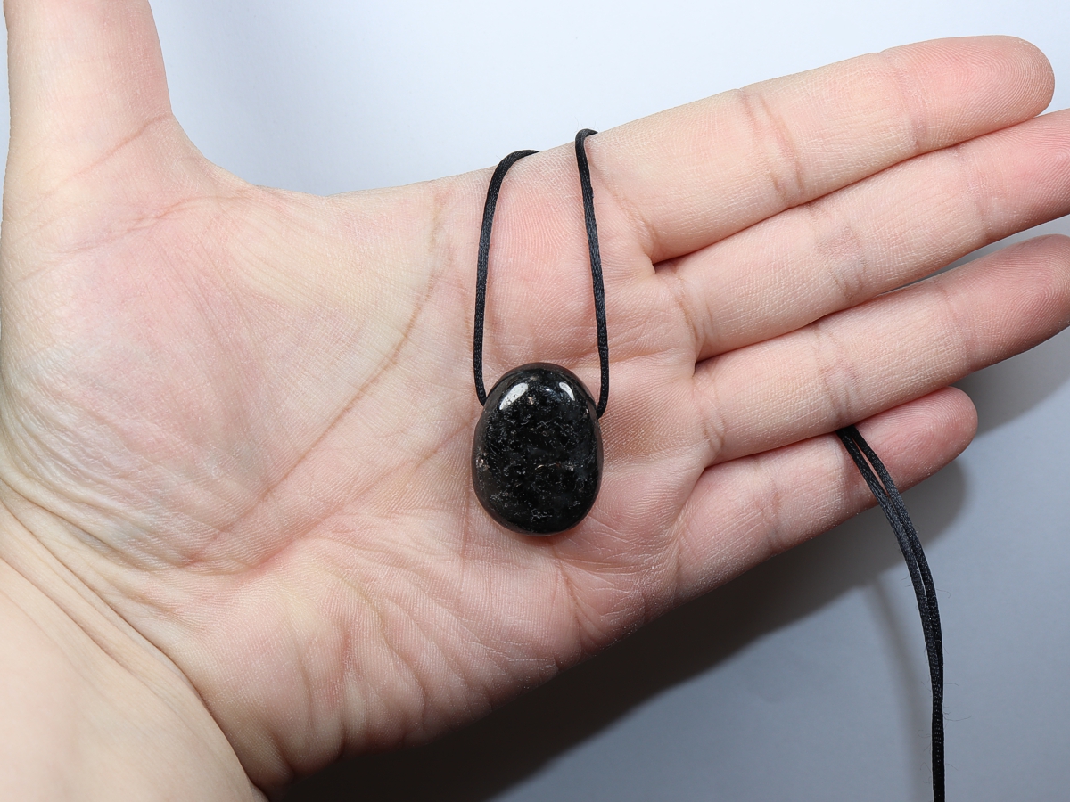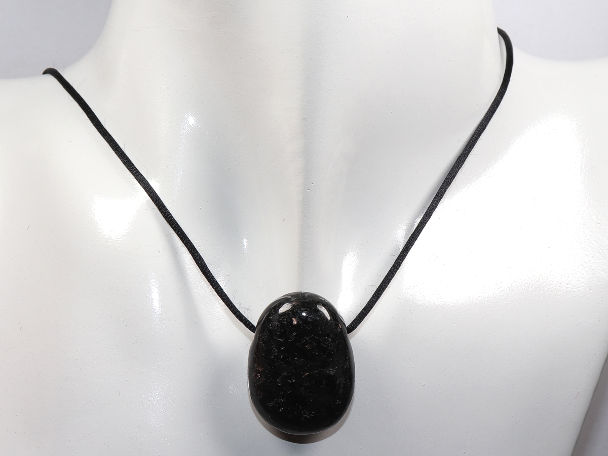 Die Halskette mit Amphibolit wird nach Ihren Angaben individualisiert. Sie haben die Wahl zwischen einem schwarzen Band mit einem Verschluss aus Edelstahl oder einer Kette aus Silber 925.
