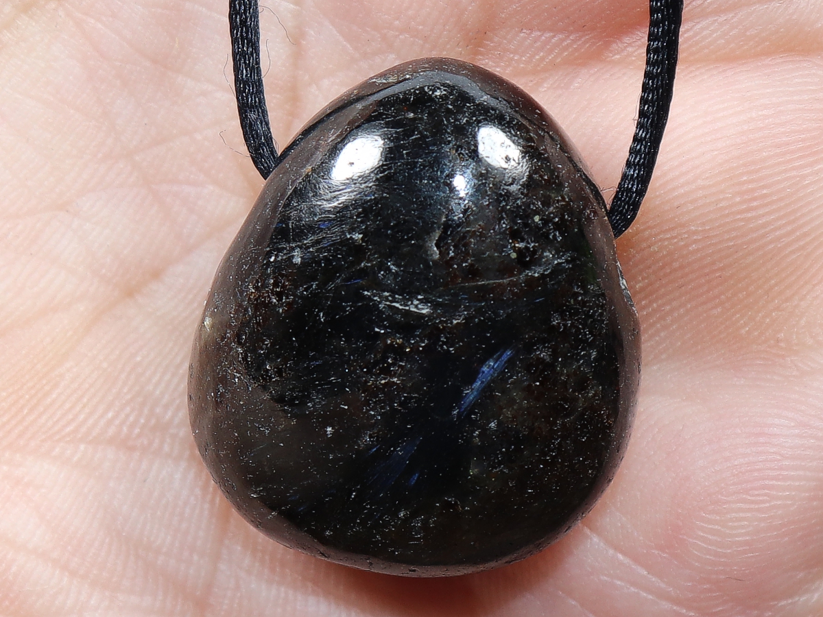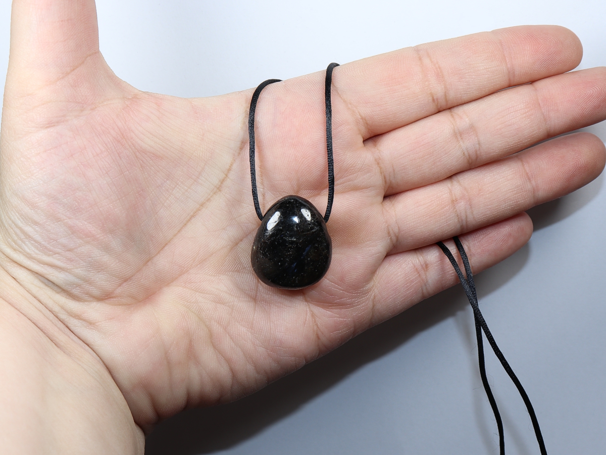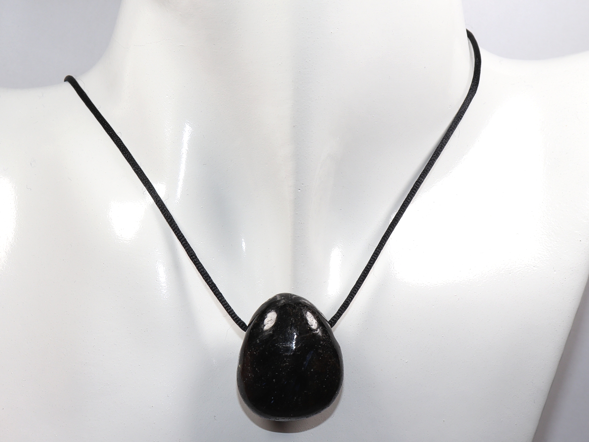 Die Halskette mit Anthophyllit wird nach Ihren Angaben individualisiert. Sie haben die Wahl zwischen einem schwarzen Band mit einem Verschluss aus Edelstahl oder einer Kette aus Silber 925.