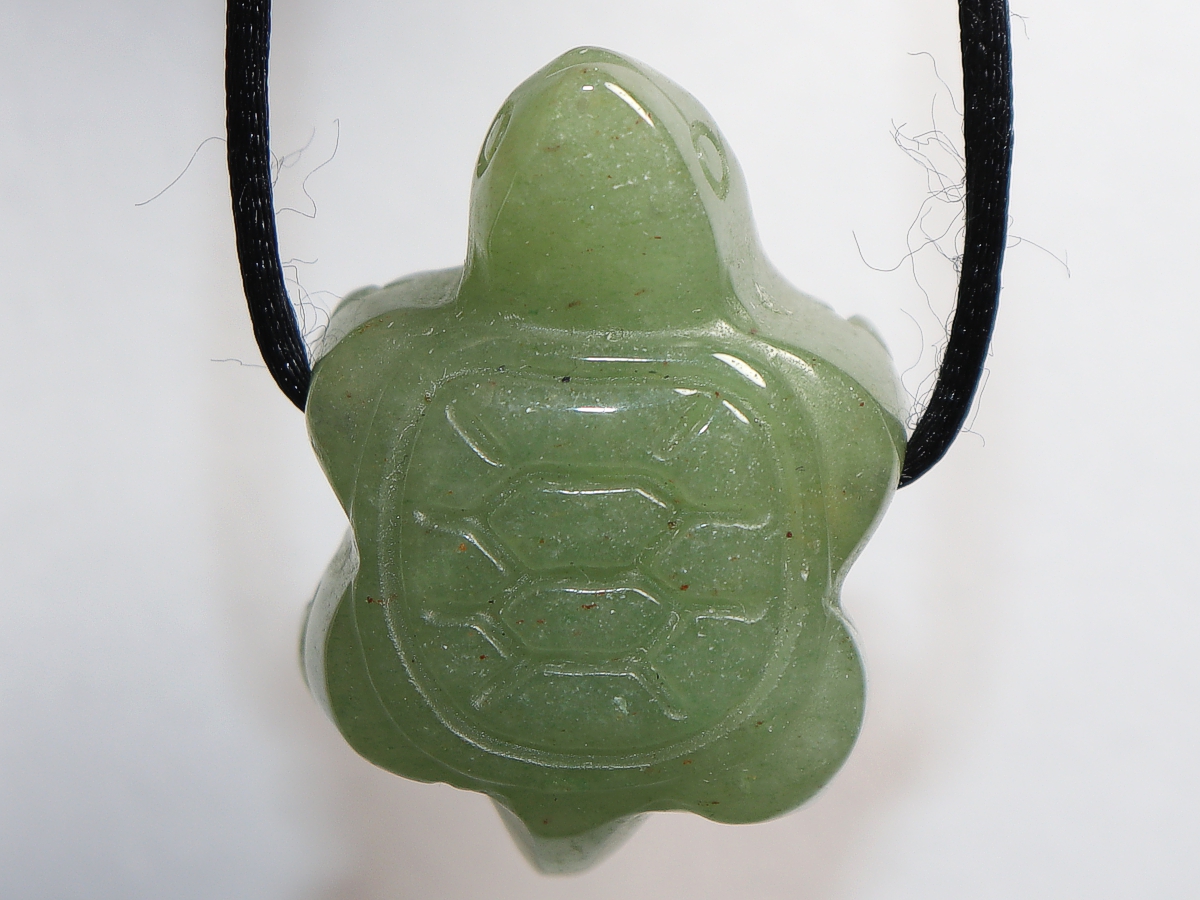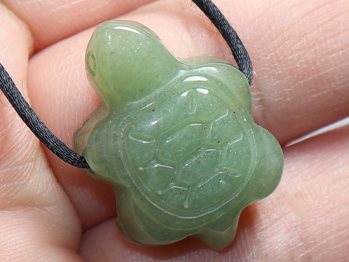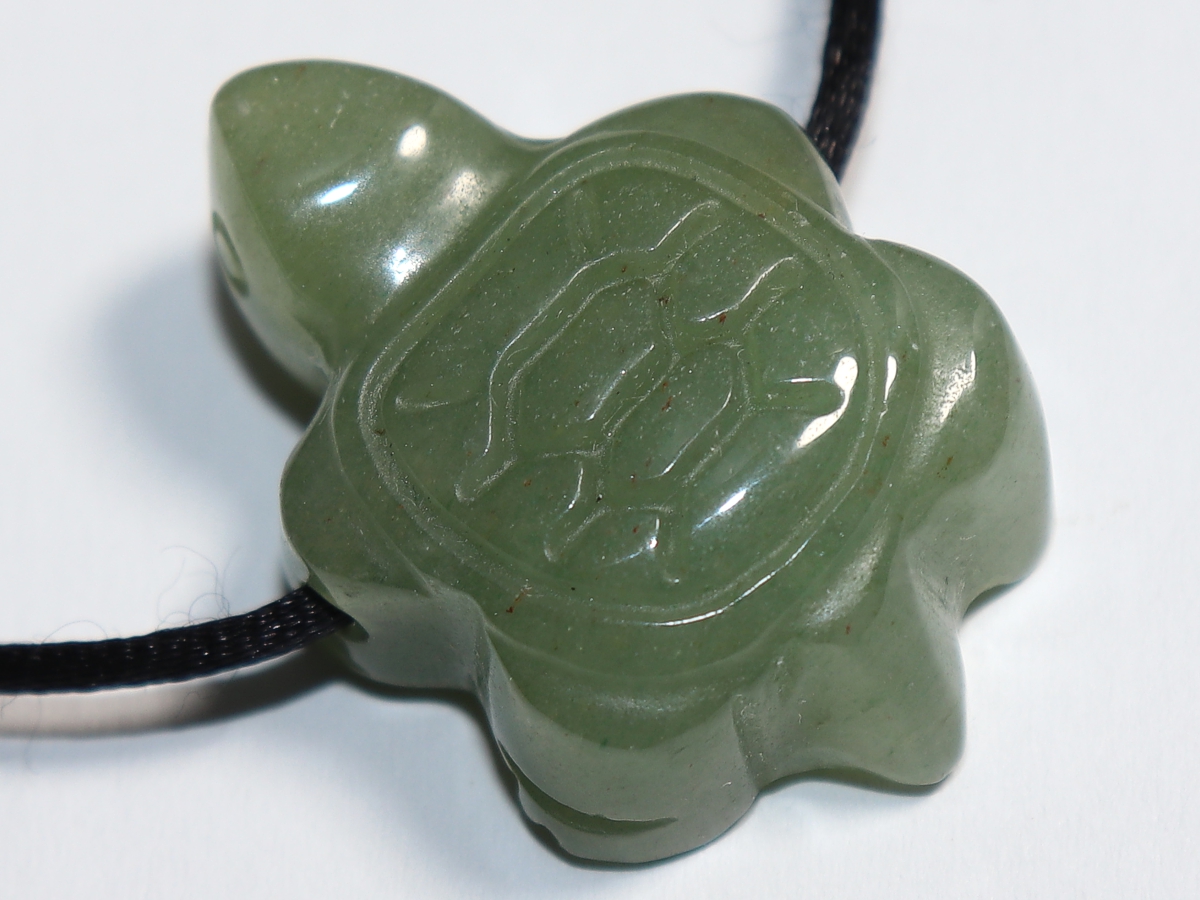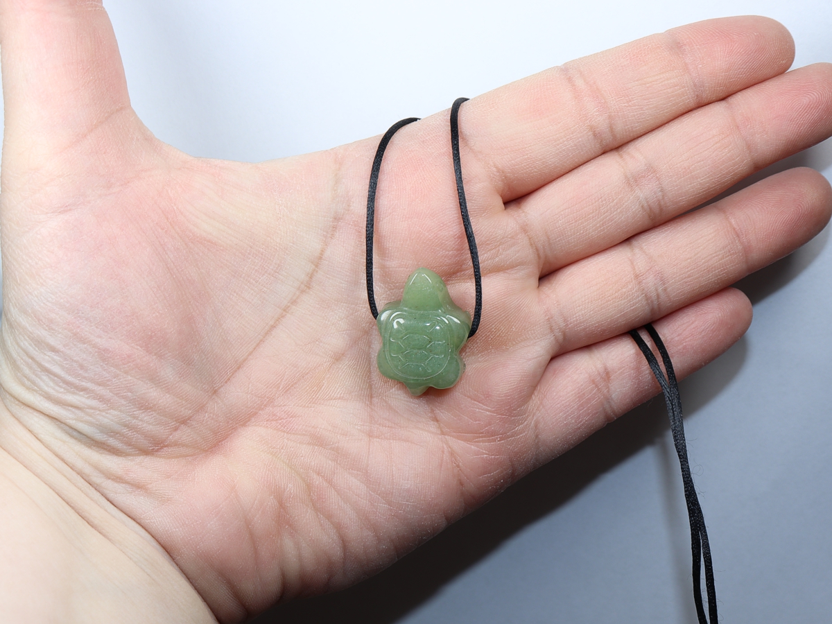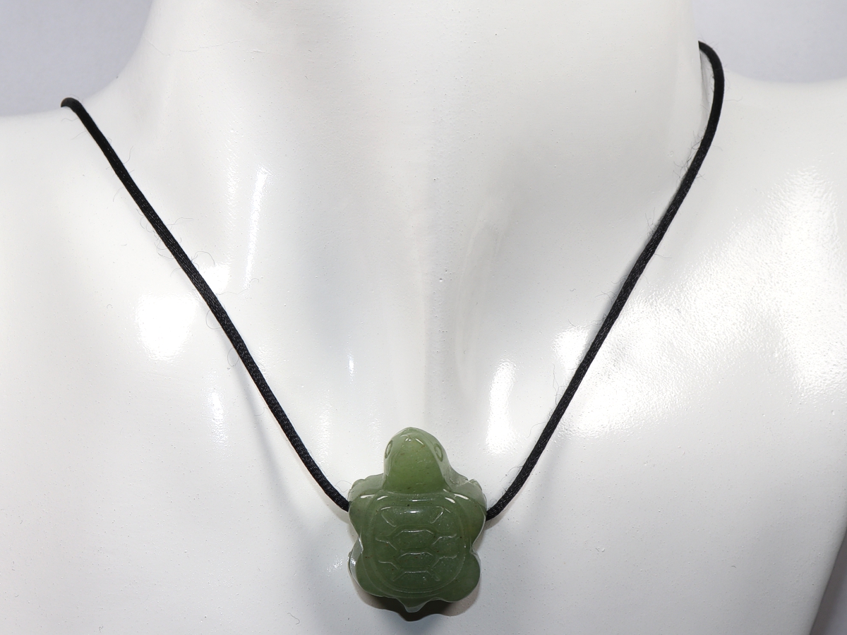Die Halskette mit der Schildkröte aus Aventurin wird nach Ihren Angaben individualisiert. Sie haben die Wahl zwischen einem schwarzen Band mit einem Verschluss aus Edelstahl oder einer Kette aus Silber 925.