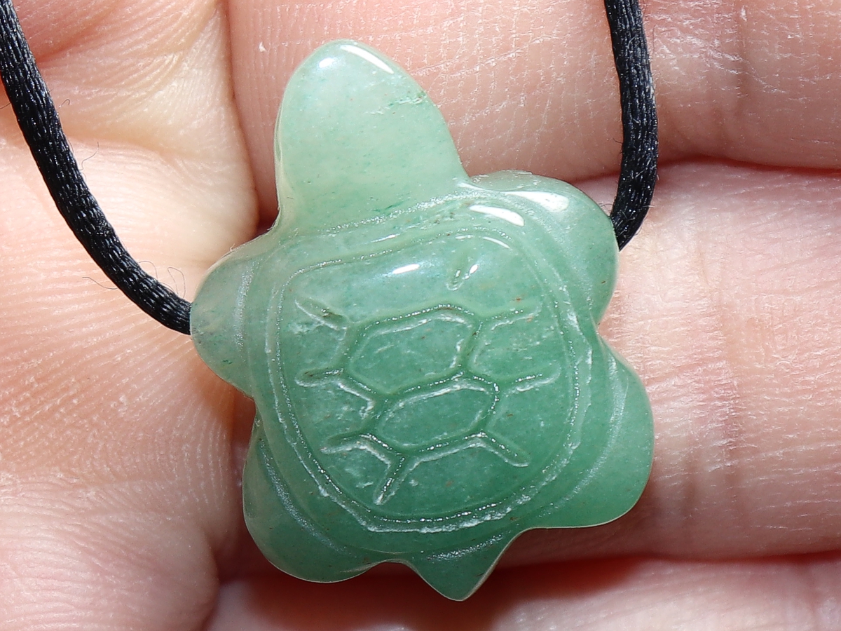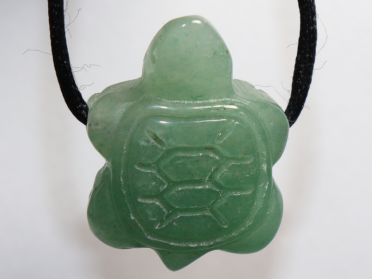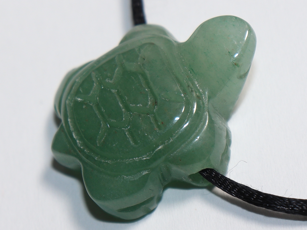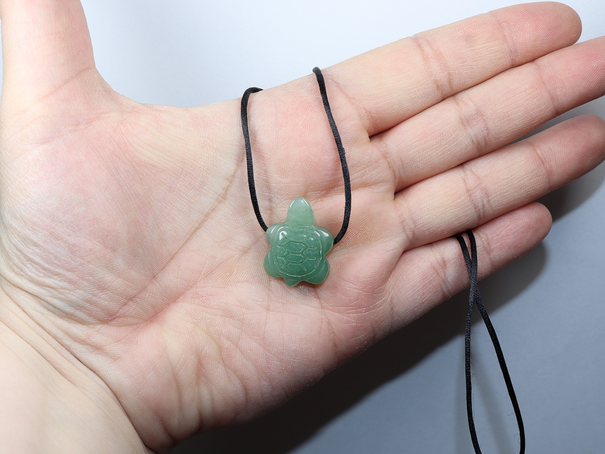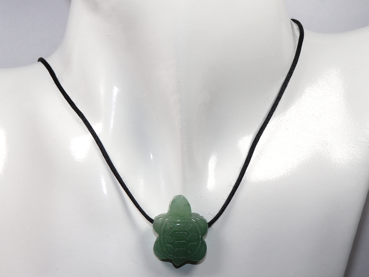 Die Halskette mit der Schildkröte aus Aventurin wird nach Ihren Angaben individualisiert. Sie haben die Wahl zwischen einem schwarzen Band mit einem Verschluss aus Edelstahl oder einer Kette aus Silber 925.