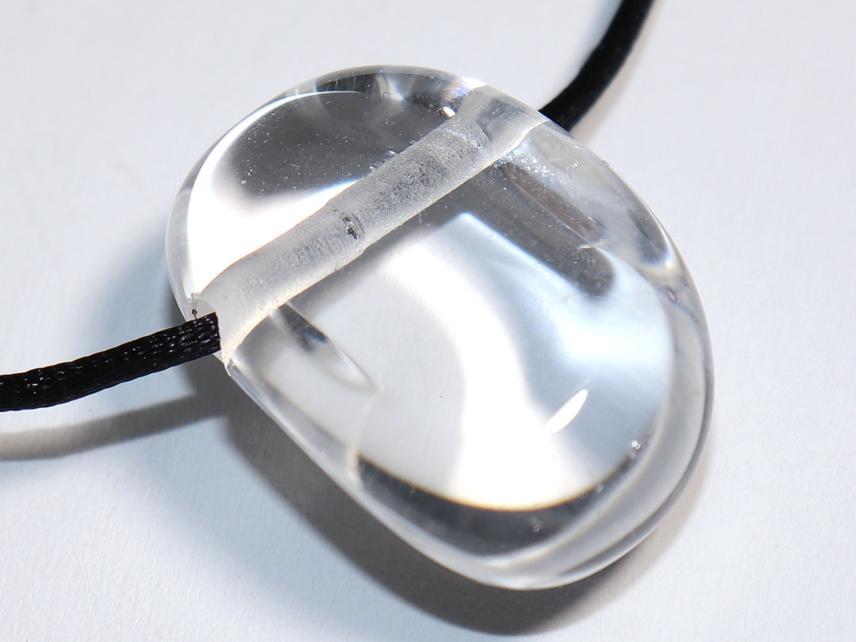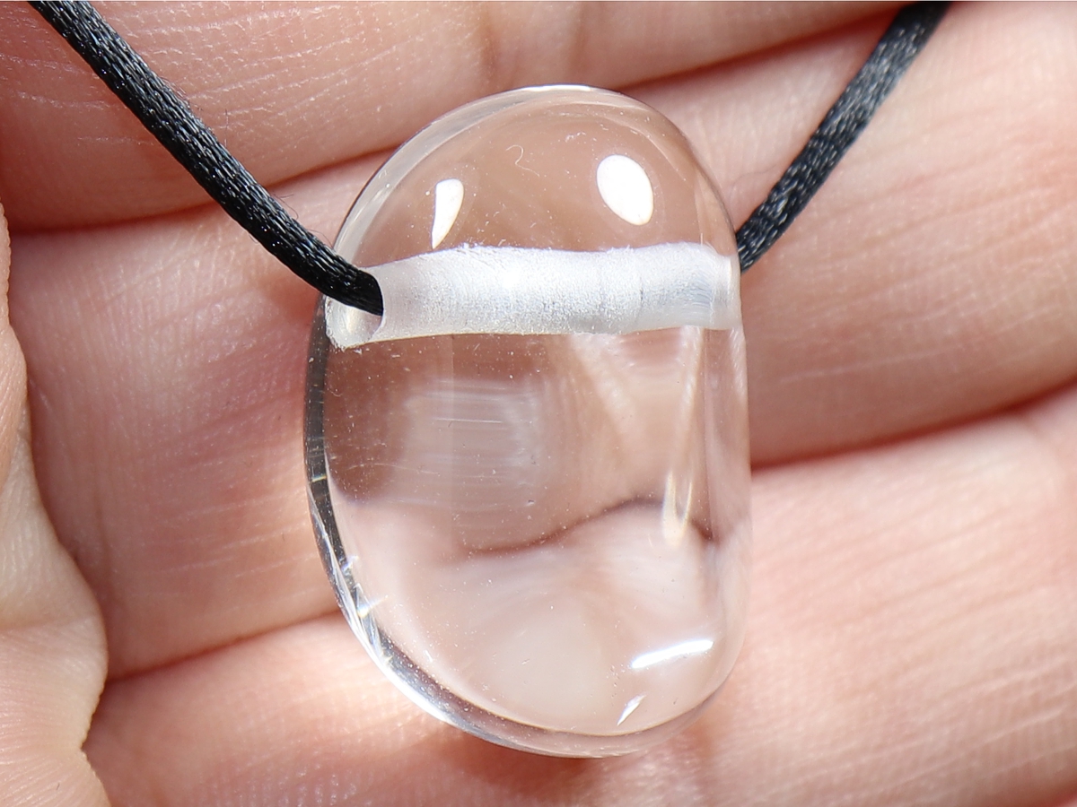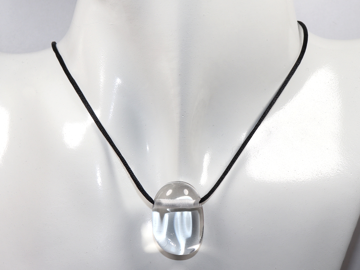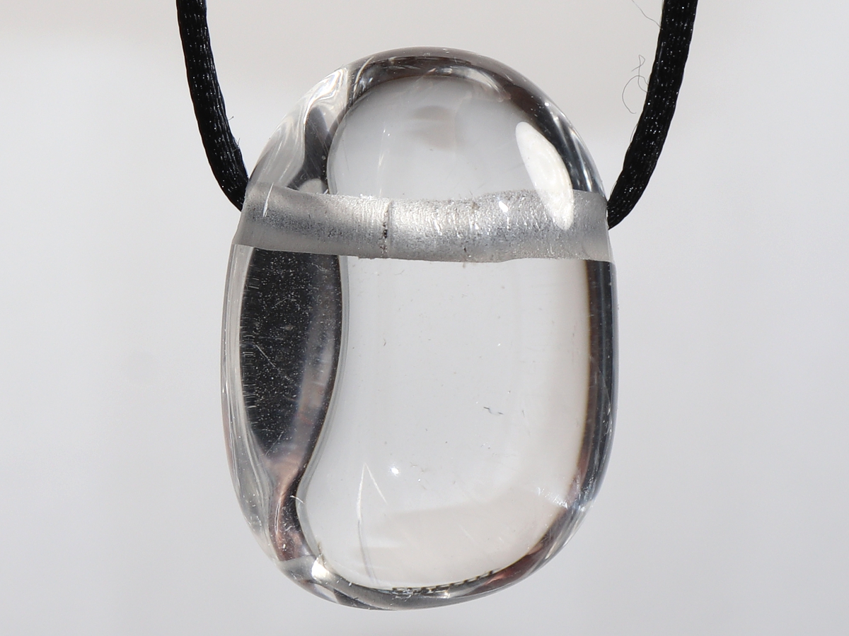 Die Halskette mit Bergkristall wird nach Ihren Angaben individualisiert. Sie haben die Wahl zwischen einem schwarzen Band mit einem Verschluss aus Edelstahl oder einer Kette aus Silber 925.