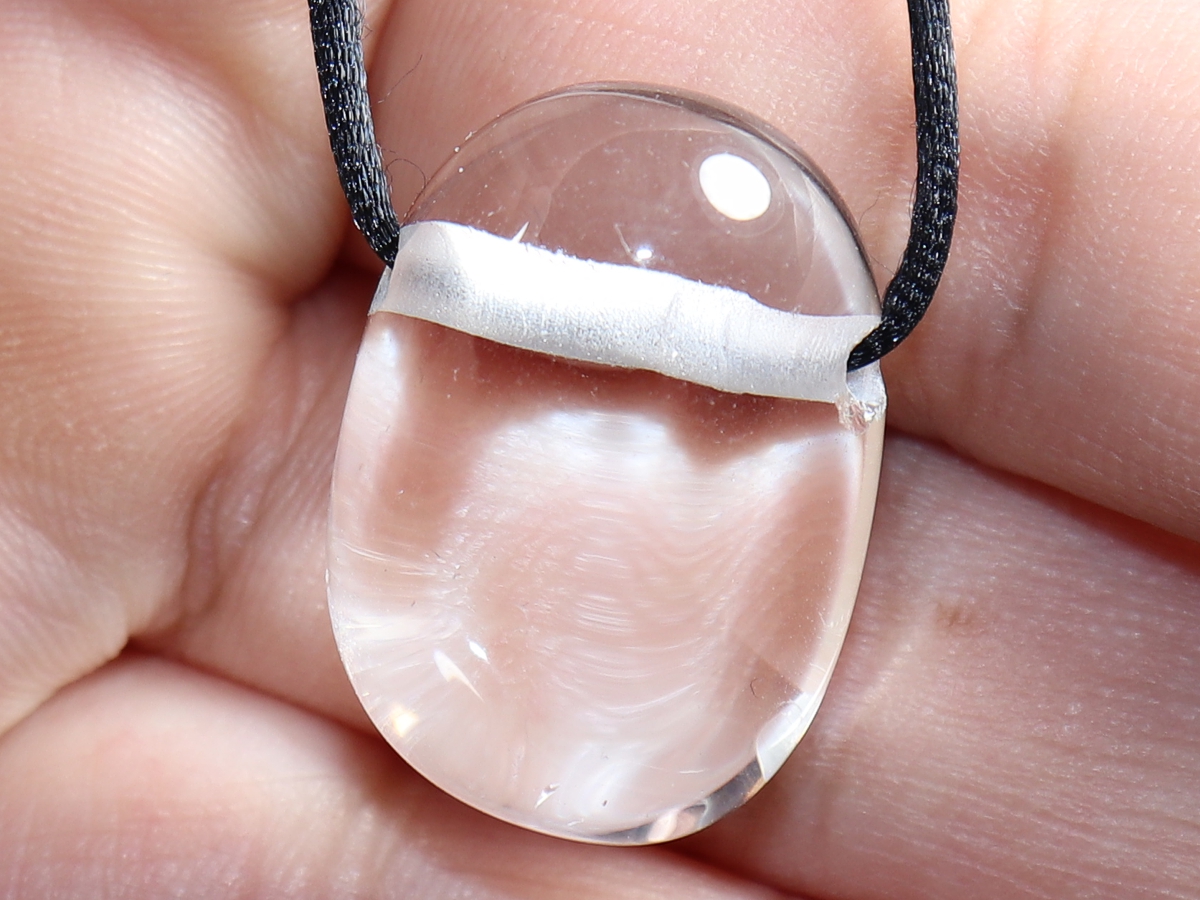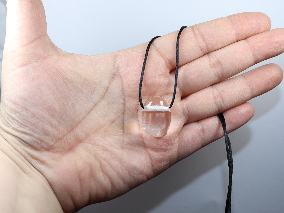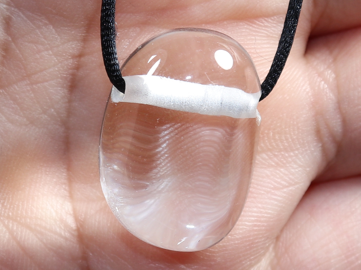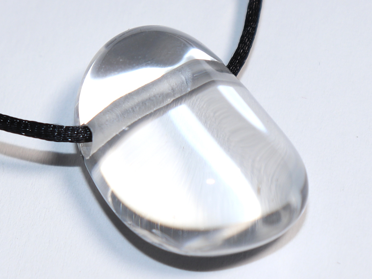 Die Halskette mit Bergkristall wird nach Ihren Angaben individualisiert. Sie haben die Wahl zwischen einem schwarzen Band mit einem Verschluss aus Edelstahl oder einer Kette aus Silber 925.
