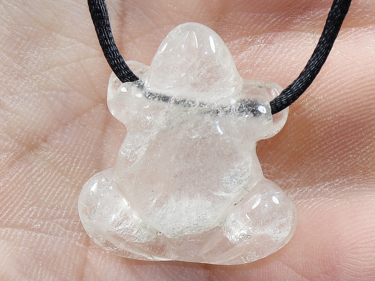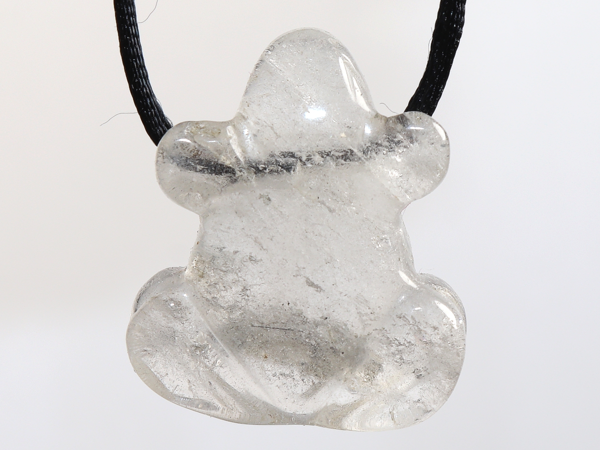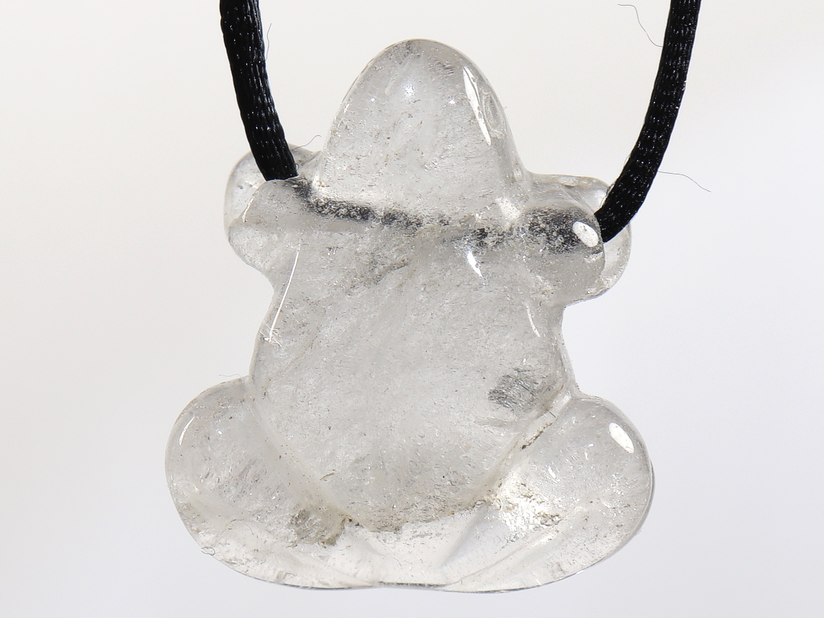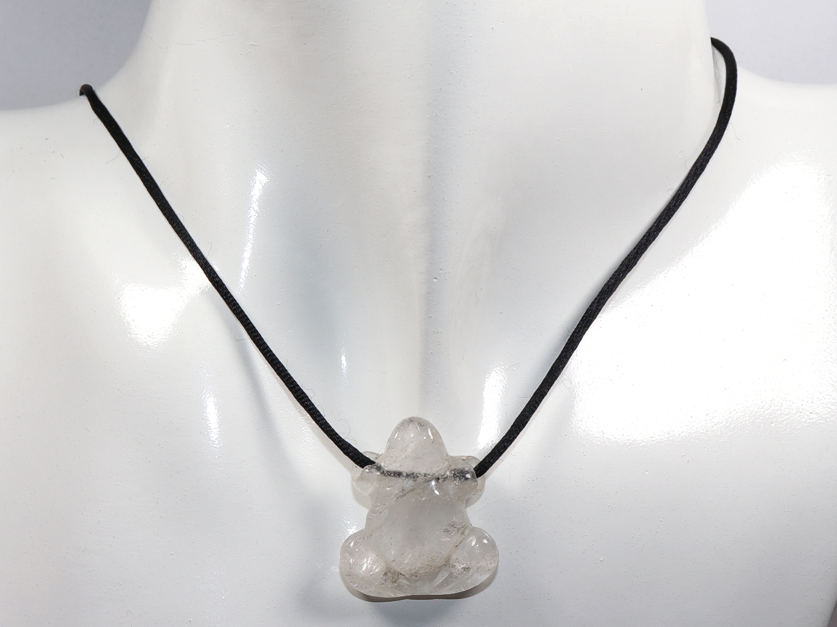 Die Halskette mit dem Frosch aus Bergkristall wird nach Ihren Angaben individualisiert. Sie haben die Wahl zwischen einem schwarzen Band mit einem Verschluss aus Edelstahl oder einer Kette aus Silber 925.