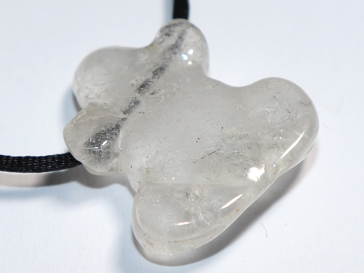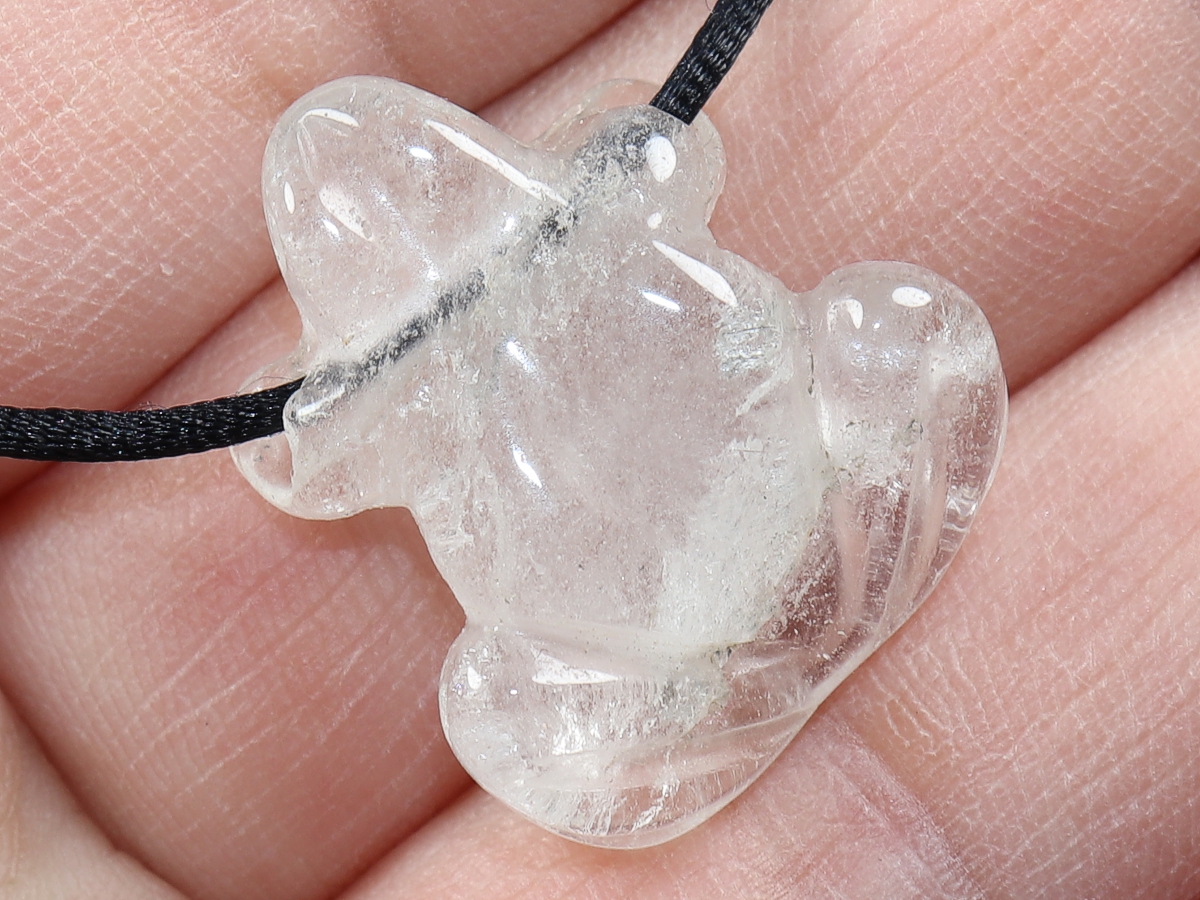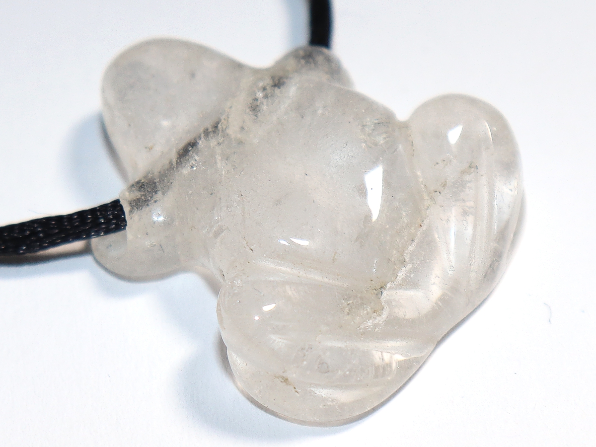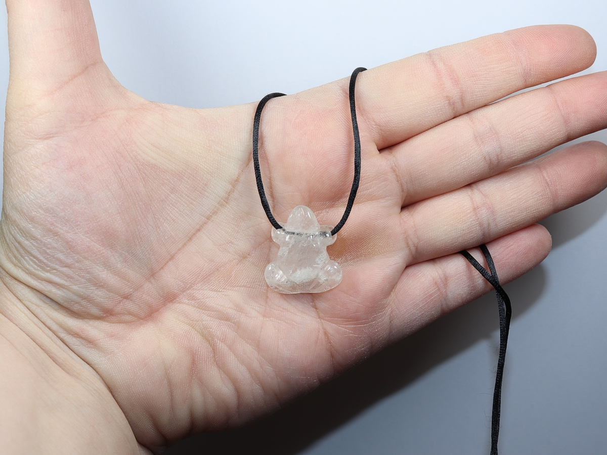 Die Halskette mit dem Frosch aus Bergkristall wird nach Ihren Angaben individualisiert. Sie haben die Wahl zwischen einem schwarzen Band mit einem Verschluss aus Edelstahl oder einer Kette aus Silber 925.