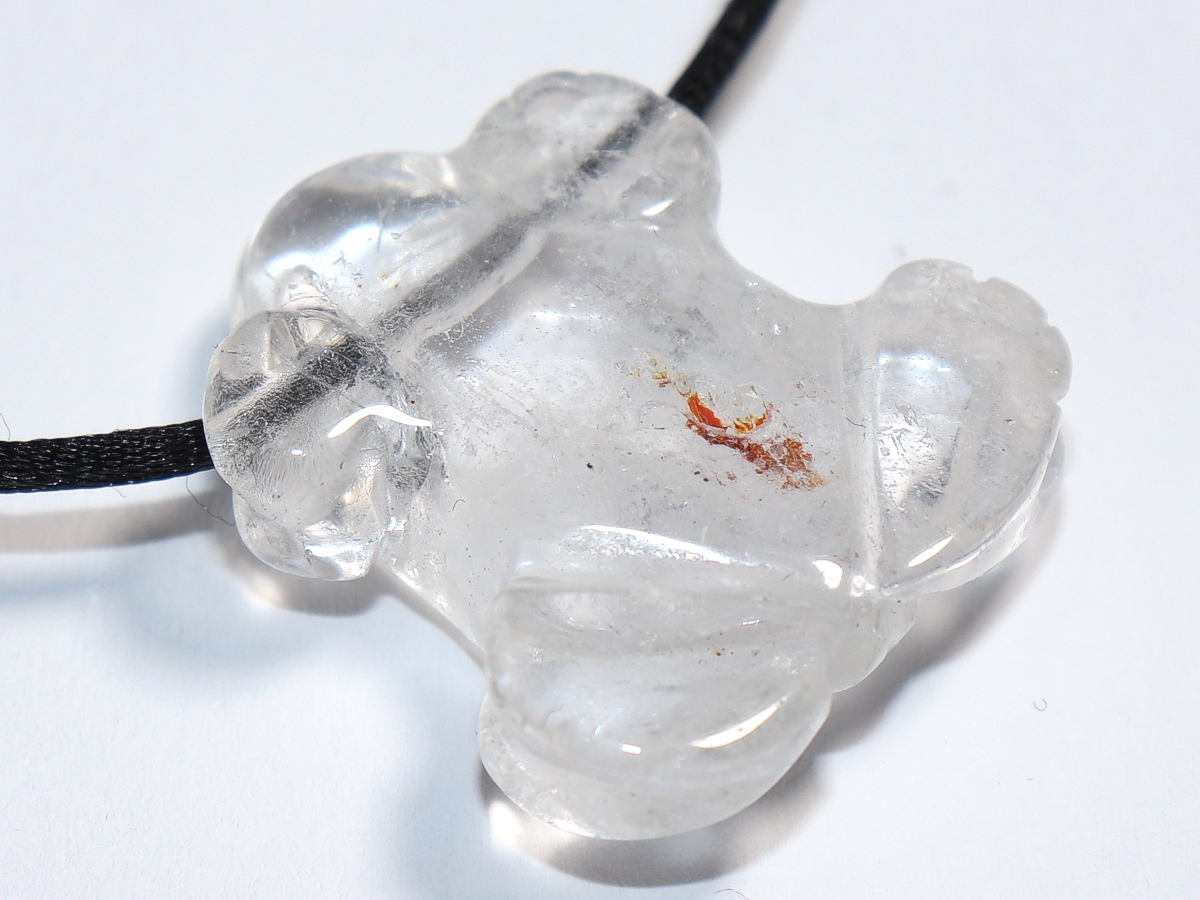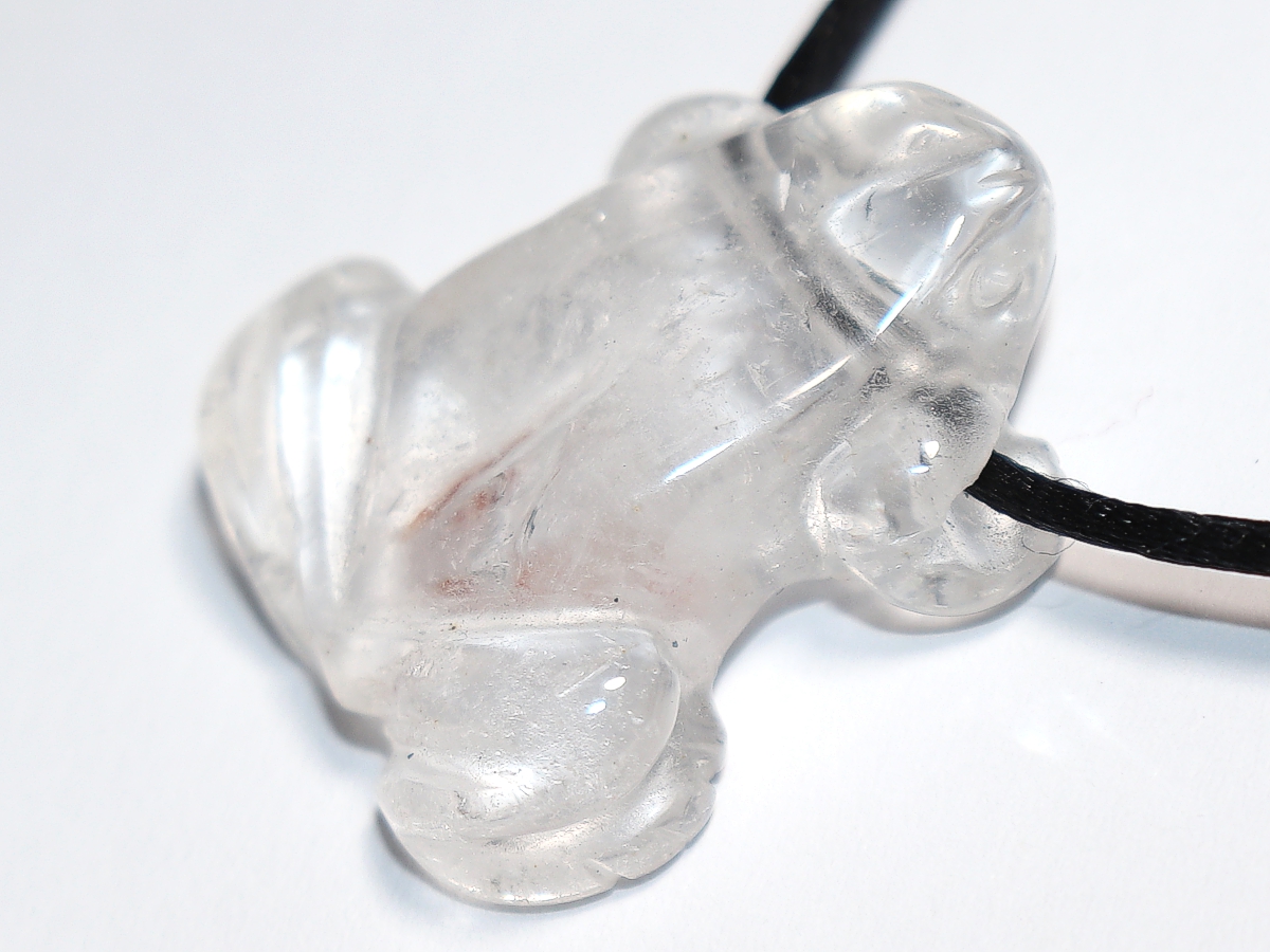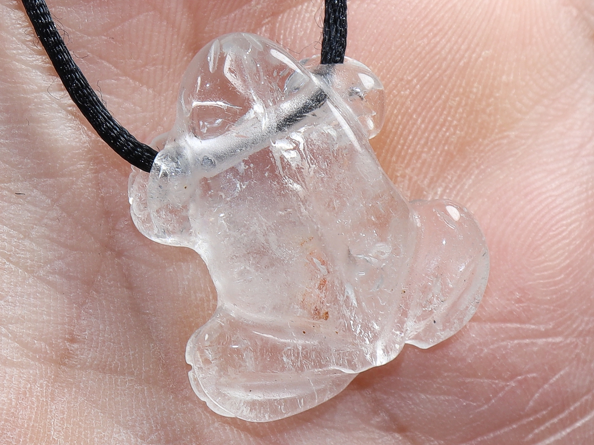 Die Halskette mit dem Frosch aus Bergkristall wird nach Ihren Angaben individualisiert. Sie haben die Wahl zwischen einem schwarzen Band mit einem Verschluss aus Edelstahl oder einer Kette aus Silber 925.