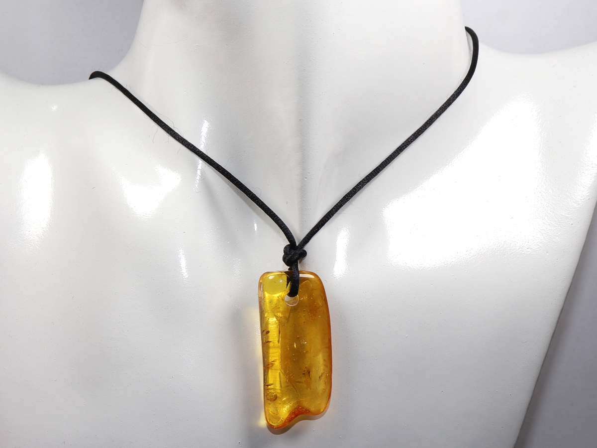 Die Halskette mit Bernstein und einem schwarzen Band wird nach Ihren Angaben individualisiert. Der Verschluss ist aus Edelstahl.