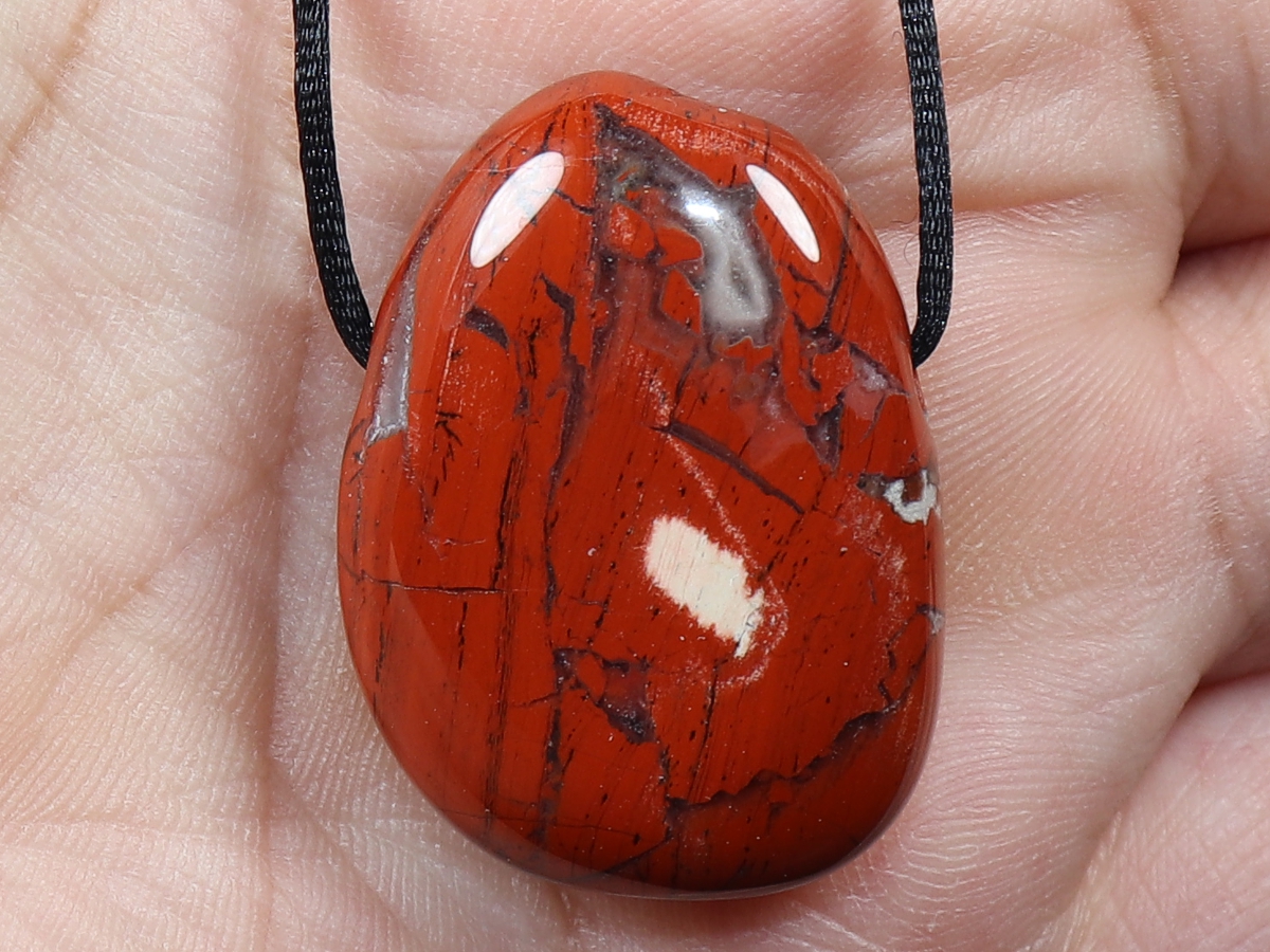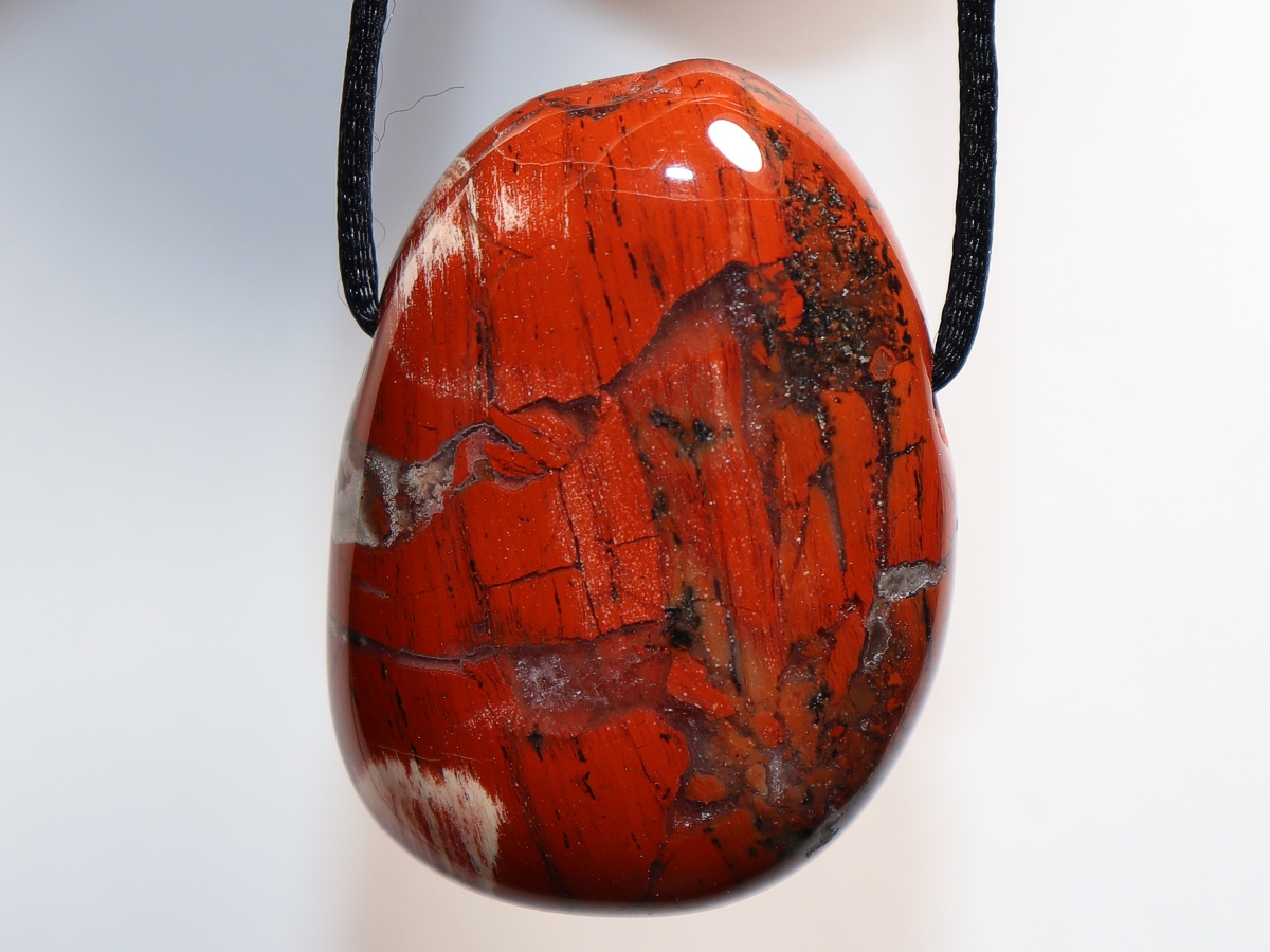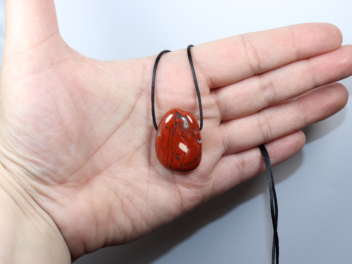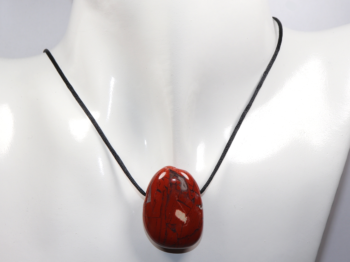 Die Halskette mit Breckzienjaspis wird nach Ihren Angaben individualisiert. Sie haben die Wahl zwischen einem schwarzen Band mit einem Verschluss aus Edelstahl oder einer Kette aus Silber 925.