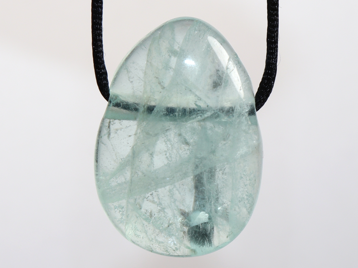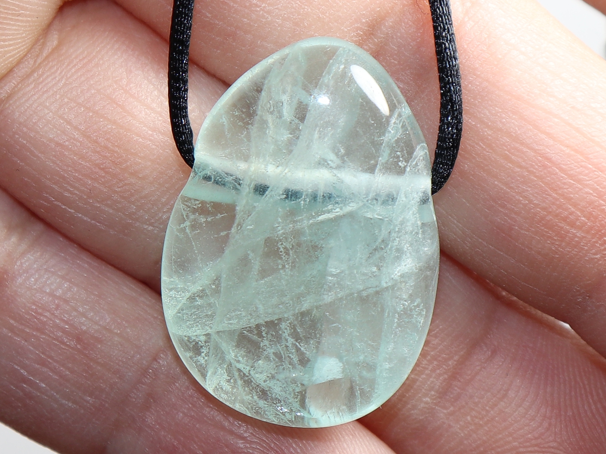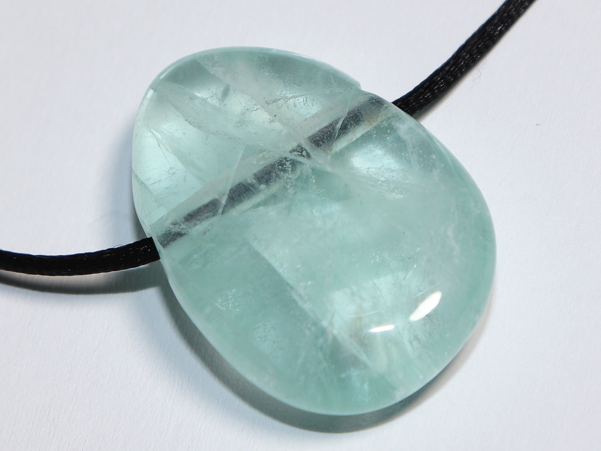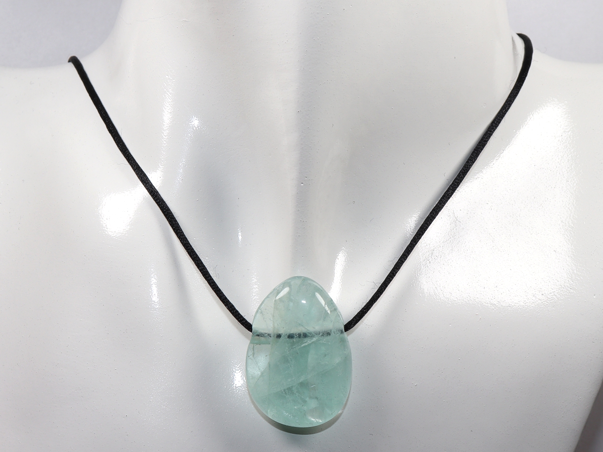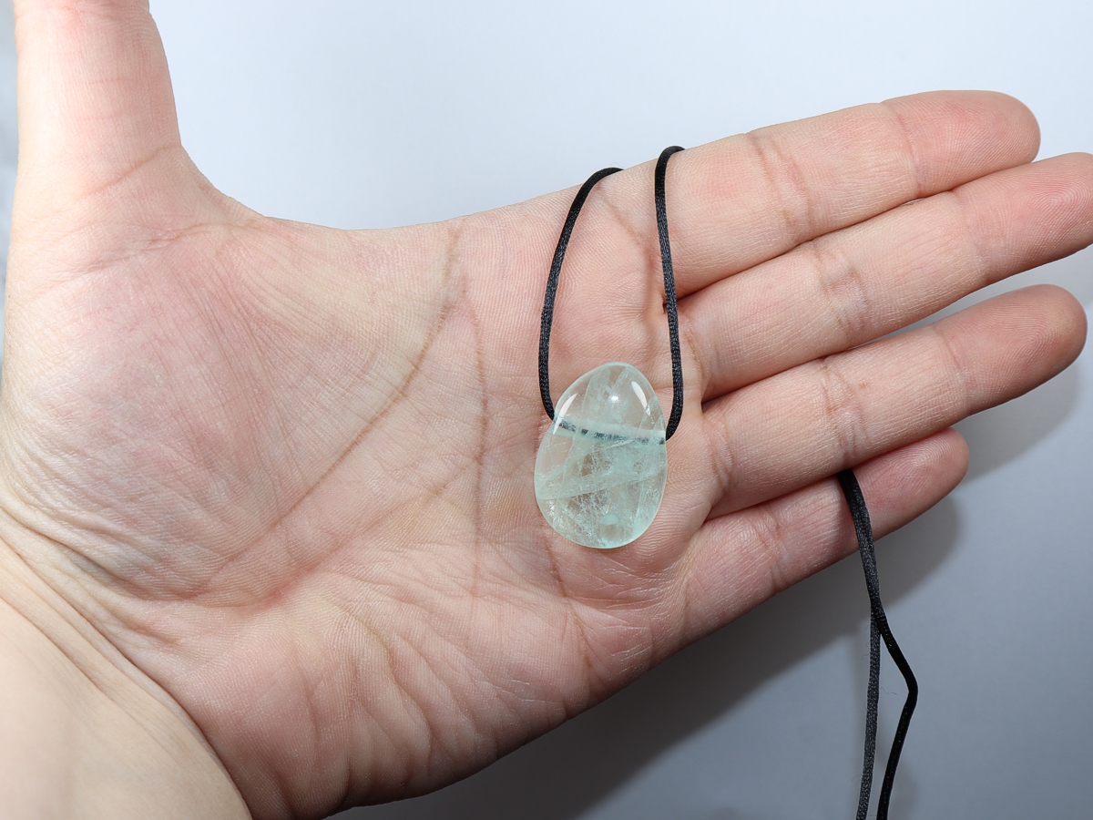 Die Halskette mit Fluorit wird nach Ihren Angaben individualisiert. Sie haben die Wahl zwischen einem schwarzen Band mit einem Verschluss aus Edelstahl oder einer Kette aus Silber 925.