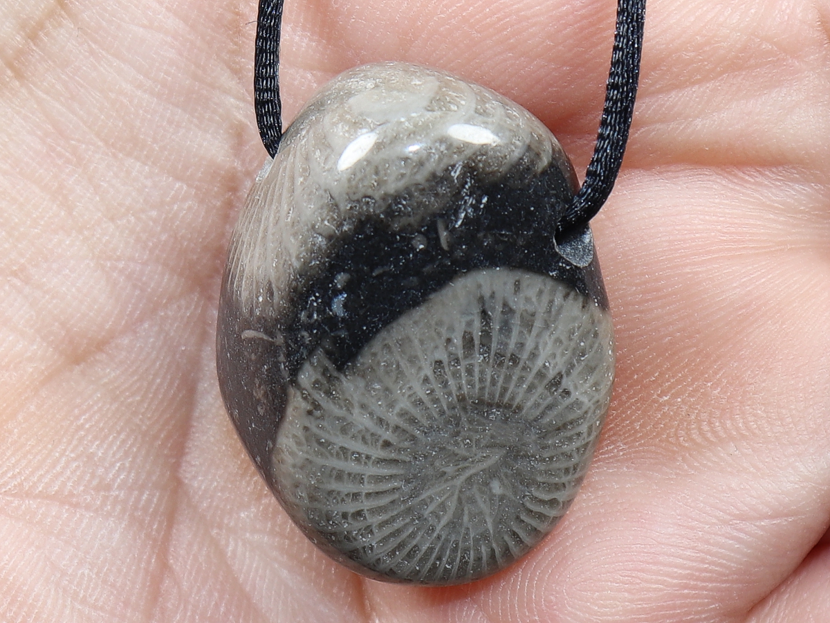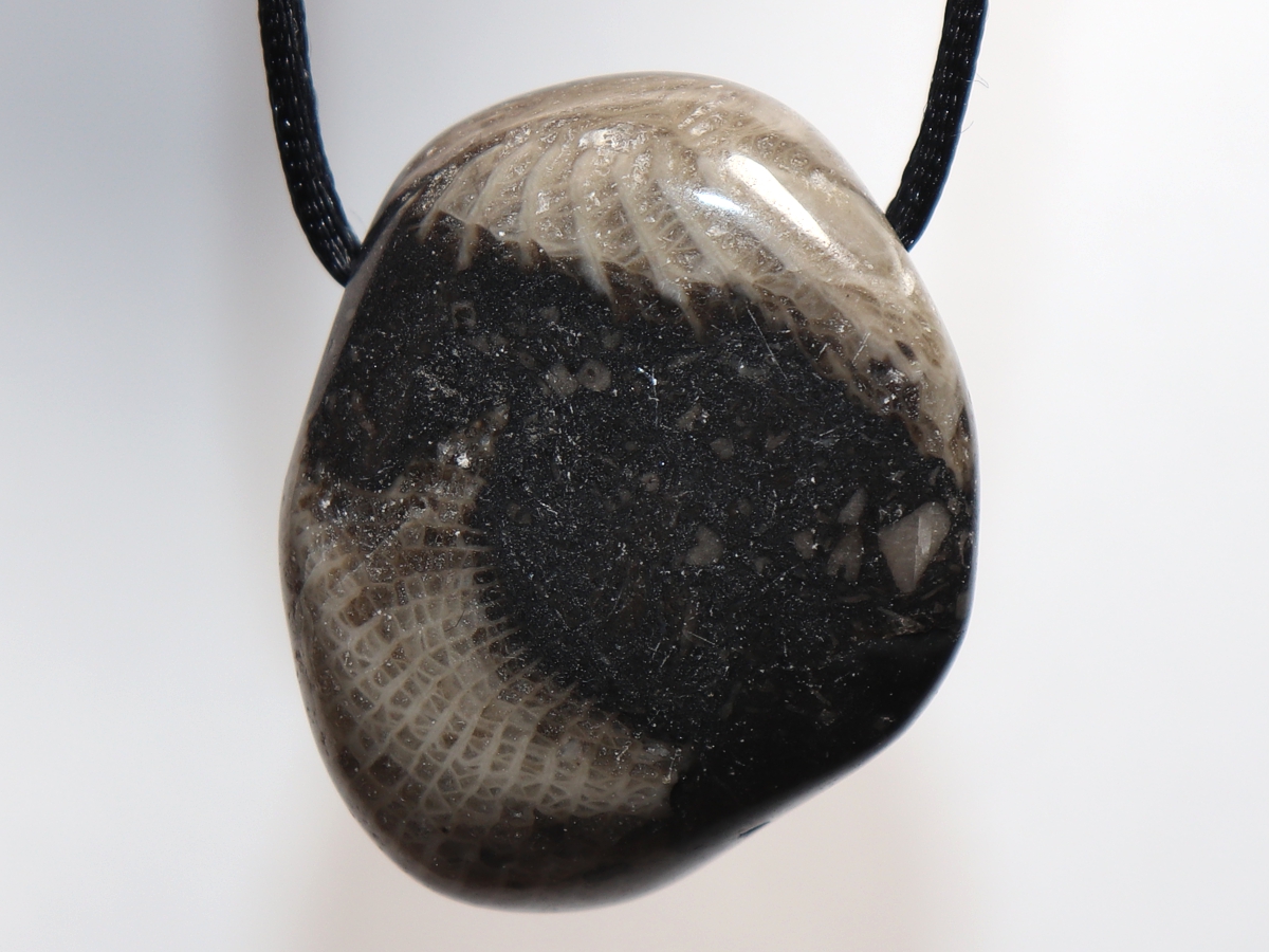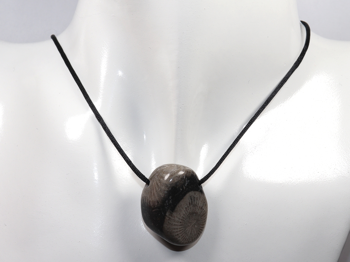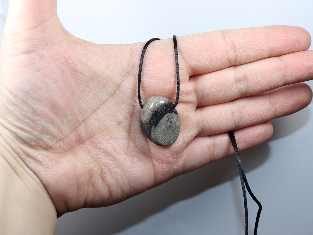 Die Halskette mit Frosterley-Marble wird nach Ihren Angaben individualisiert. Sie haben die Wahl zwischen einem schwarzen Band mit einem Verschluss aus Edelstahl oder einer Kette aus Silber 925.