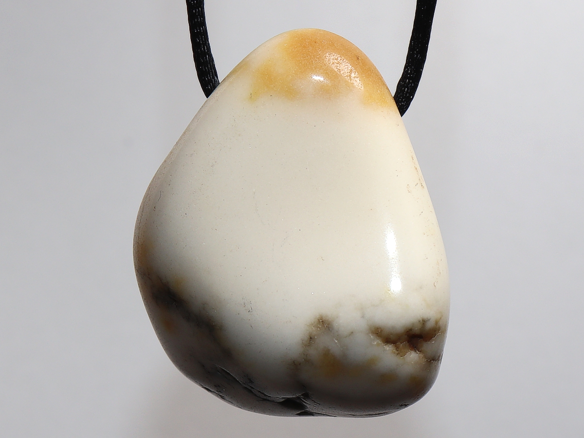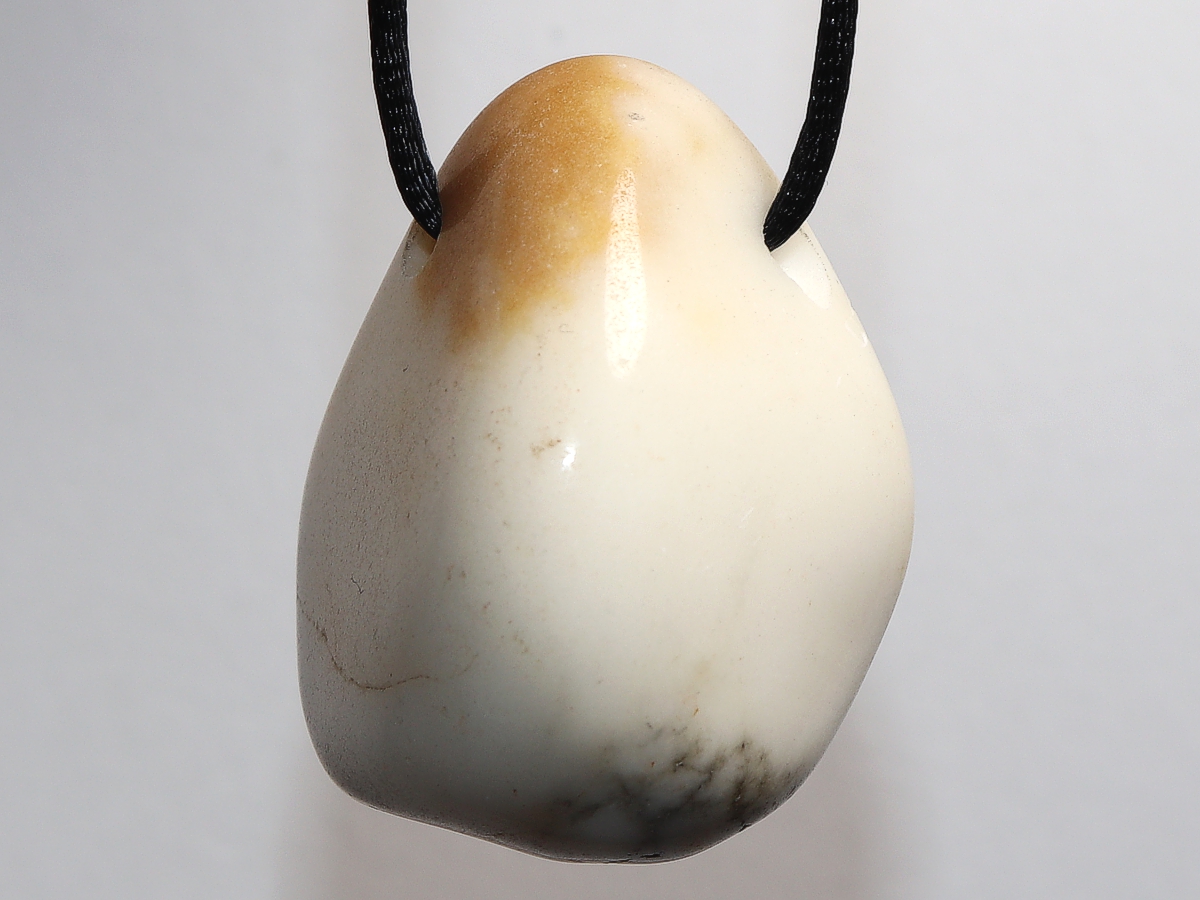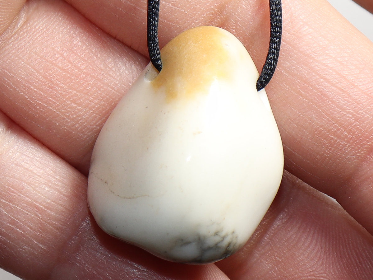 Die Halskette mit Howlith wird nach Ihren Angaben individualisiert. Sie haben die Wahl zwischen einem schwarzen Band mit einem Verschluss aus Edelstahl oder einer Kette aus Silber 925.