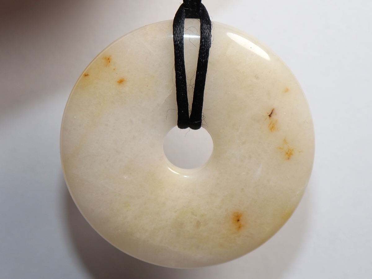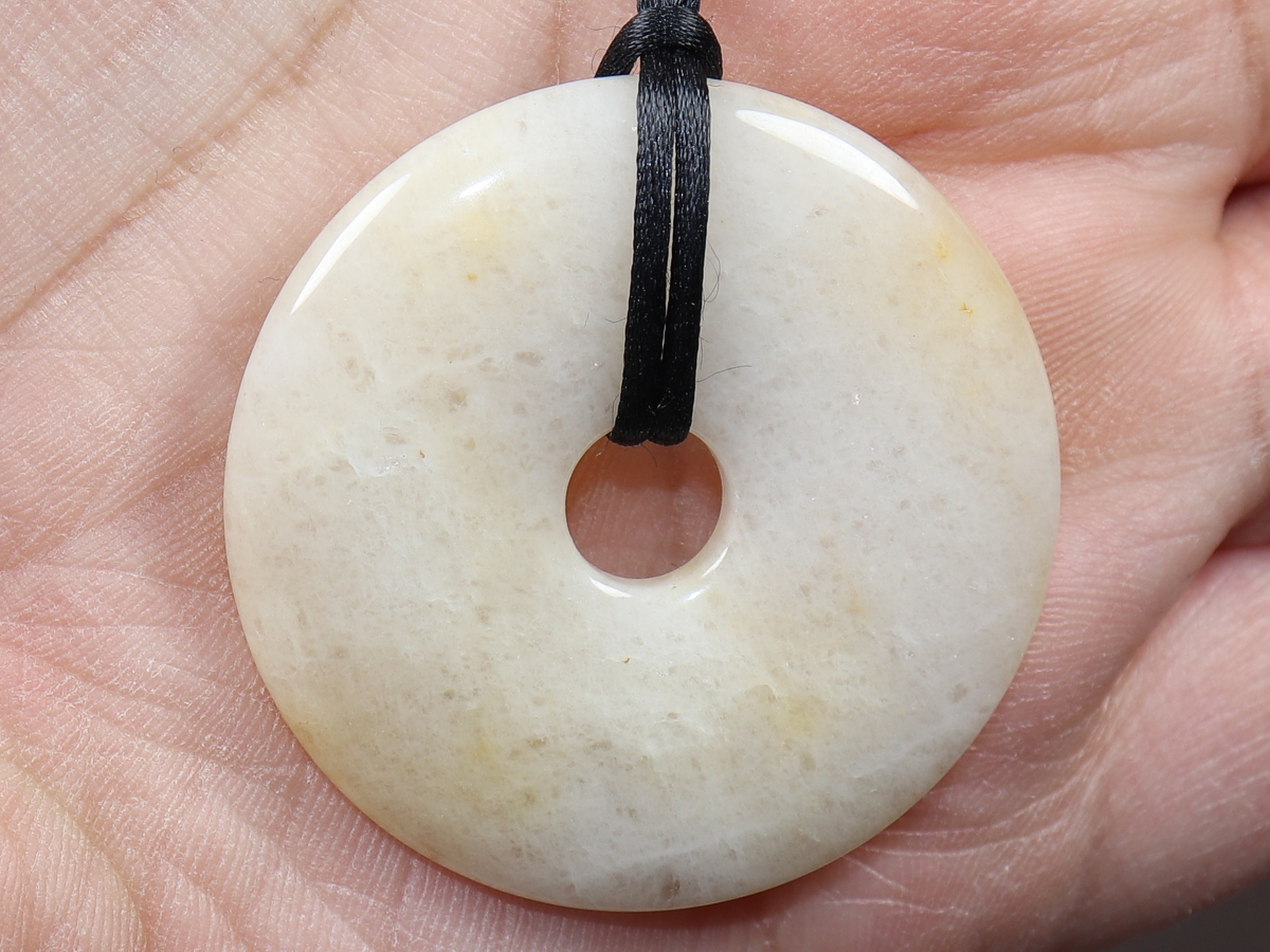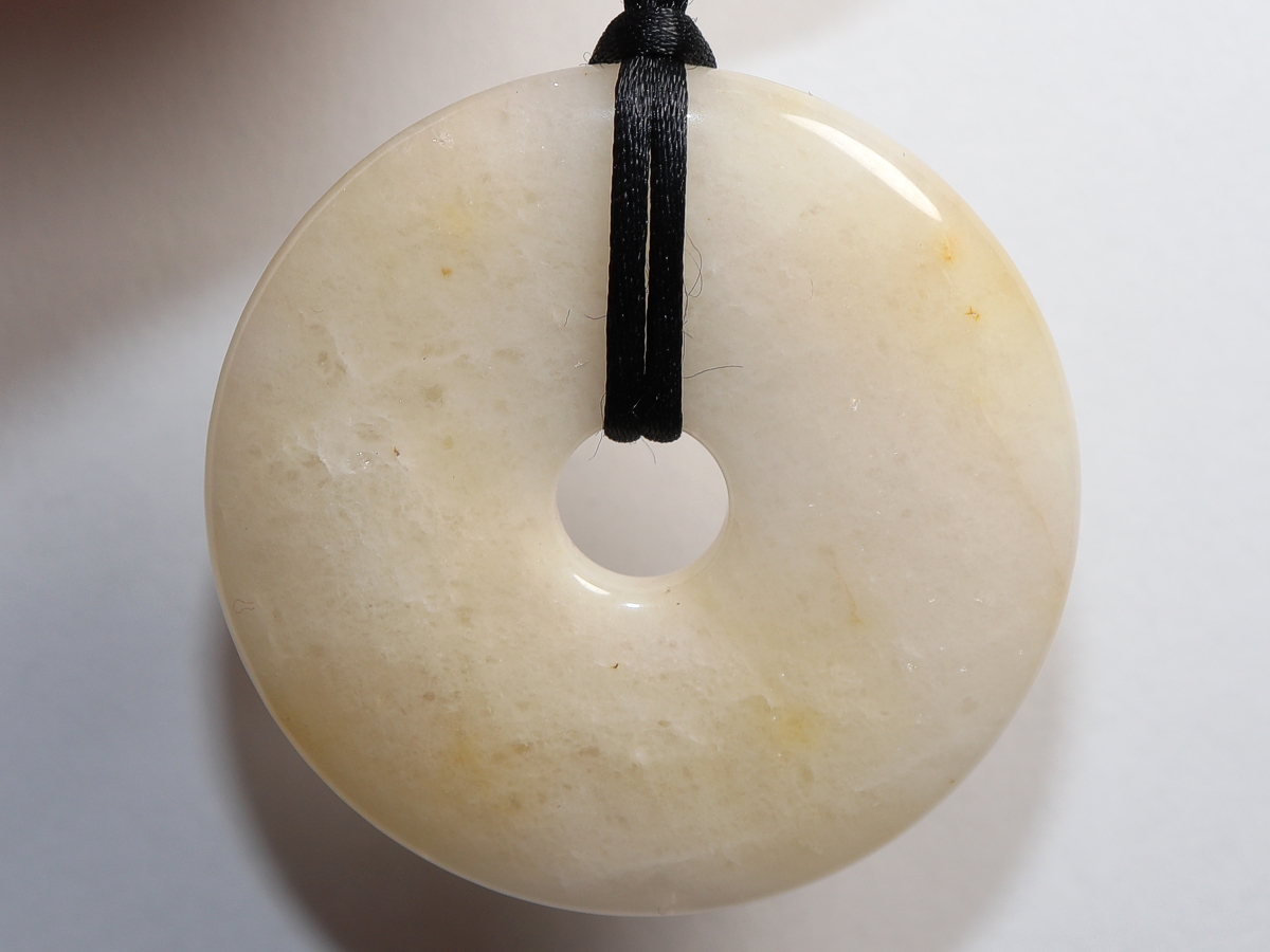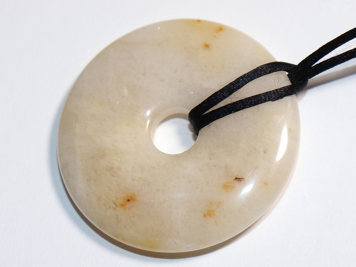 Die Halskette mit dem Donut aus Jade und einem schwarzen Band wird nach Ihren Angaben individualisiert. Der Verschluss ist aus Edelstahl.