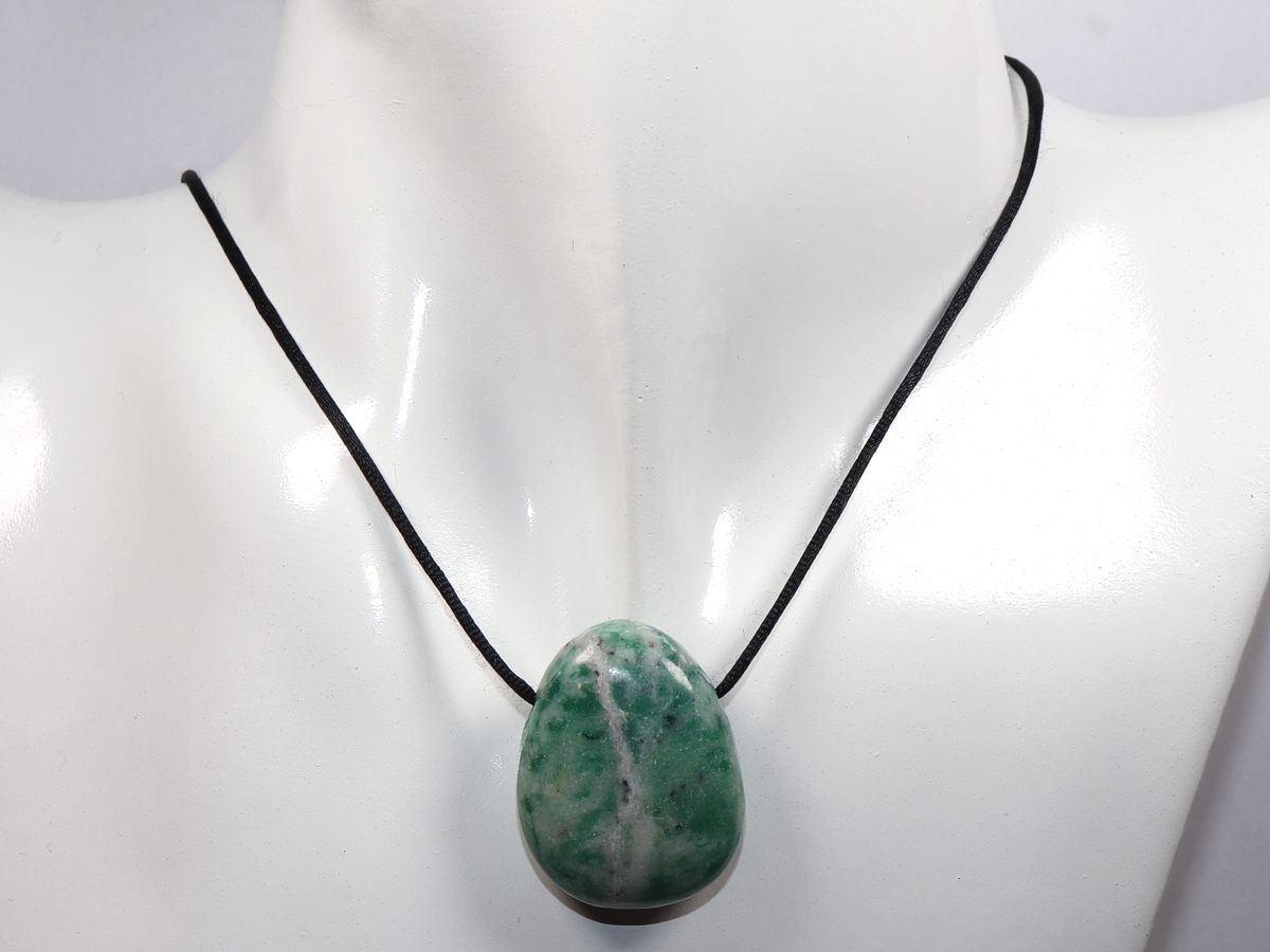Die Halskette mit Jade wird nach Ihren Angaben individualisiert. Sie haben die Wahl zwischen einem schwarzen Band mit einem Verschluss aus Edelstahl oder einer Kette aus Silber 925.