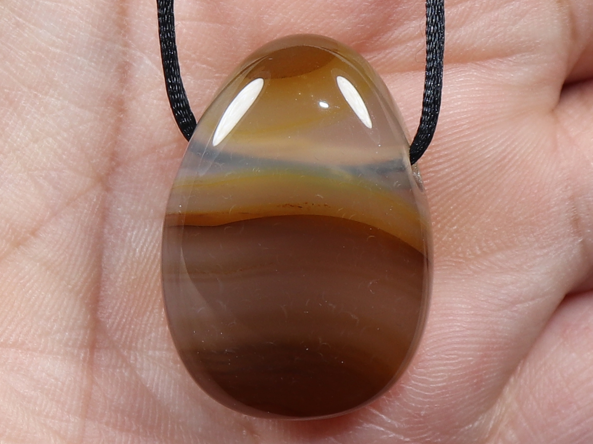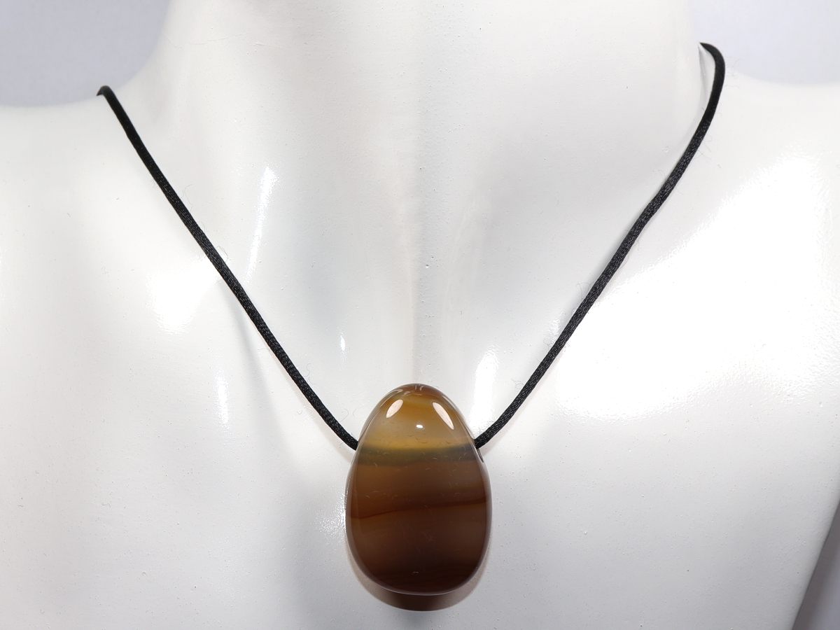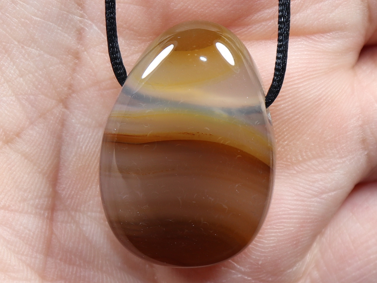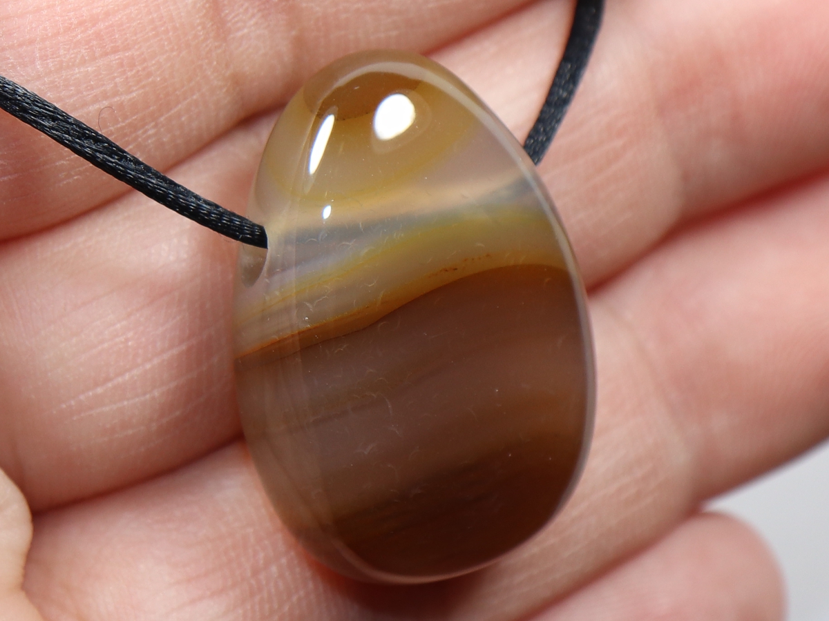 Das Band wird lose (ohne Verschluss) mit einer Länge von 1,5 m mit dem Stein geliefert. Wählen Sie hierfür bitte im Dropdown-Feld "weitere Optionen / Bandfarben" die Variante "Band ohne Verschluss | schwarz | 1,5 m" aus.