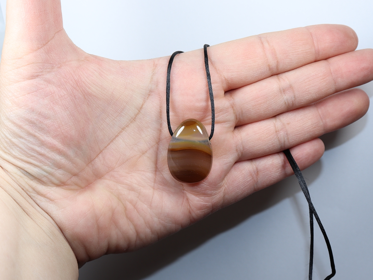 Die Halskette mit Karneol wird nach Ihren Angaben individualisiert. Sie haben die Wahl zwischen einem schwarzen Band mit einem Verschluss aus Edelstahl oder einer Kette aus Silber 925.