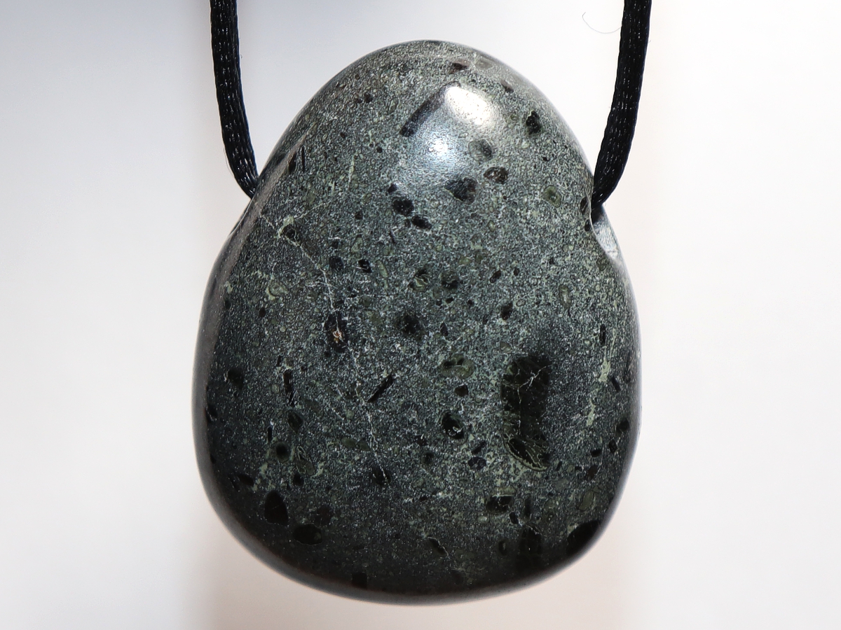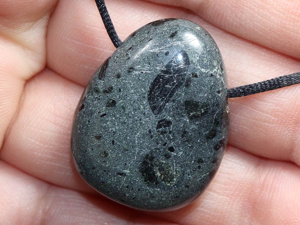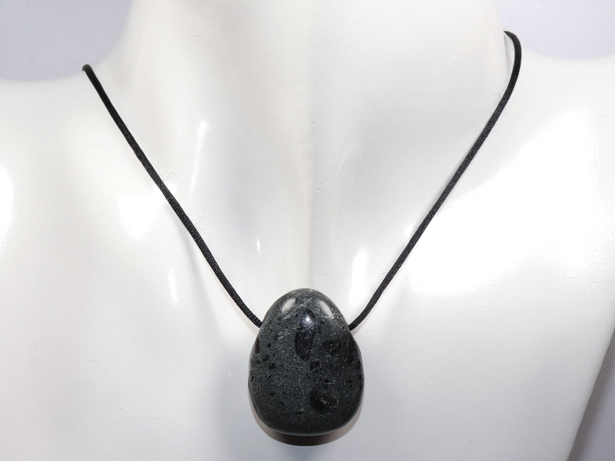 Die Halskette mit Kimberlit wird nach Ihren Angaben individualisiert. Sie haben die Wahl zwischen einem schwarzen Band mit einem Verschluss aus Edelstahl oder einer Kette aus Silber 925.