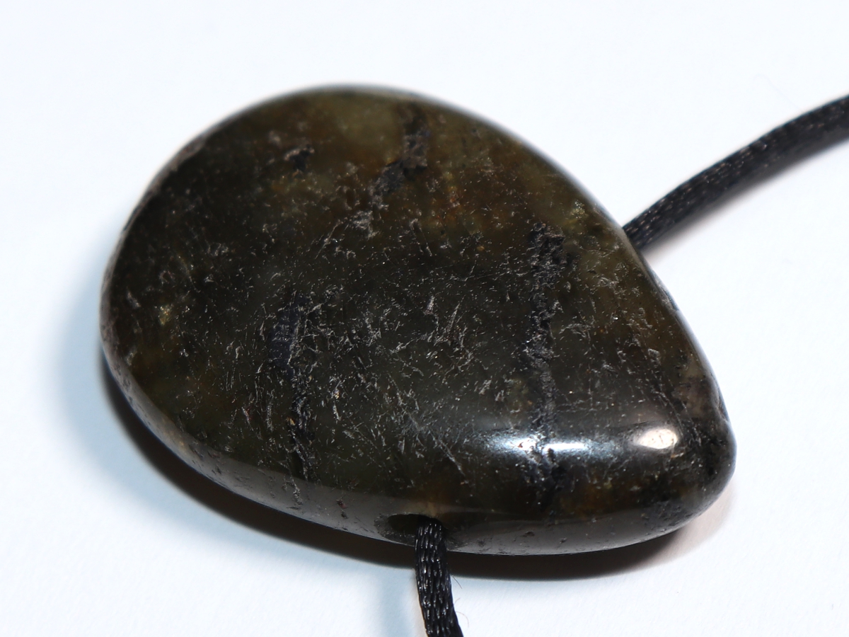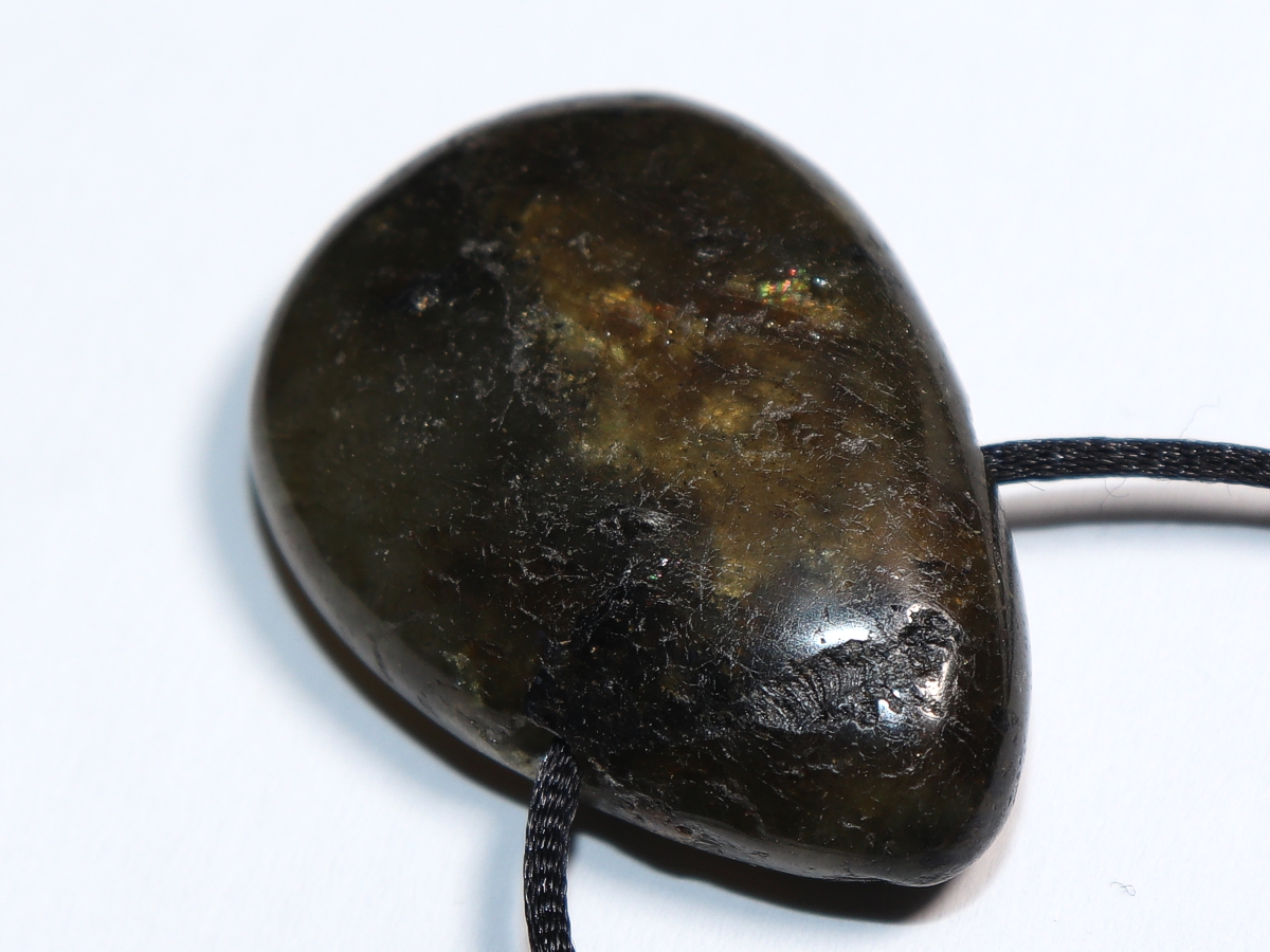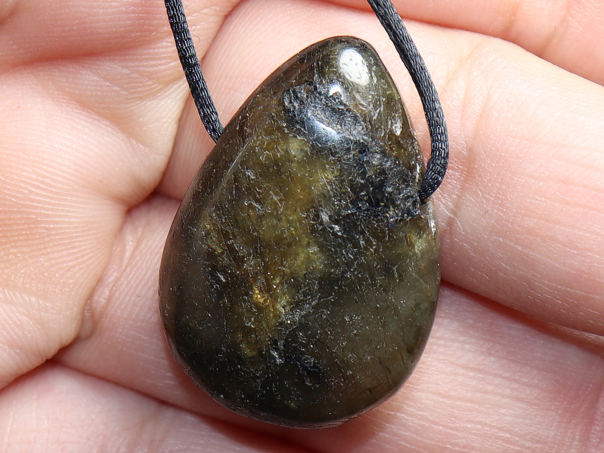 Die Halskette mit Labradorit wird nach Ihren Angaben individualisiert. Sie haben die Wahl zwischen einem schwarzen Band mit einem Verschluss aus Edelstahl oder einer Kette aus Silber 925.