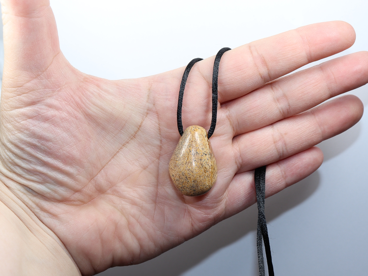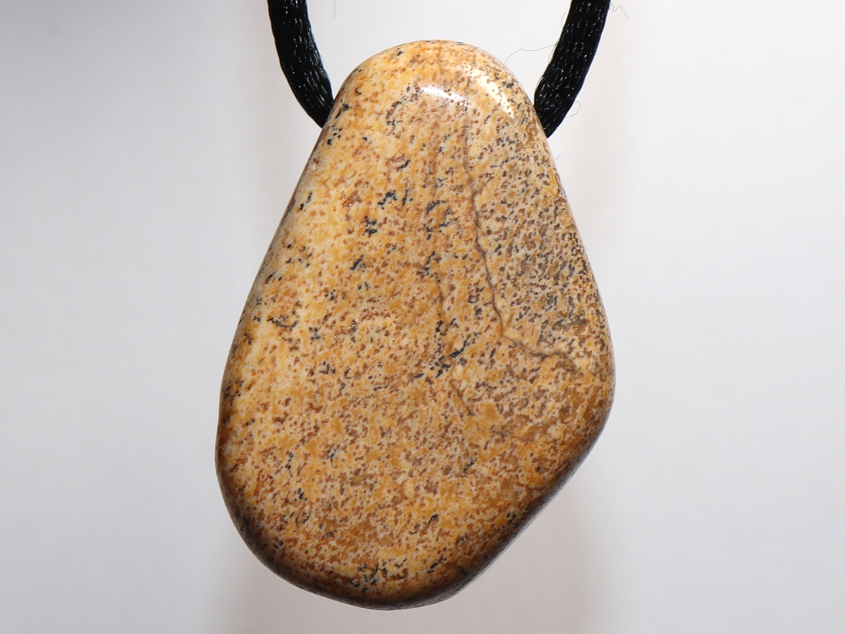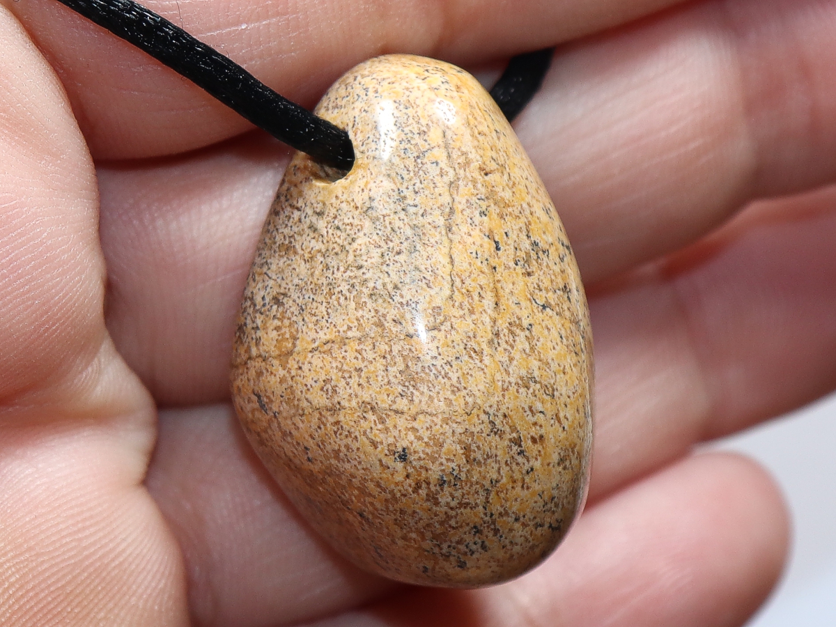 Die Halskette mit Landschaftsjaspis wird nach Ihren Angaben individualisiert. Sie haben die Wahl zwischen einem schwarzen Band mit einem Verschluss aus Edelstahl oder einer Kette aus Silber 925.