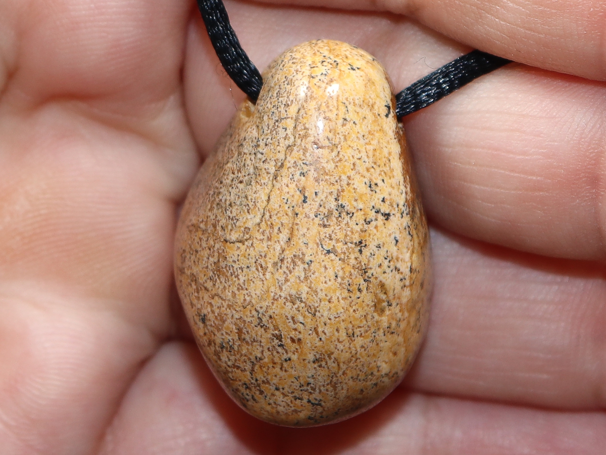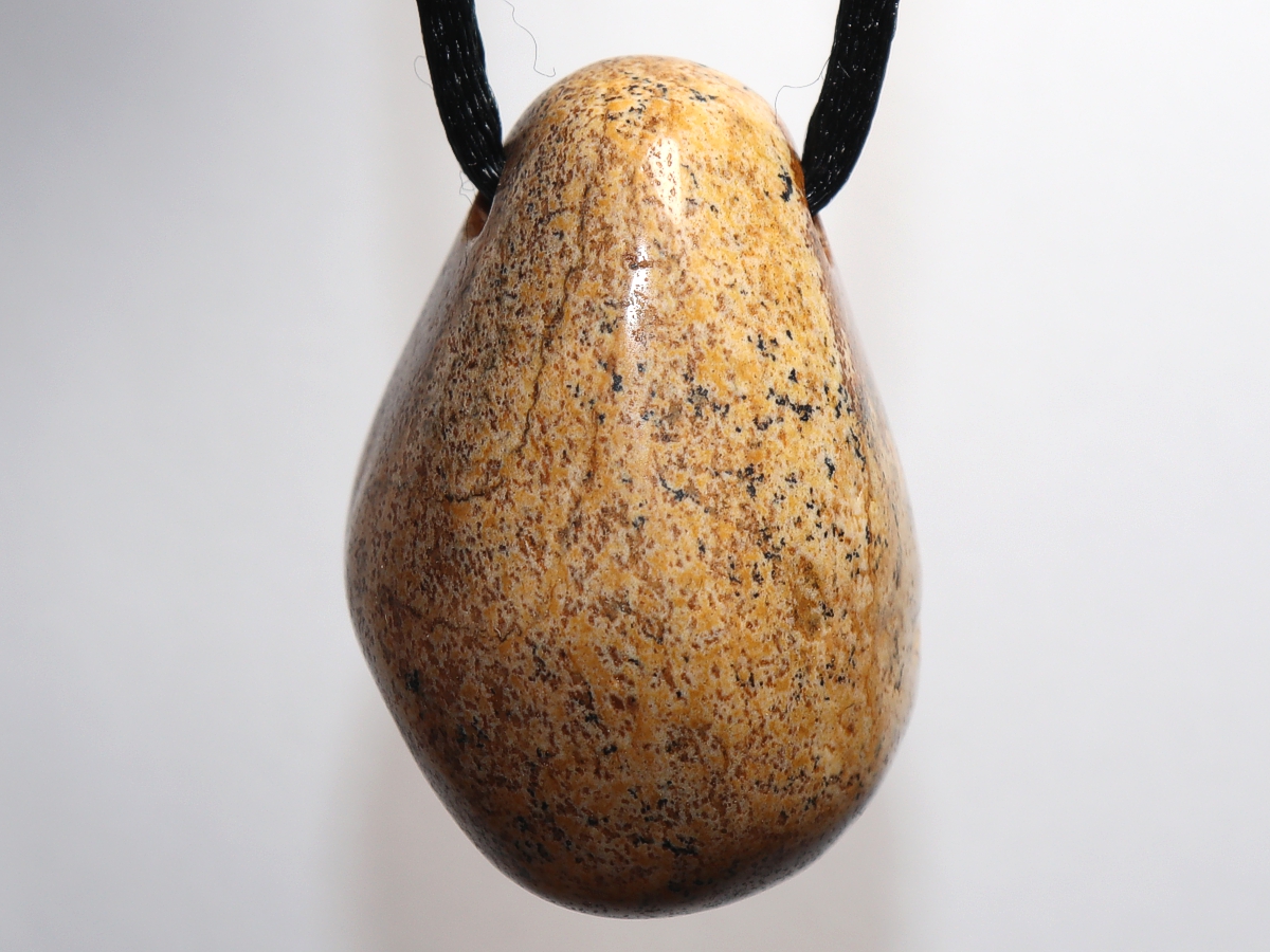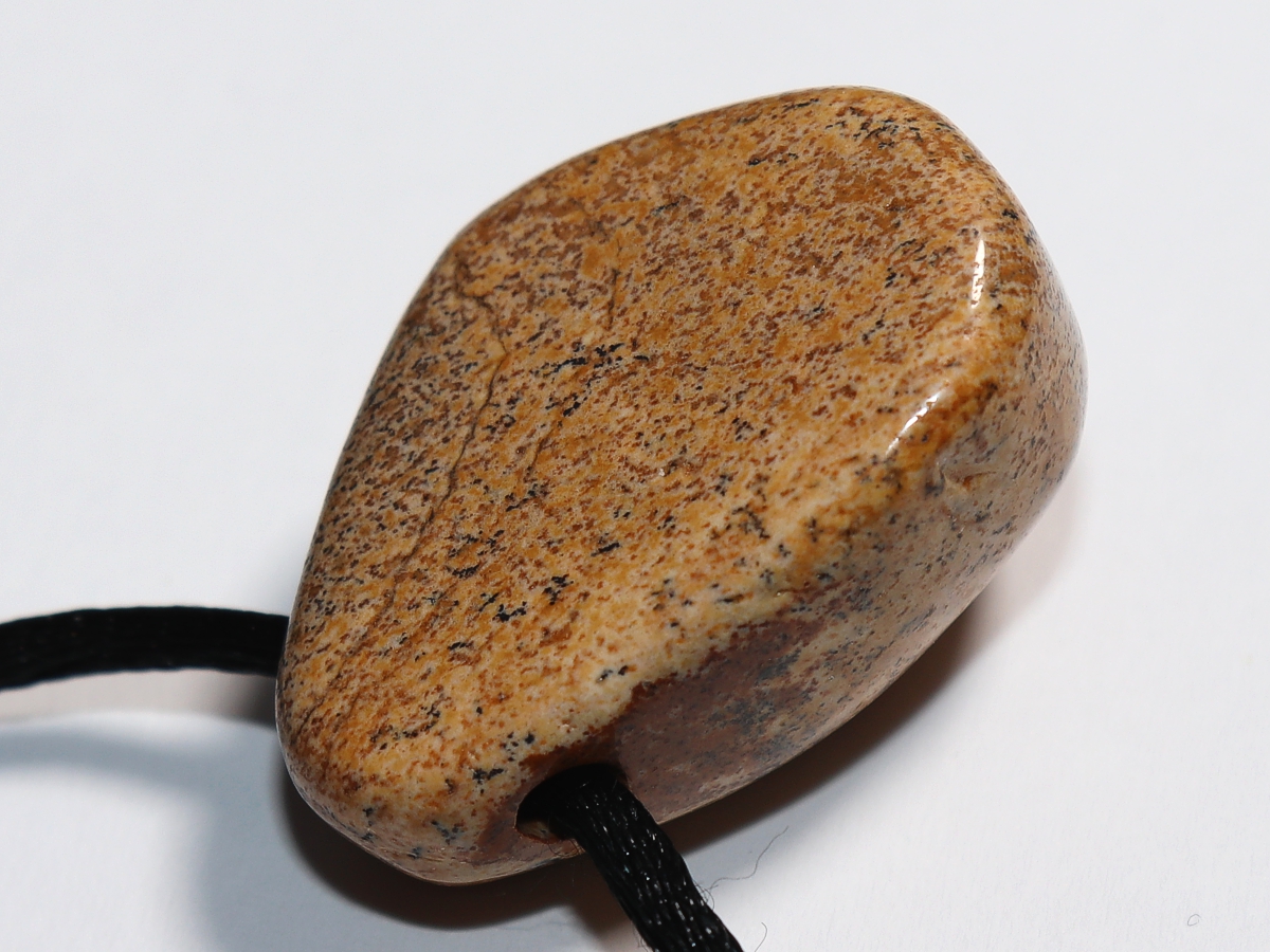 Die Halskette mit Landschaftsjaspis wird nach Ihren Angaben individualisiert. Sie haben die Wahl zwischen einem schwarzen Band mit einem Verschluss aus Edelstahl oder einer Kette aus Silber 925.