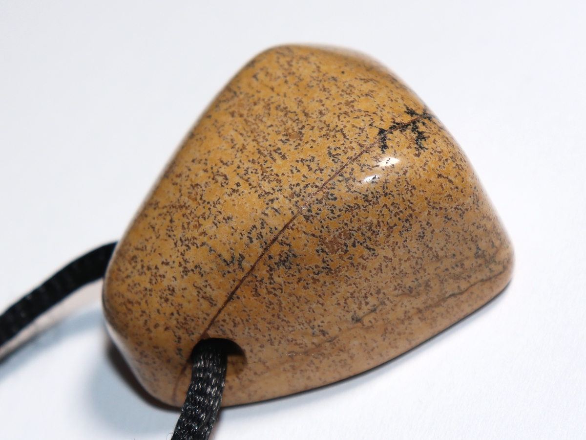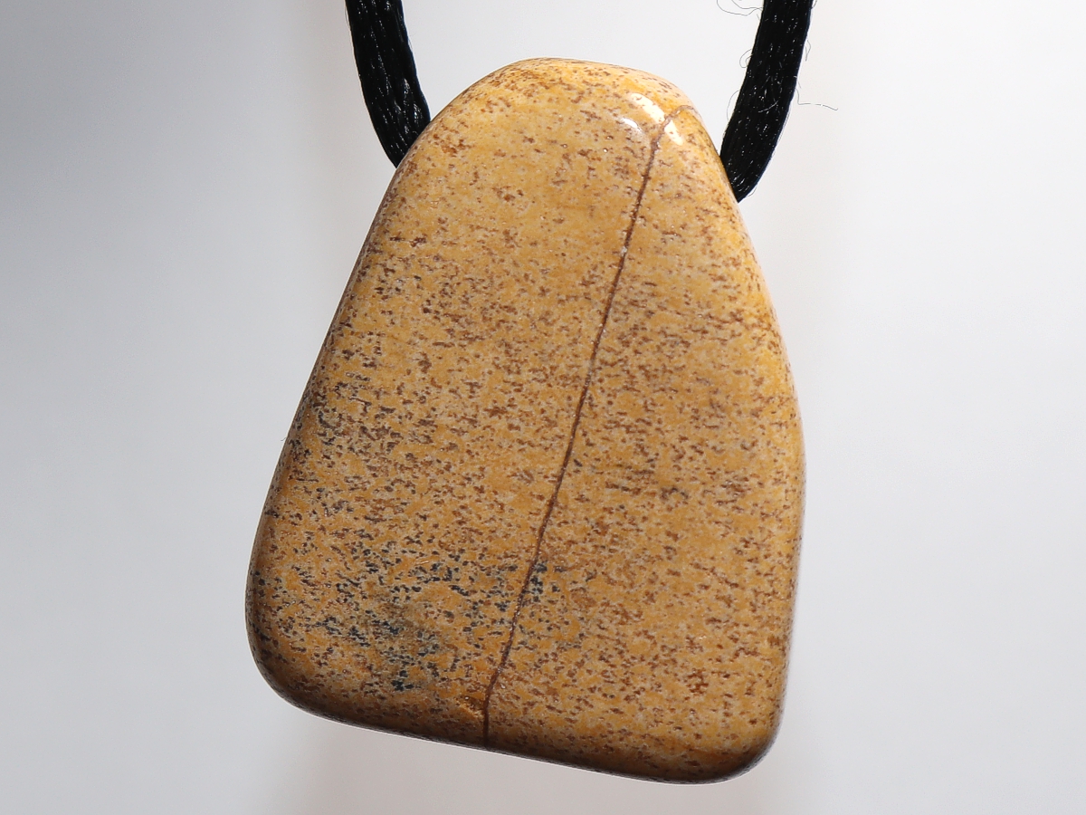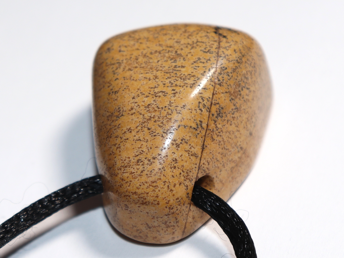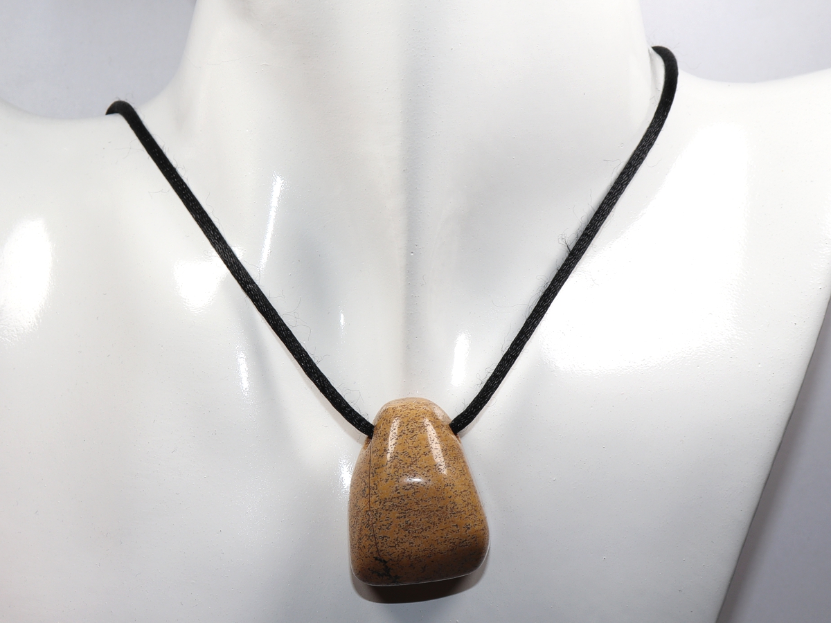 Die Halskette mit Landschaftsjaspis wird nach Ihren Angaben individualisiert. Sie haben die Wahl zwischen einem schwarzen Band mit einem Verschluss aus Edelstahl oder einer Kette aus Silber 925.