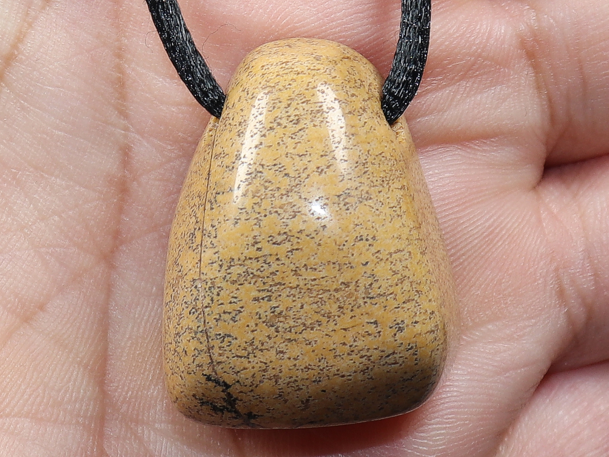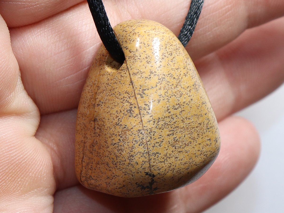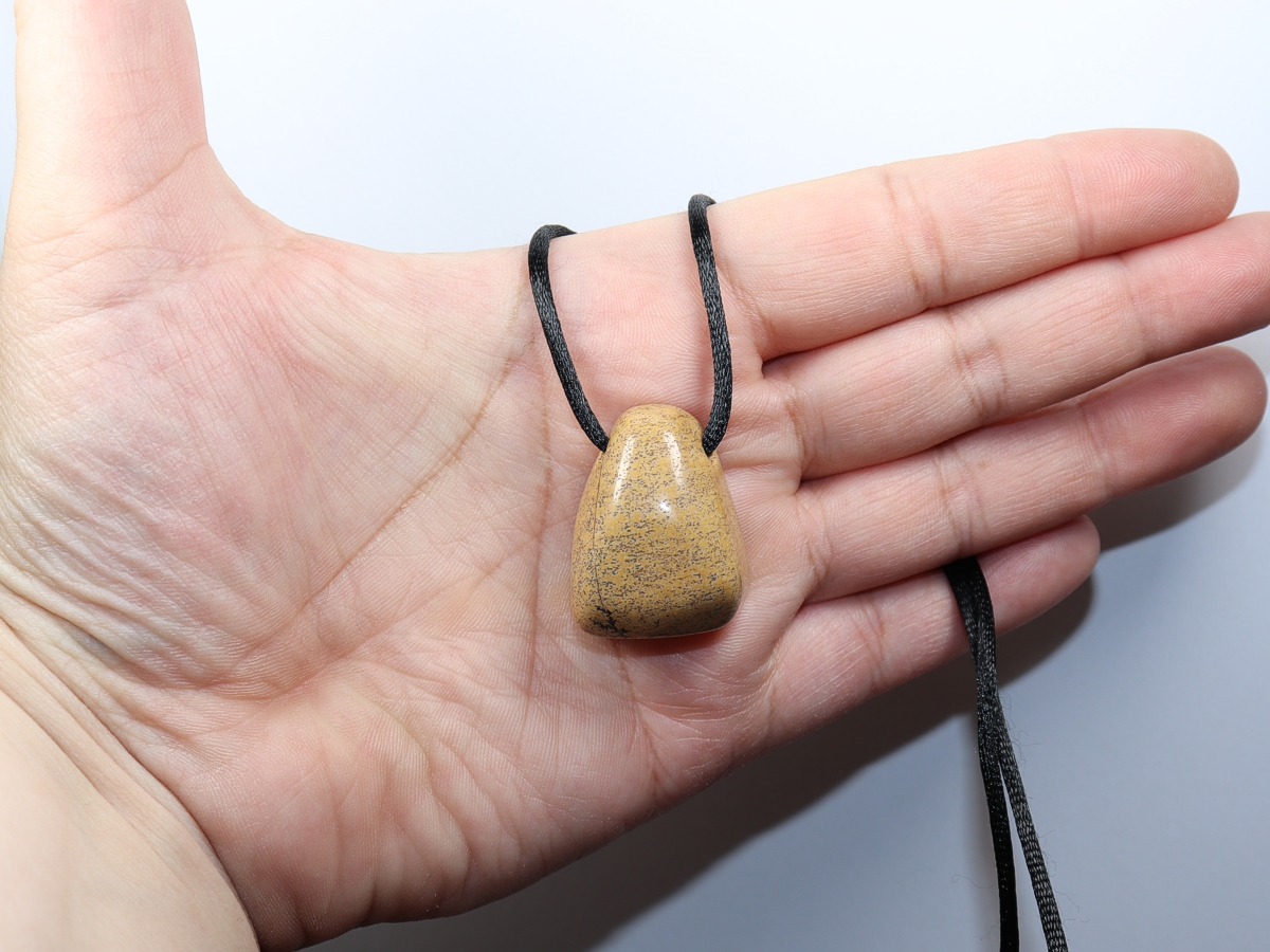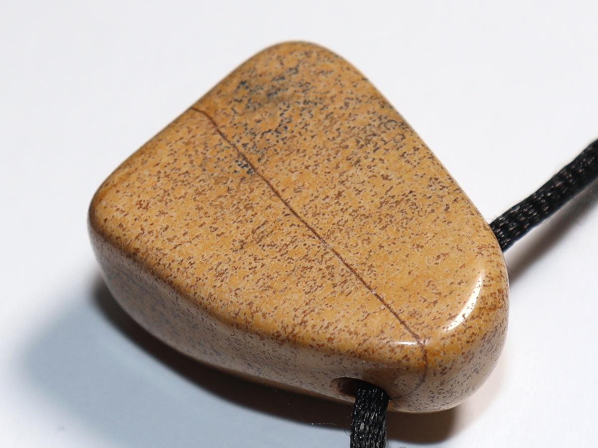 Die Halskette mit Landschaftsjaspis wird nach Ihren Angaben individualisiert. Sie haben die Wahl zwischen einem schwarzen Band mit einem Verschluss aus Edelstahl oder einer Kette aus Silber 925.