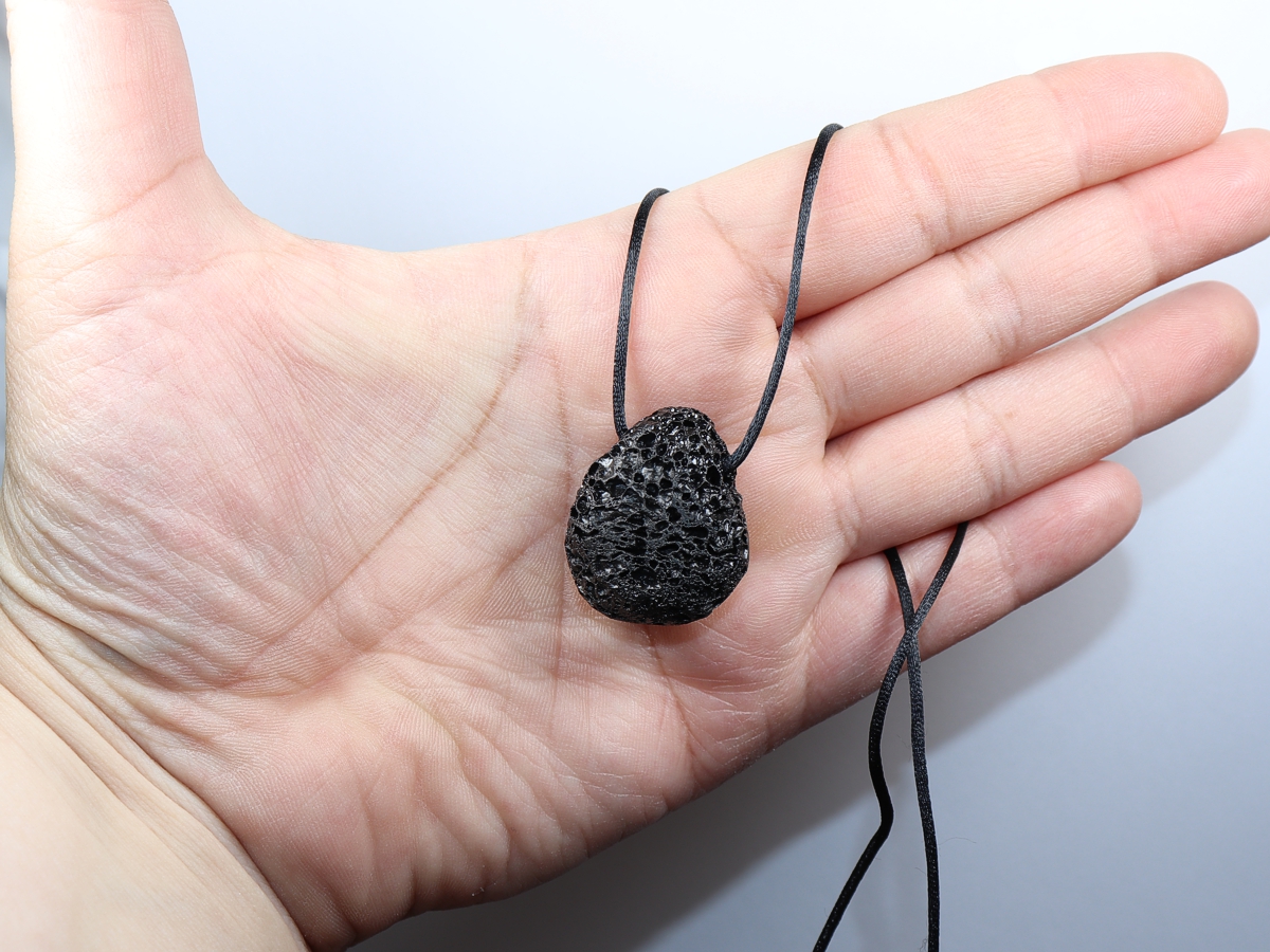 Die Halskette mit Lava wird nach Ihren Angaben individualisiert. Sie haben die Wahl zwischen einem schwarzen Band mit einem Verschluss aus Edelstahl oder einer Kette aus Silber 925.