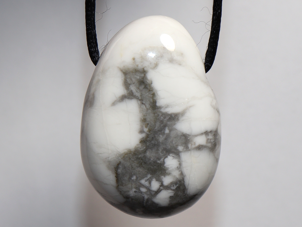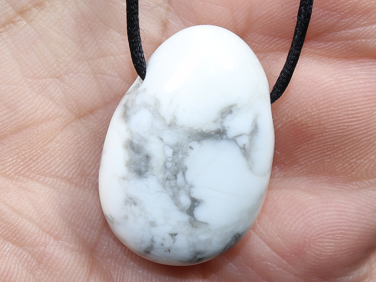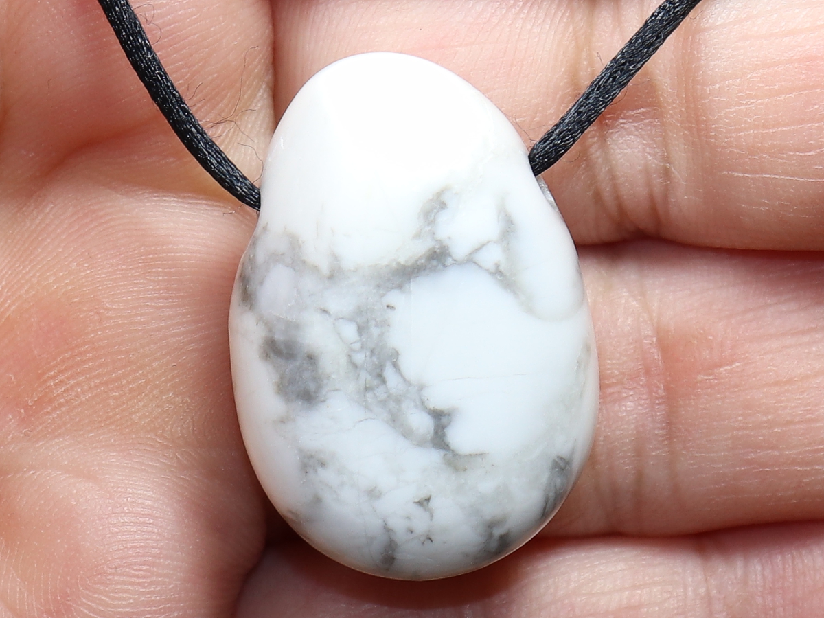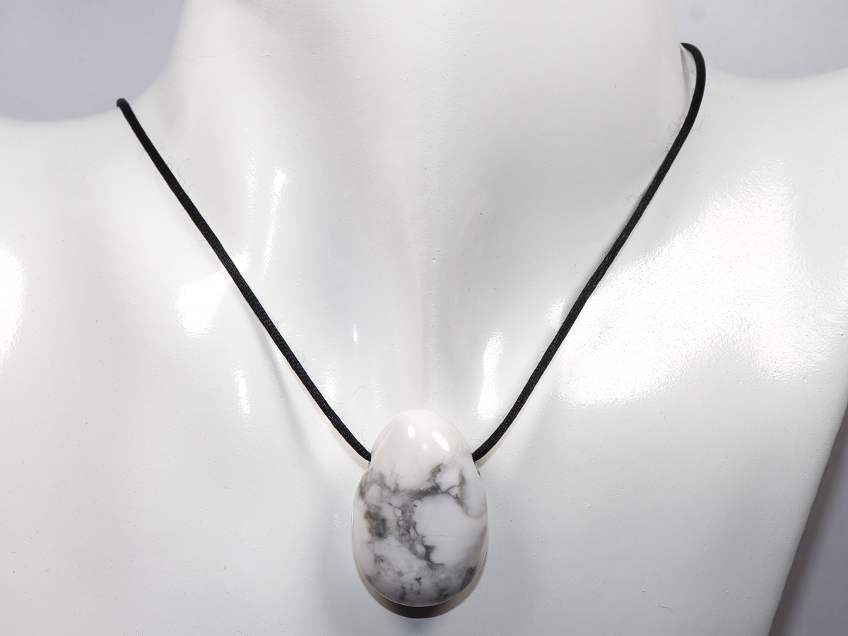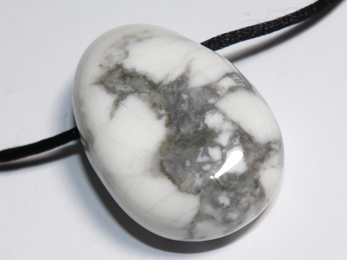 Die Halskette mit Magnesit wird nach Ihren Angaben individualisiert. Sie haben die Wahl zwischen einem schwarzen Band mit einem Verschluss aus Edelstahl oder einer Kette aus Silber 925.