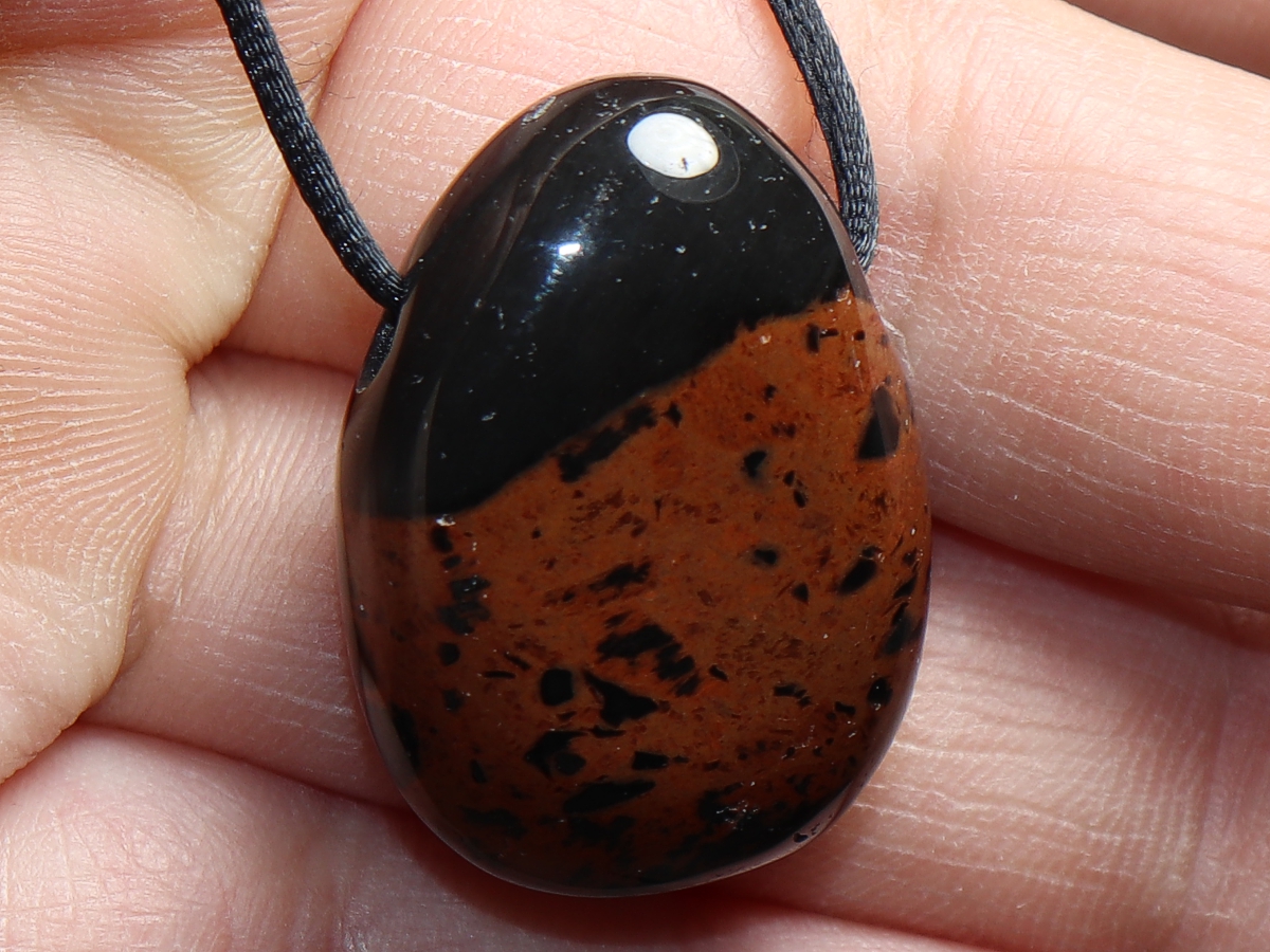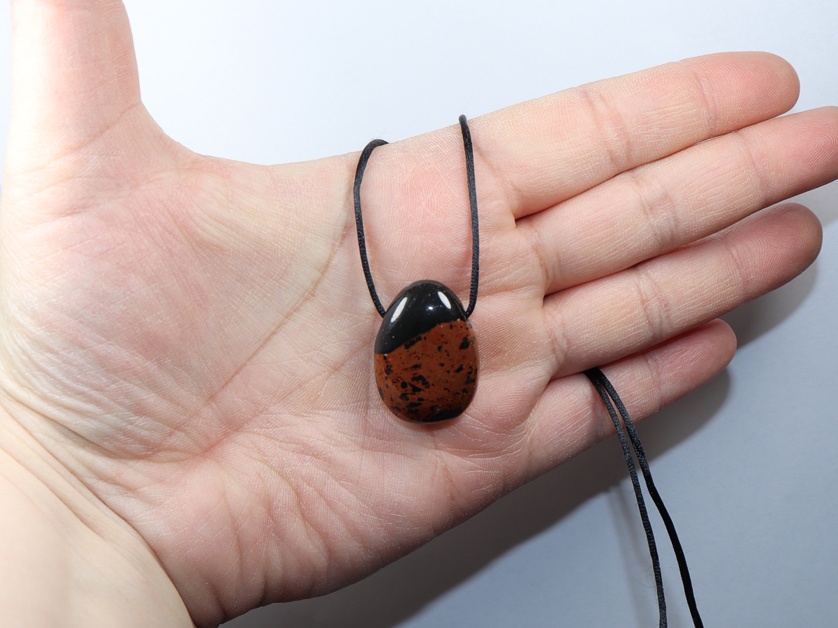 Die Halskette mit Mahagoniobsidian wird nach Ihren Angaben individualisiert. Sie haben die Wahl zwischen einem schwarzen Band mit einem Verschluss aus Edelstahl oder einer Kette aus Silber 925.
