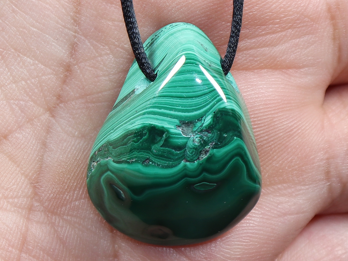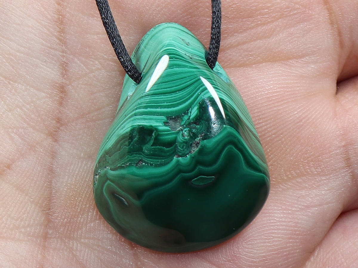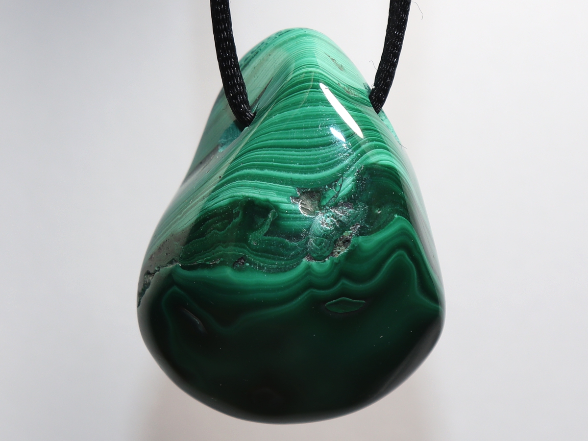Die Halskette mit Malachit wird nach Ihren Angaben individualisiert. Sie haben die Wahl zwischen einem schwarzen Band mit einem Verschluss aus Edelstahl oder einer Kette aus Silber 925.