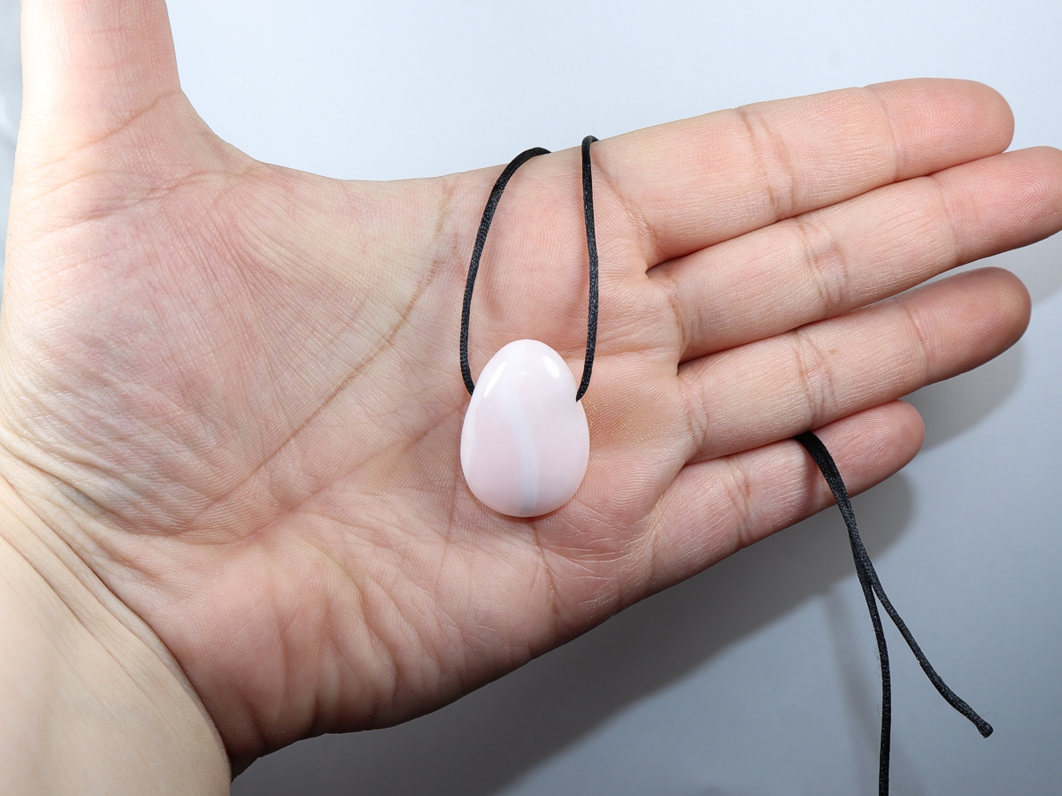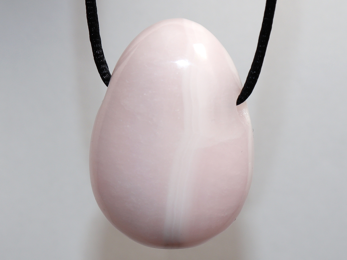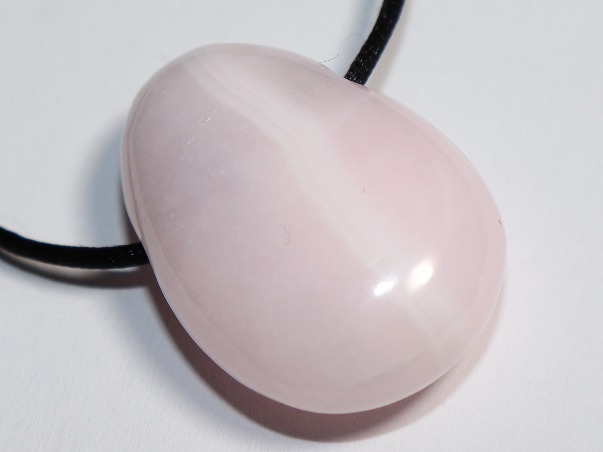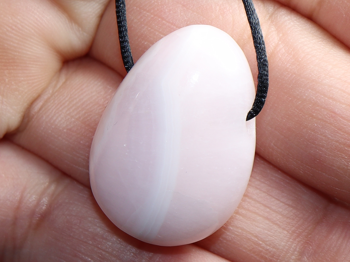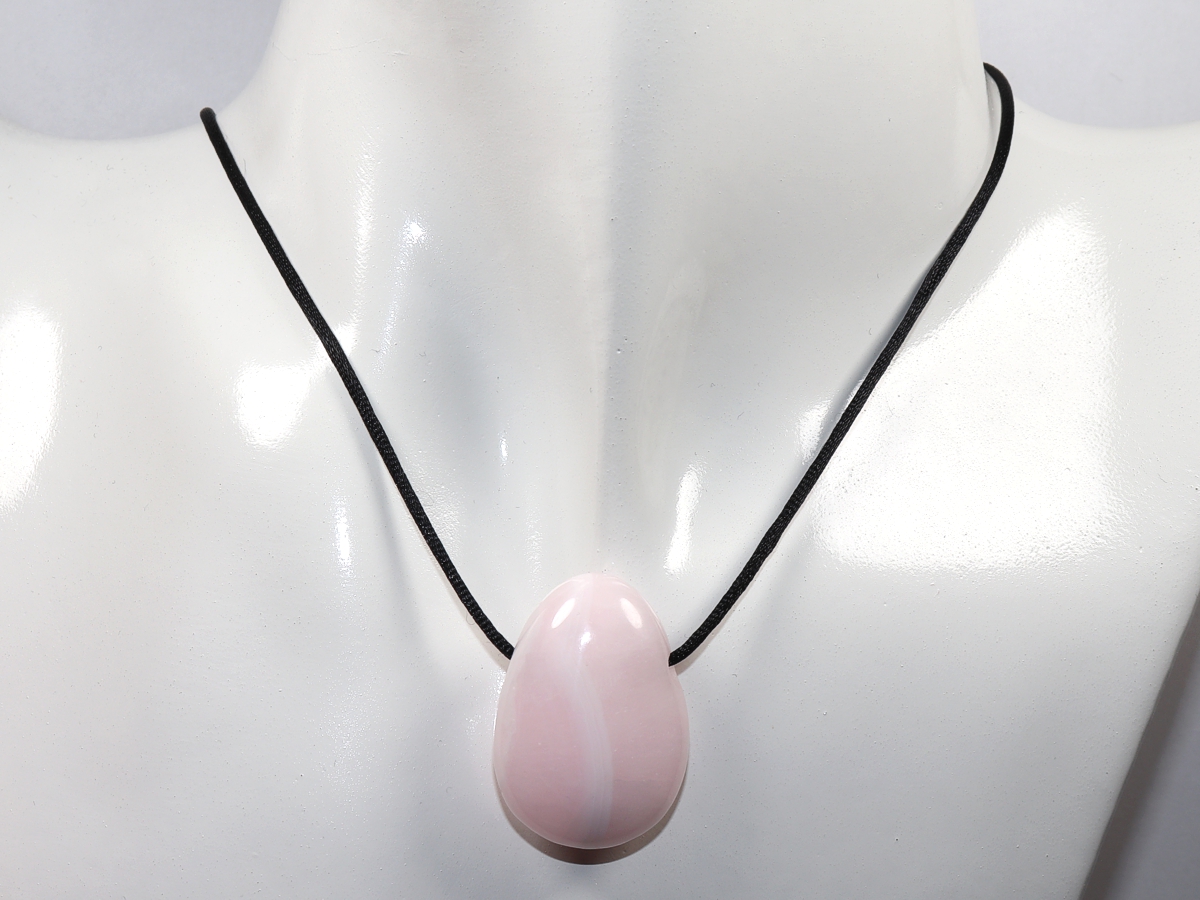 Die Halskette mit Manganocalcit wird nach Ihren Angaben individualisiert. Sie haben die Wahl zwischen einem schwarzen Band mit einem Verschluss aus Edelstahl oder einer Kette aus Silber 925.