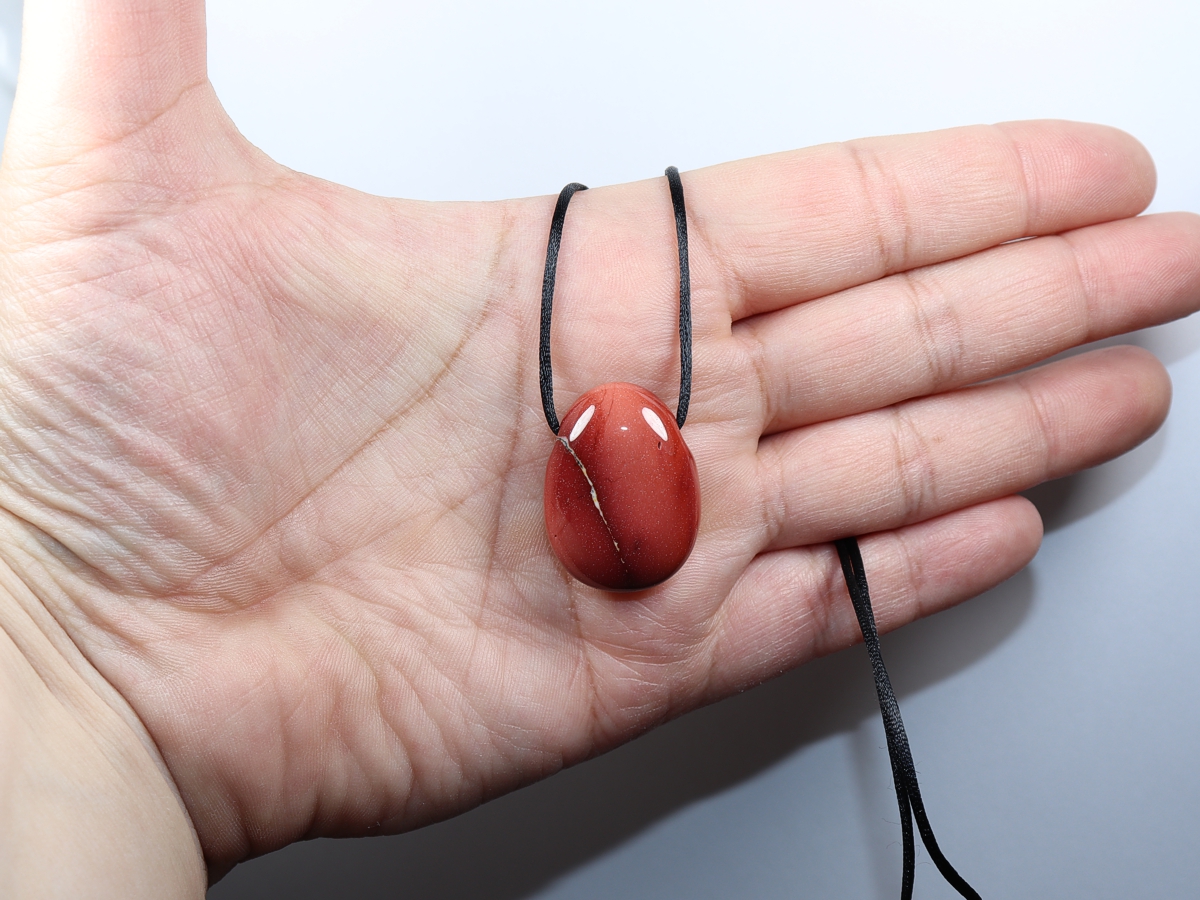 Die Halskette mit Mookait wird nach Ihren Angaben individualisiert. Sie haben die Wahl zwischen einem schwarzen Band mit einem Verschluss aus Edelstahl oder einer Kette aus Silber 925.