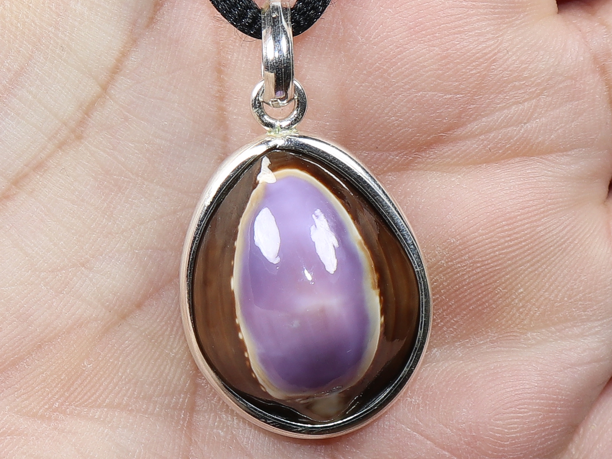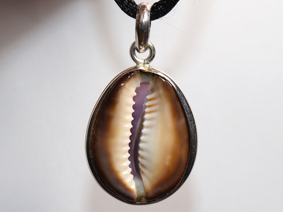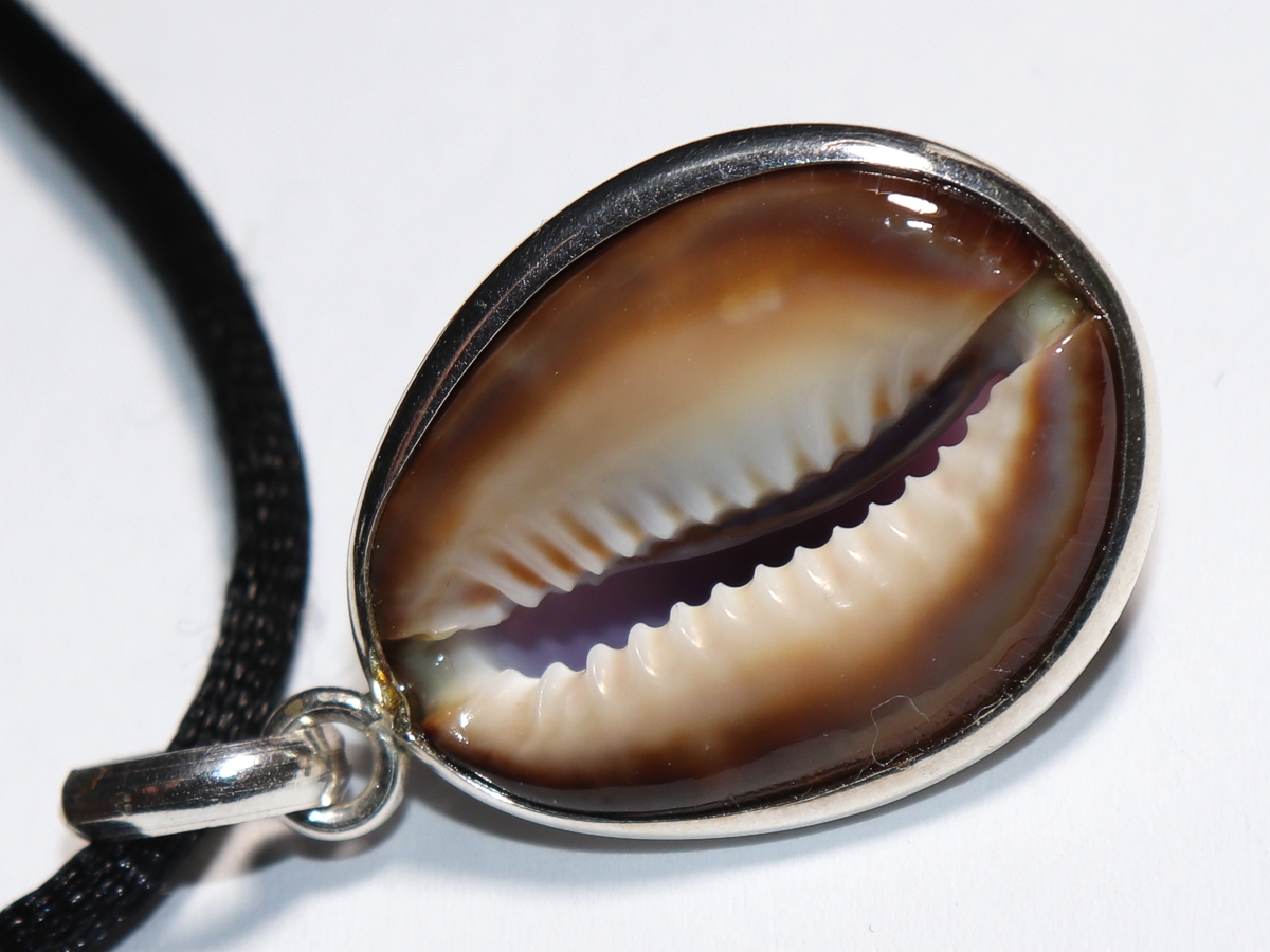 Die Halskette mit der Muschel wird nach Ihren Angaben individualisiert. Sie haben die Wahl zwischen einem schwarzen Band mit einem Verschluss aus Edelstahl oder einer Kette aus Silber 925.