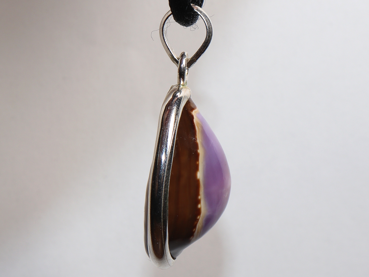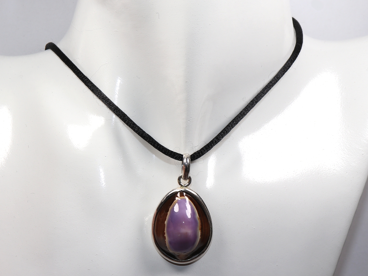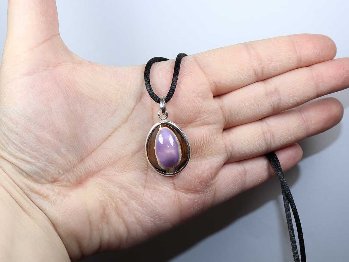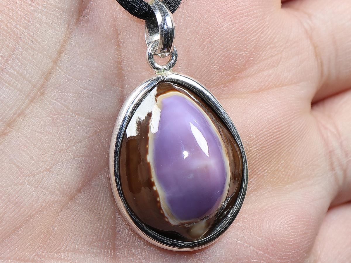 Die Halskette mit der Muschel wird nach Ihren Angaben individualisiert. Sie haben die Wahl zwischen einem schwarzen Band mit einem Verschluss aus Edelstahl oder einer Kette aus Silber 925.