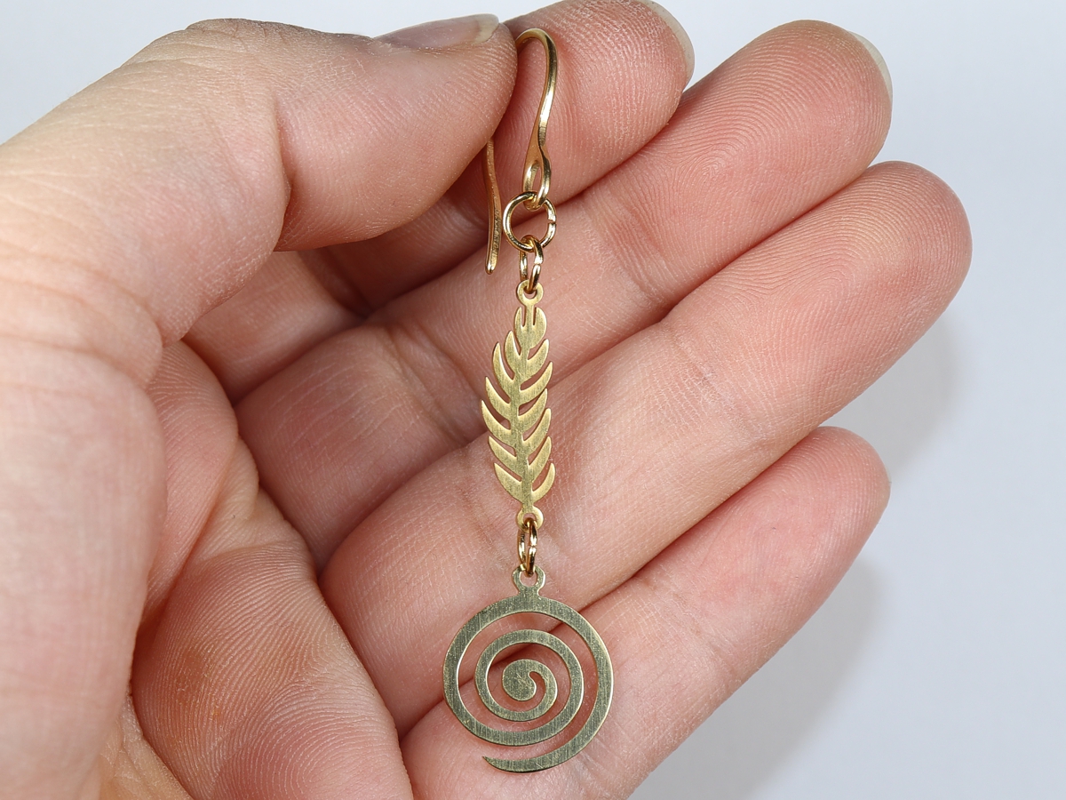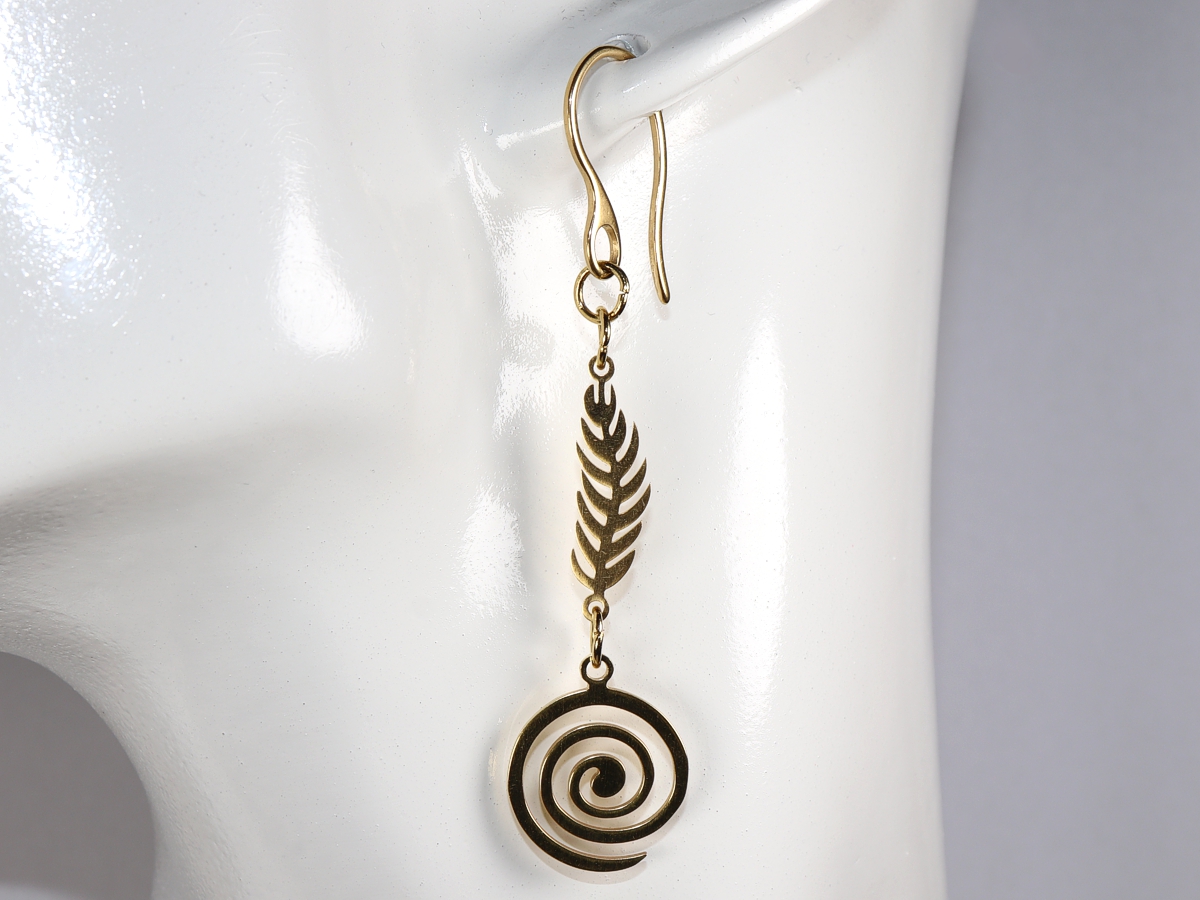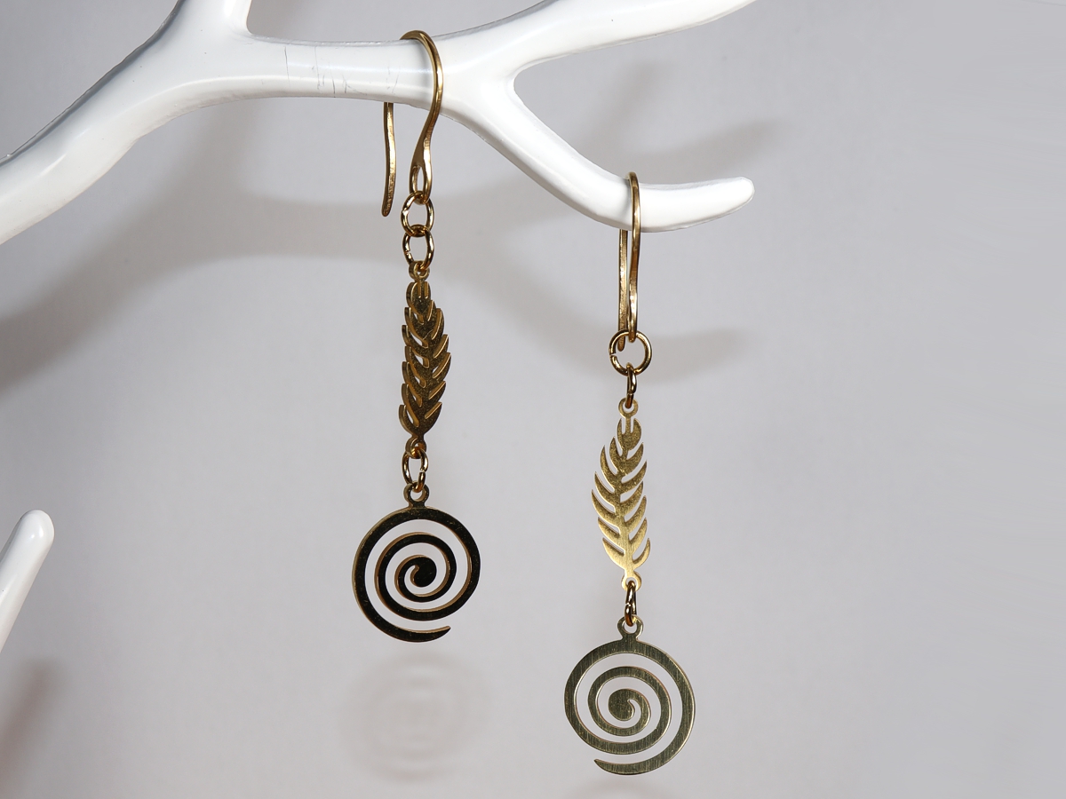 Die Ohrringe mit je einer Spirale und einer Feder wurden aus Edelstahl gefertigt.