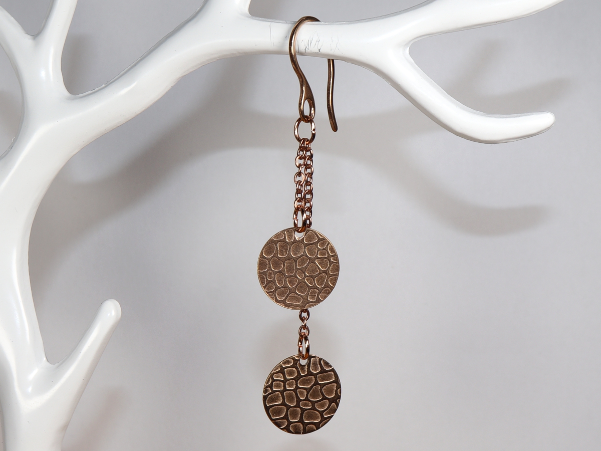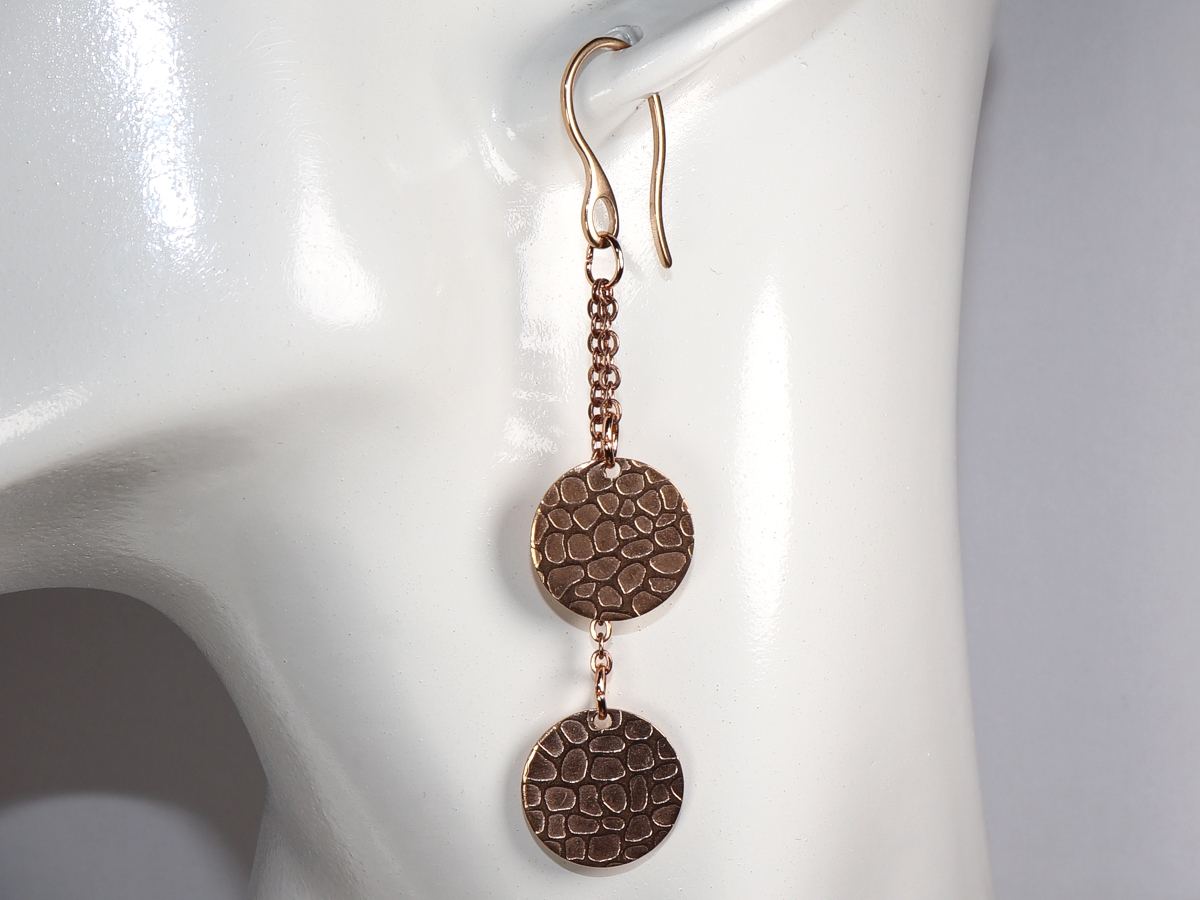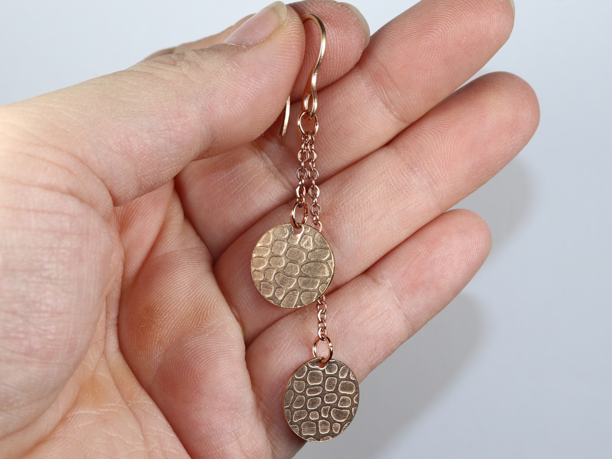 Die Ohrringe mit je zwei Scheiben wurden aus Edelstahl gefertigt.