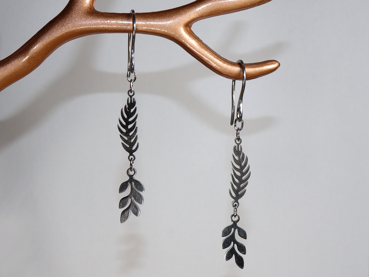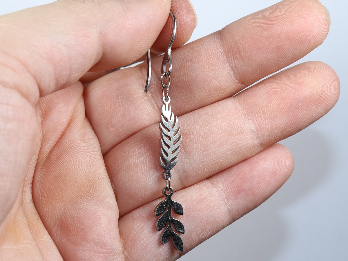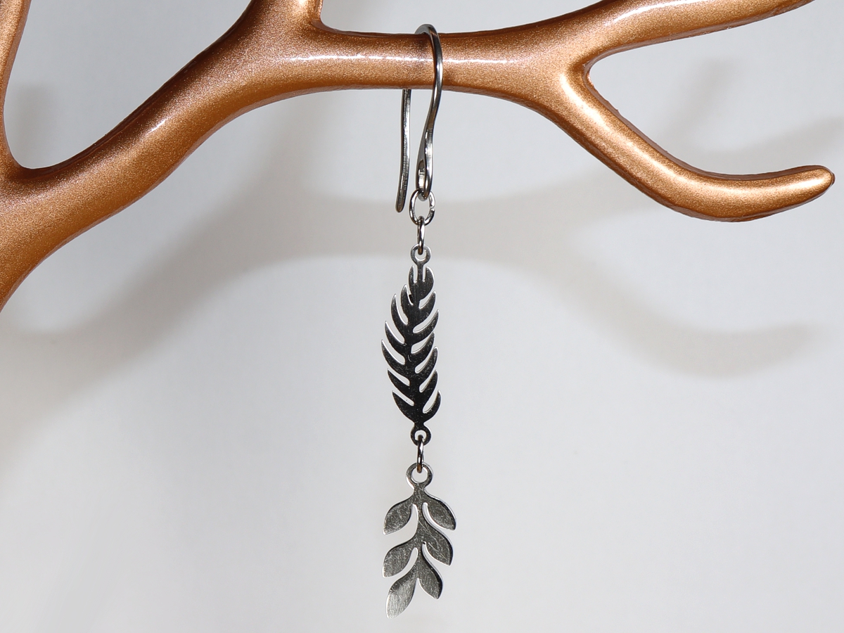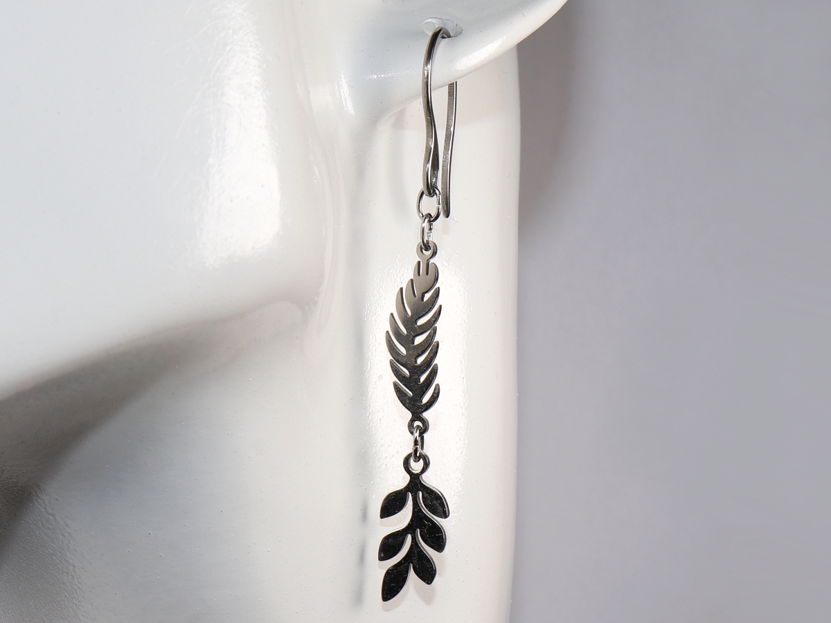 Die Ohrringe mit je einem Blatt und einer Feder wurden aus Edelstahl gefertigt.