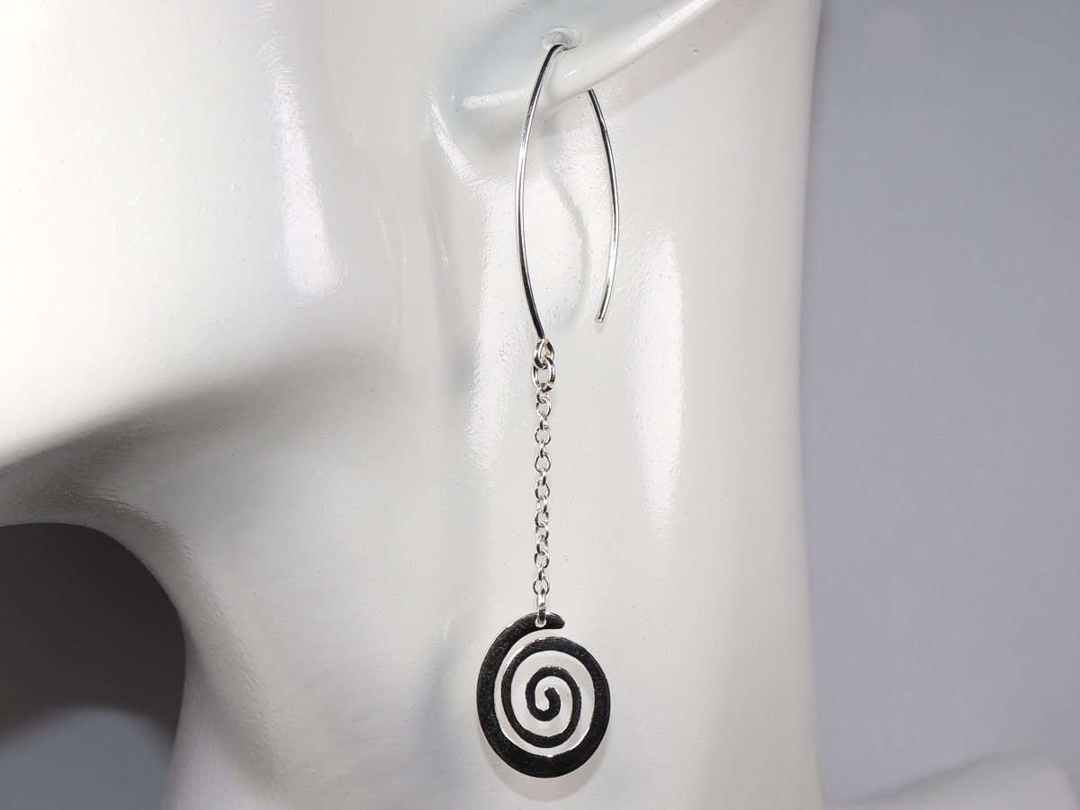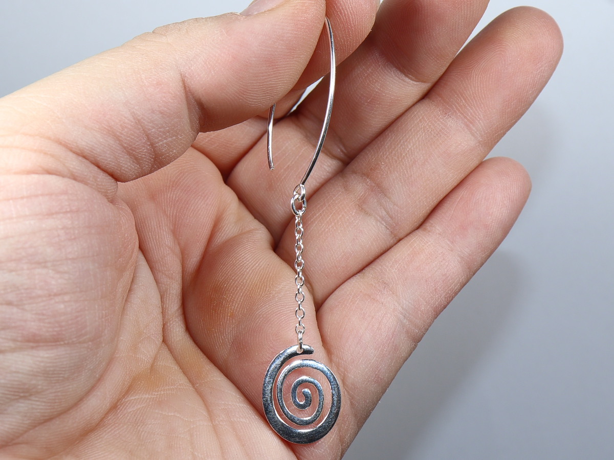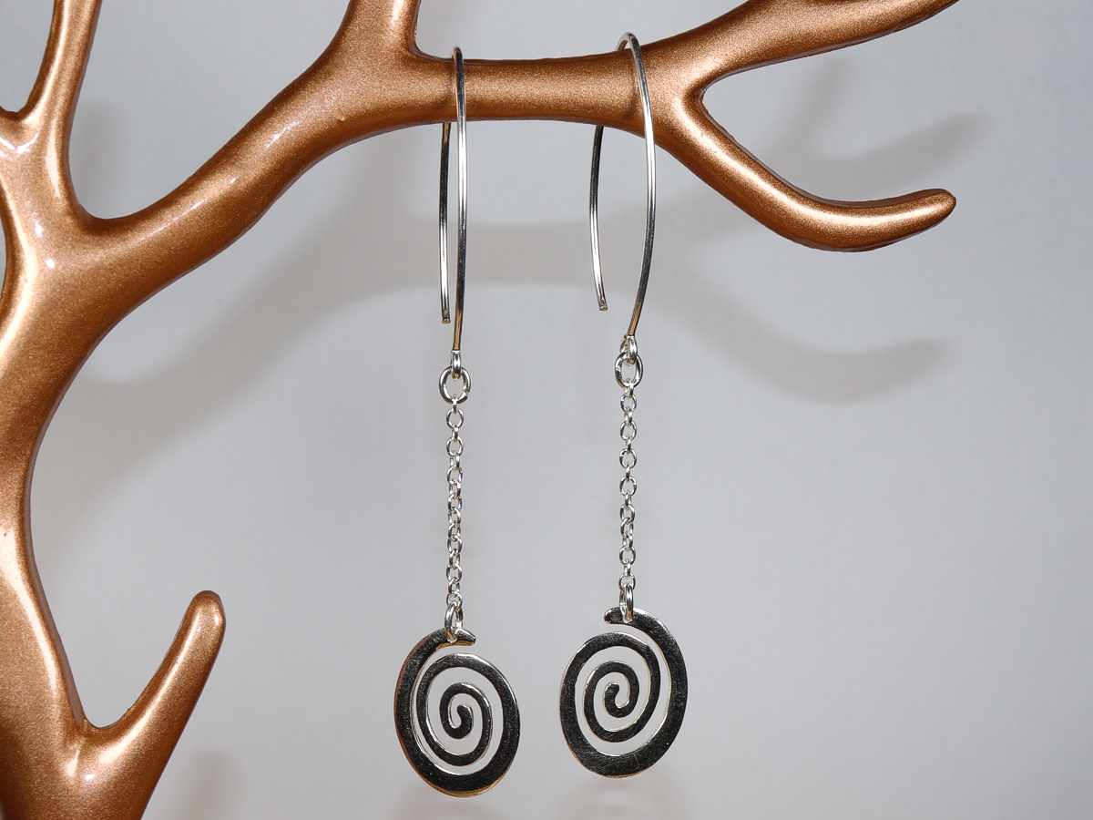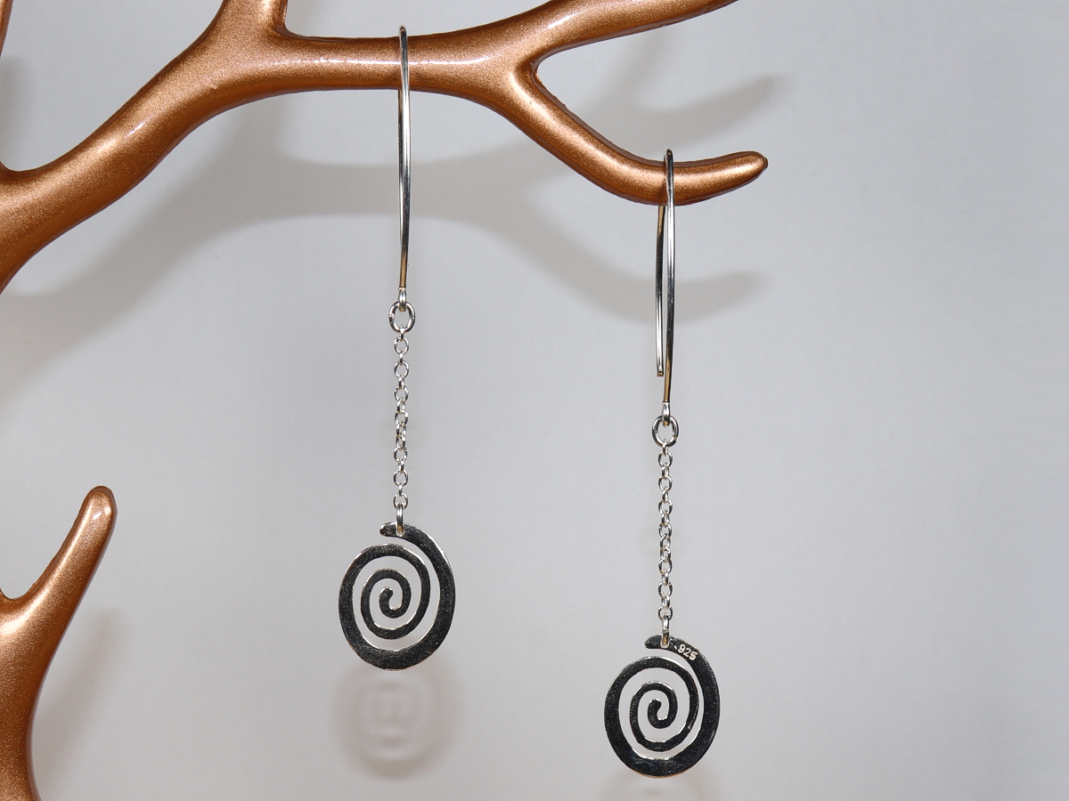 Die Ohrringe mit je einer Spirale wurden aus Sterlingsilber (Silber 925) gefertigt.