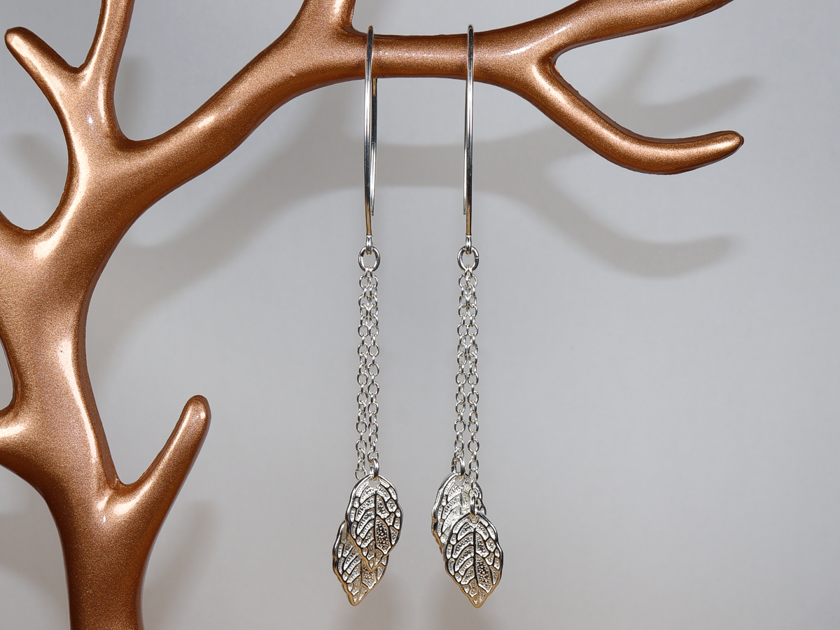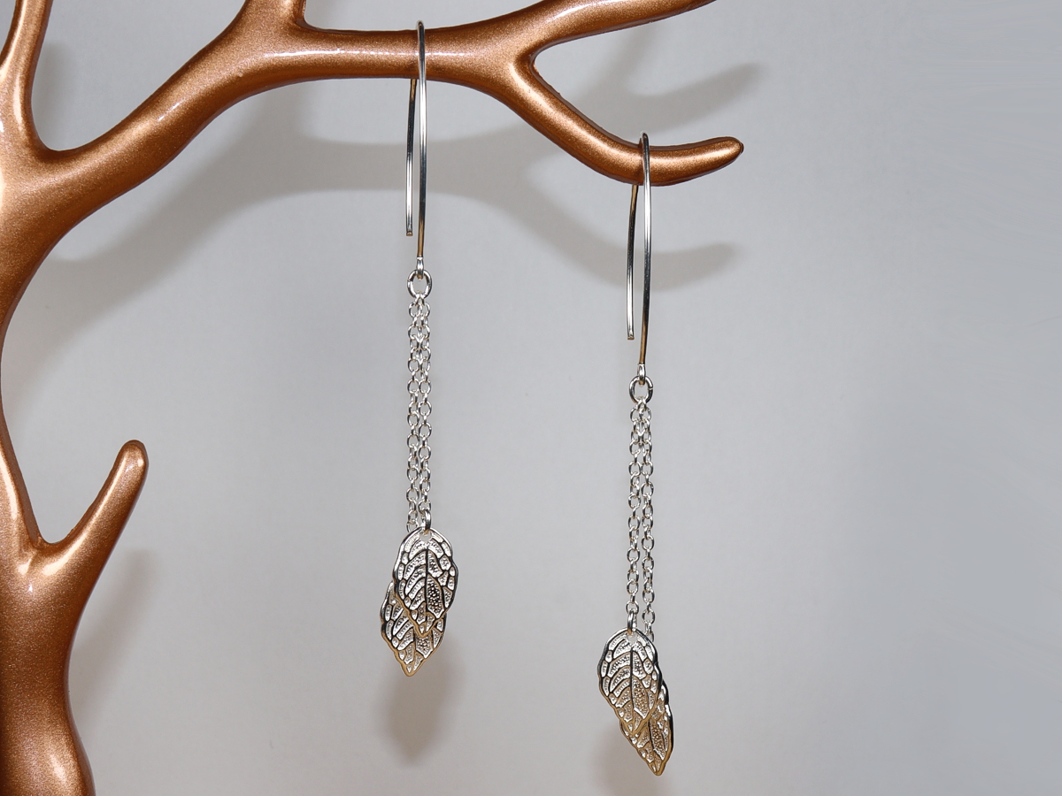 Die Ohrringe mit je zwei Blättern wurden aus Sterlingsilber (Silber 925) gefertigt.