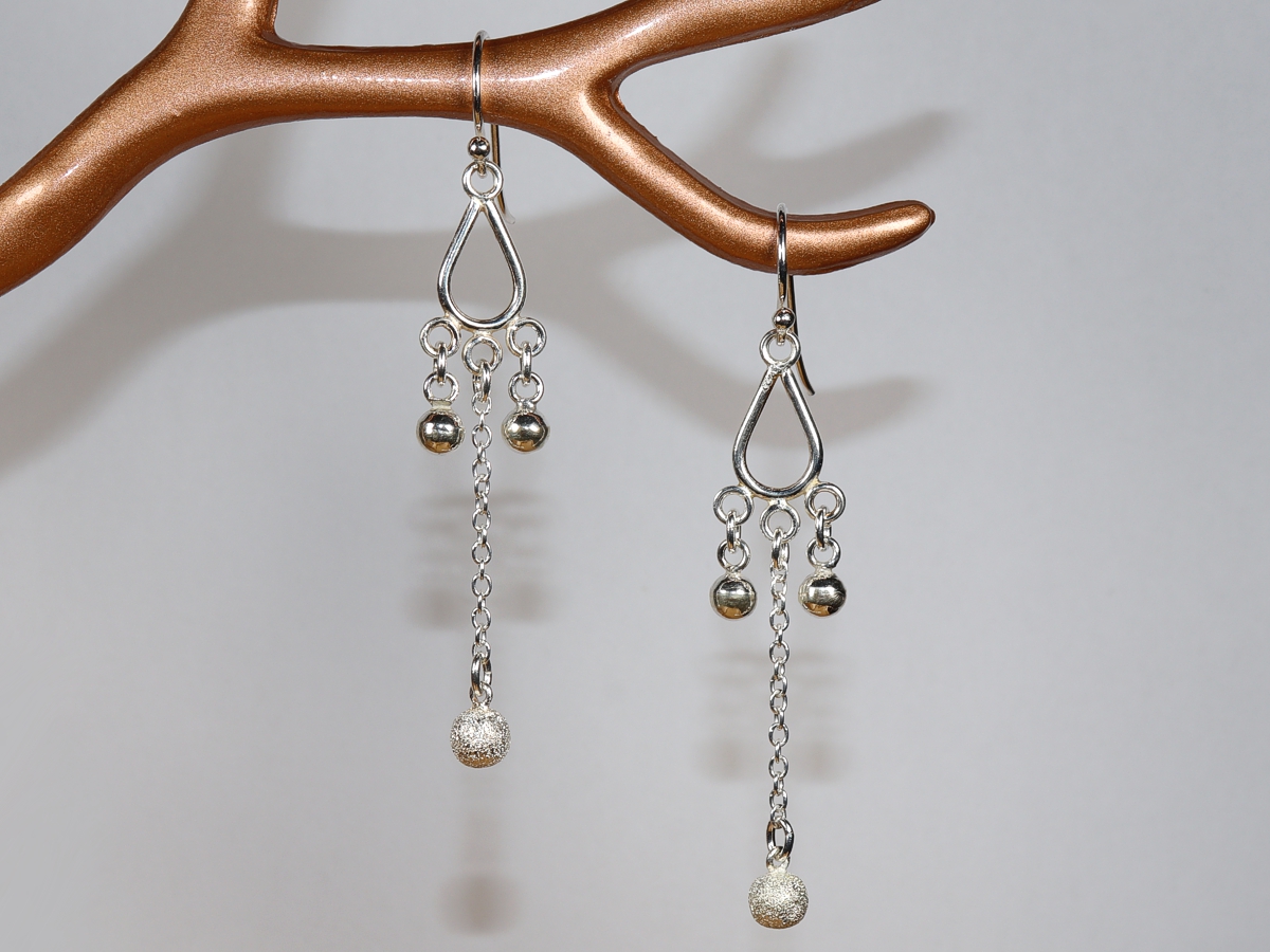 Die Ohrringe mit je drei Kugeln wurden aus Sterlingsilber (Silber 925) gefertigt.