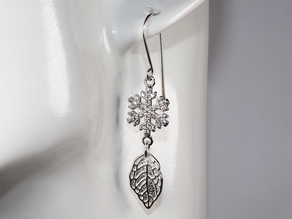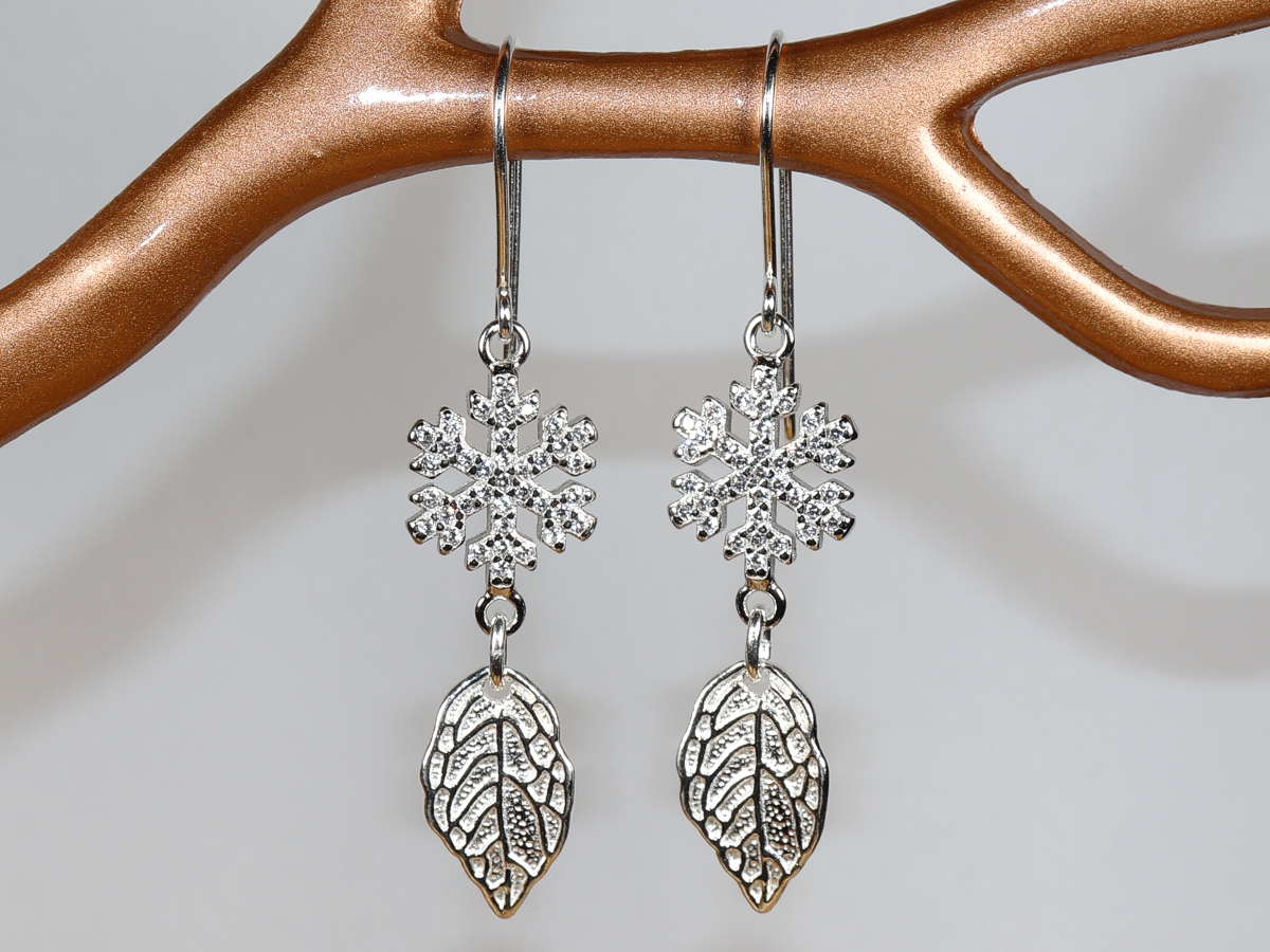 Die Ohrringe mit je einer Schneeflocken und einem Blatt wurden aus Sterlingsilber (Silber 925) gefertigt.