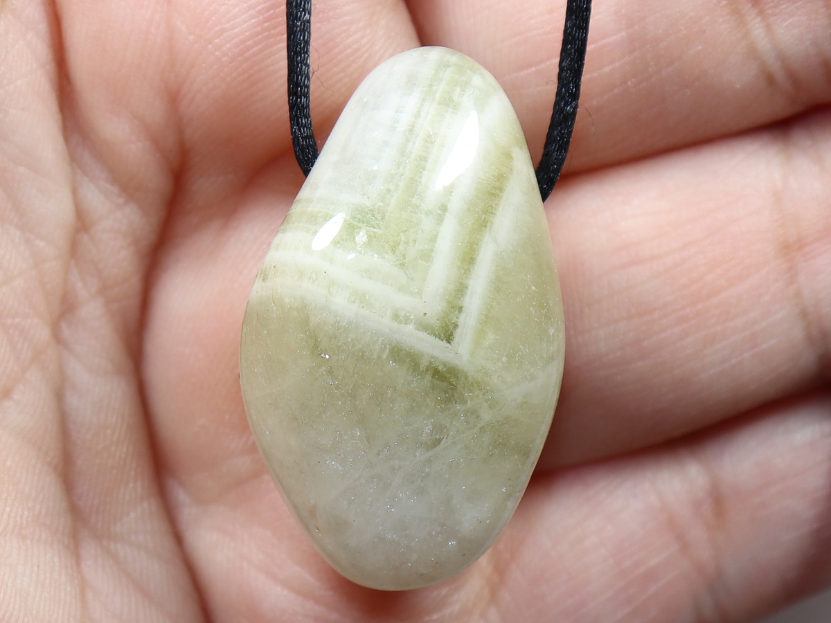 Das Band wird lose (ohne Verschluss) mit einer Länge von 1,5 m mit dem Stein geliefert. Wählen Sie hierfür bitte im Dropdown-Feld "weitere Optionen / Bandfarben" die Variante "Band ohne Verschluss | schwarz | 1,5 m" aus.