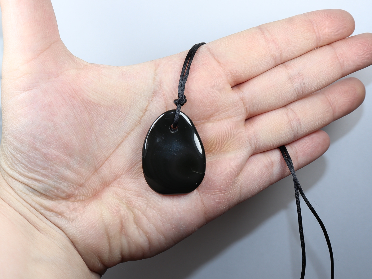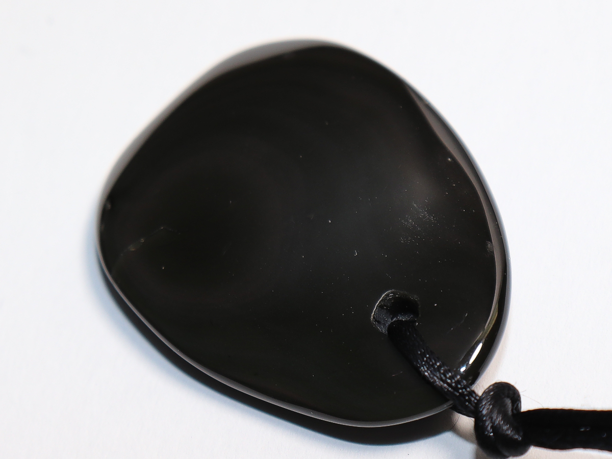 Das Band wird lose (ohne Verschluss) mit einer Länge von 1,5 m mit dem Stein geliefert. Wählen Sie hierfür bitte im Dropdown-Feld "weitere Optionen / Bandfarben" die Variante "Band ohne Verschluss | schwarz | 1,5 m" aus.