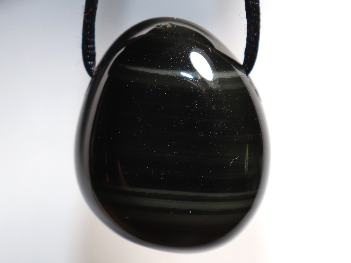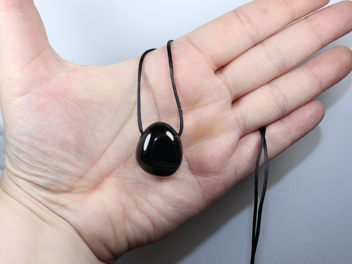 Die Halskette mit Regenbogenobsidian wird nach Ihren Angaben individualisiert. Sie haben die Wahl zwischen einem schwarzen Band mit einem Verschluss aus Edelstahl oder einer Kette aus Silber 925.