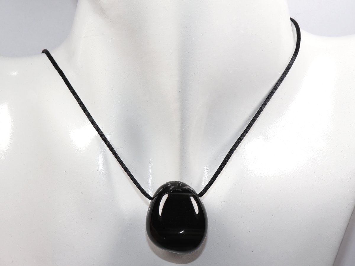 Das Band wird lose (ohne Verschluss) mit einer Länge von 1,5 m mit dem Stein geliefert. Wählen Sie hierfür bitte im Dropdown-Feld "weitere Optionen / Bandfarben" die Variante "Band ohne Verschluss | schwarz | 1,5 m" aus.