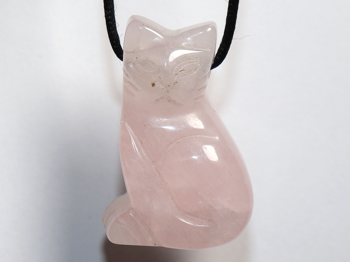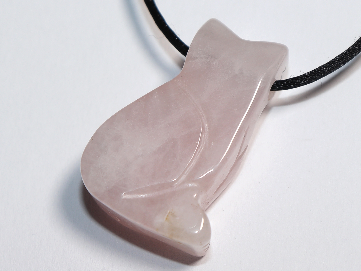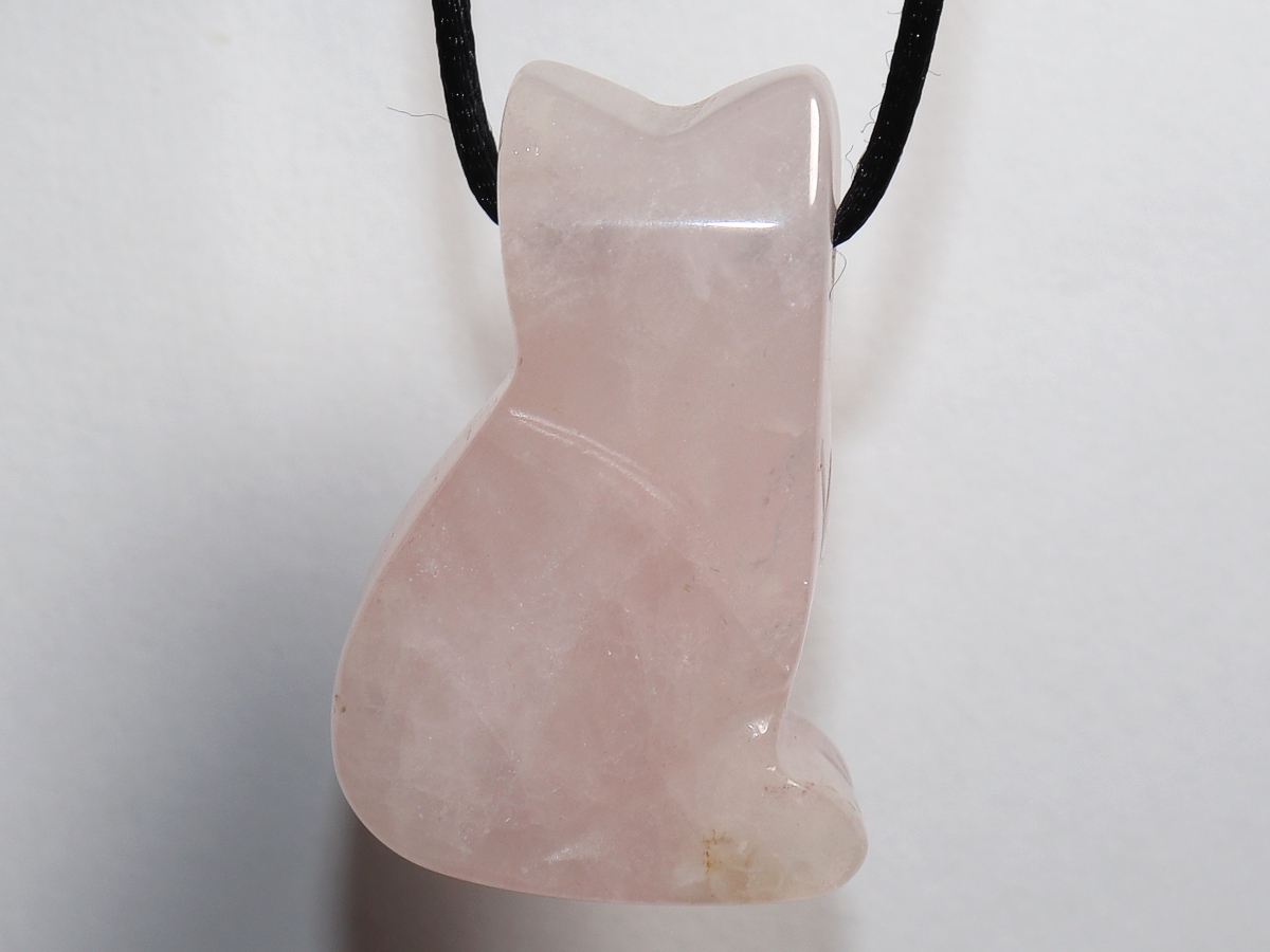 Die Halskette mit der Katze aus Rosenquarz wird nach Ihren Angaben individualisiert. Sie haben die Wahl zwischen einem schwarzen Band mit einem Verschluss aus Edelstahl oder einer Kette aus Silber 925.