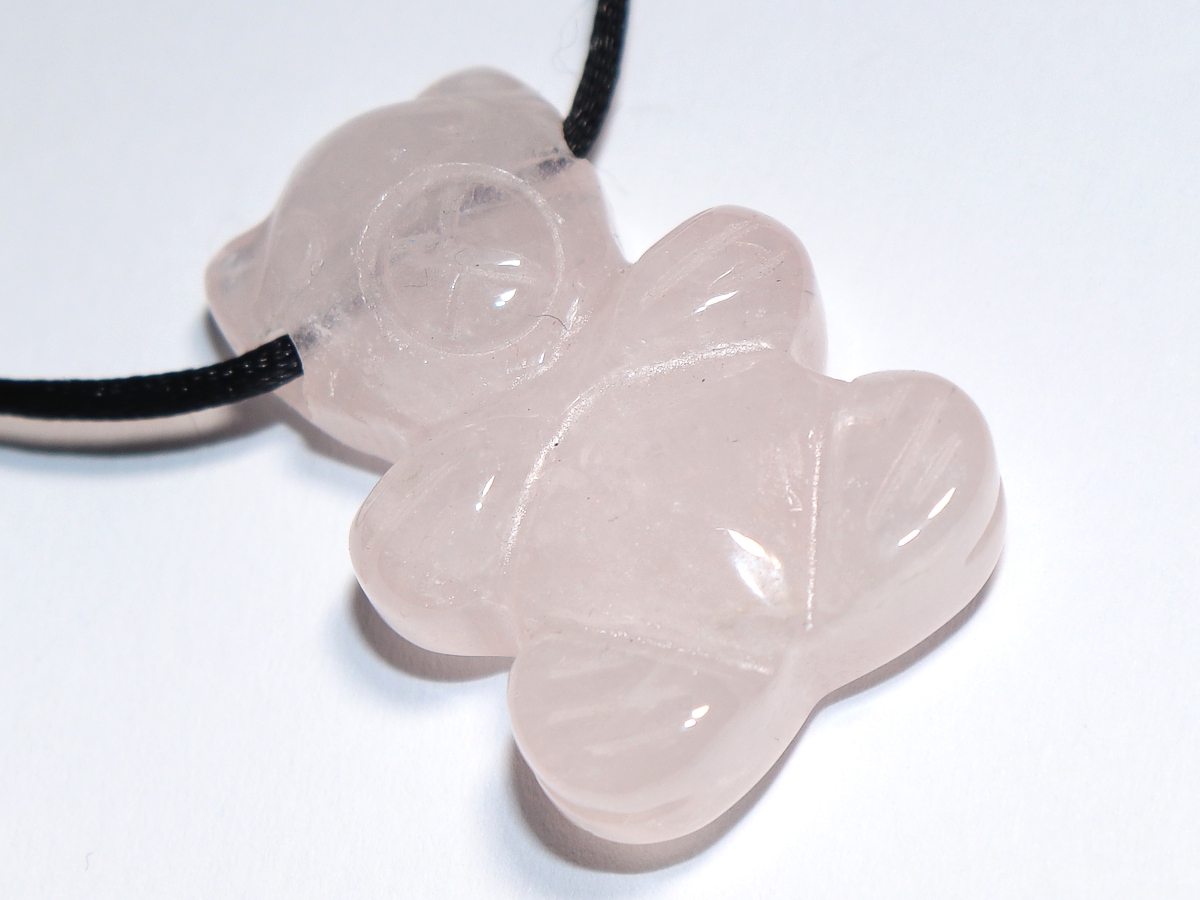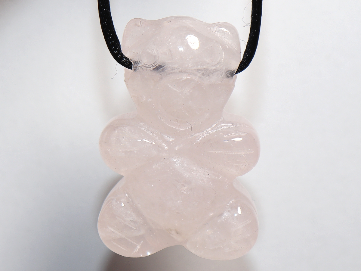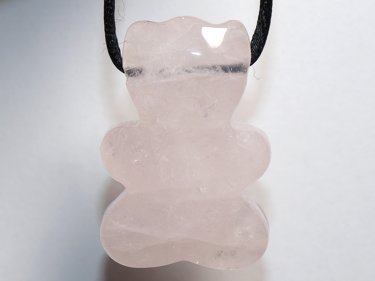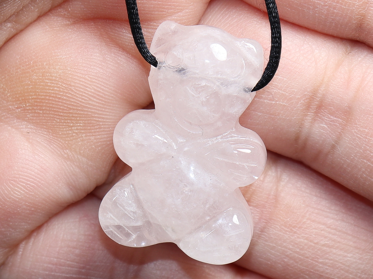 Die Halskette mit dem Bär aus Rosenquarz wird nach Ihren Angaben individualisiert. Sie haben die Wahl zwischen einem schwarzen Band mit einem Verschluss aus Edelstahl oder einer Kette aus Silber 925.