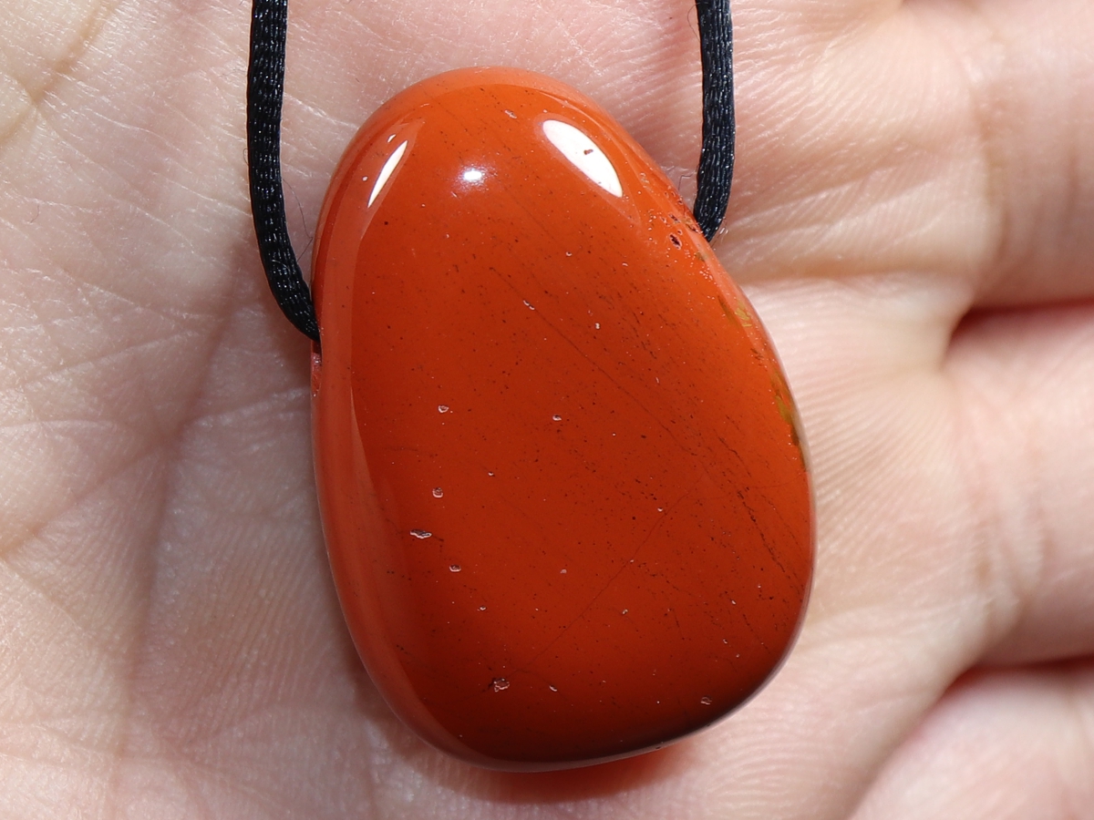 Die Halskette mit rotem Jaspis wird nach Ihren Angaben individualisiert. Sie haben die Wahl zwischen einem schwarzen Band mit einem Verschluss aus Edelstahl oder einer Kette aus Silber 925.