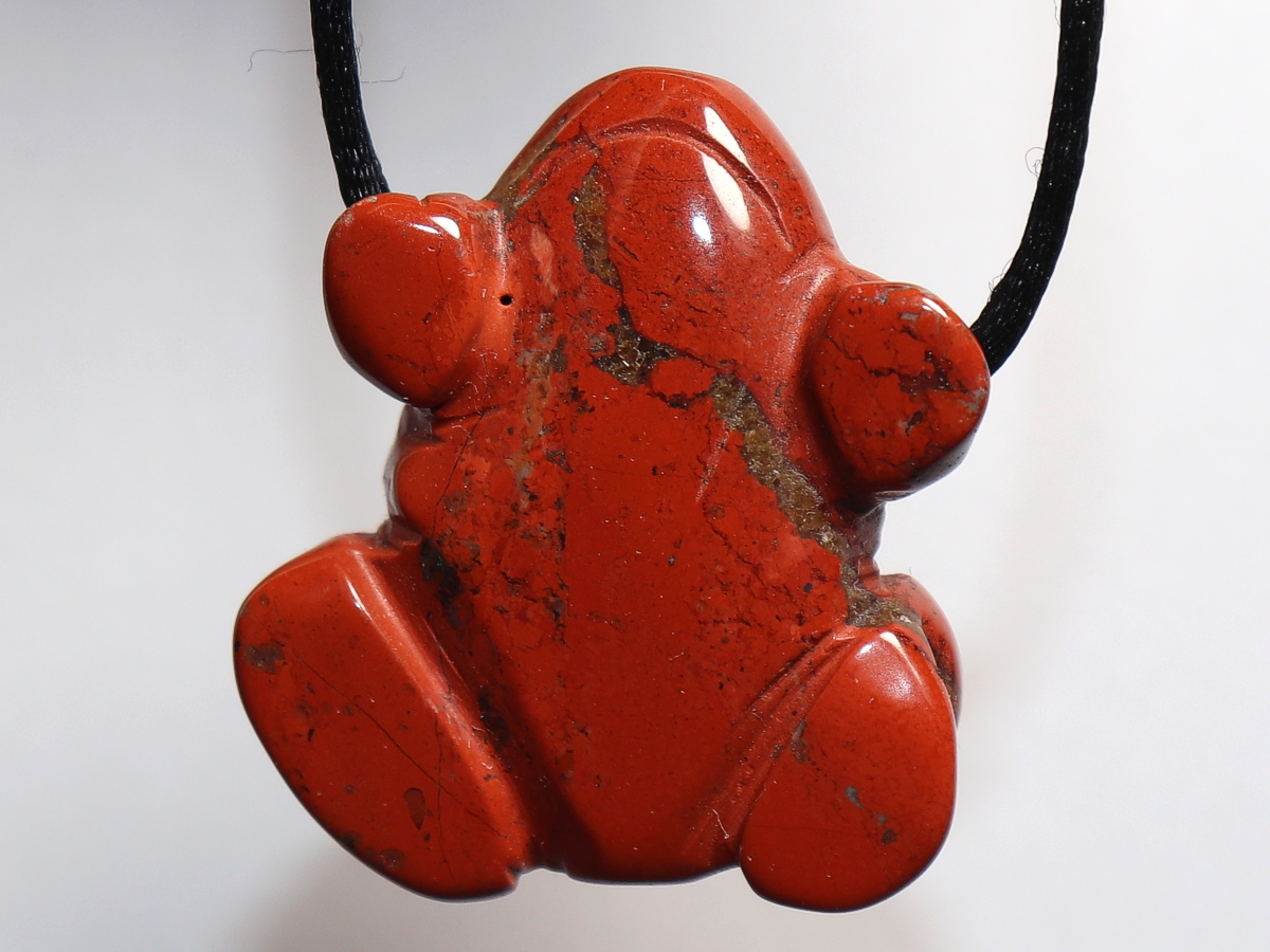 Die Halskette mit dem Frosch aus rotem Jaspis wird nach Ihren Angaben individualisiert. Sie haben die Wahl zwischen einem schwarzen Band mit einem Verschluss aus Edelstahl oder einer Kette aus Silber 925.